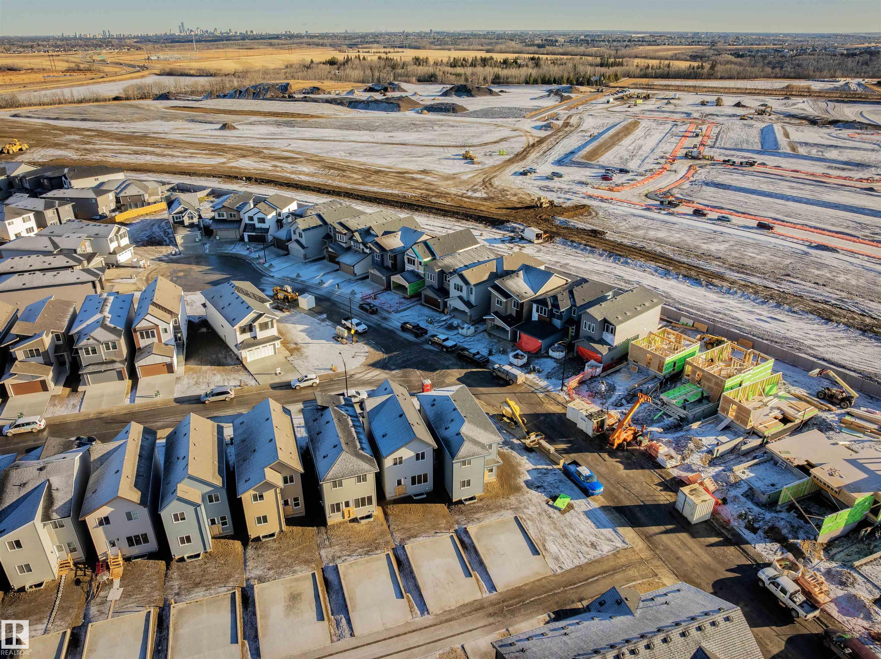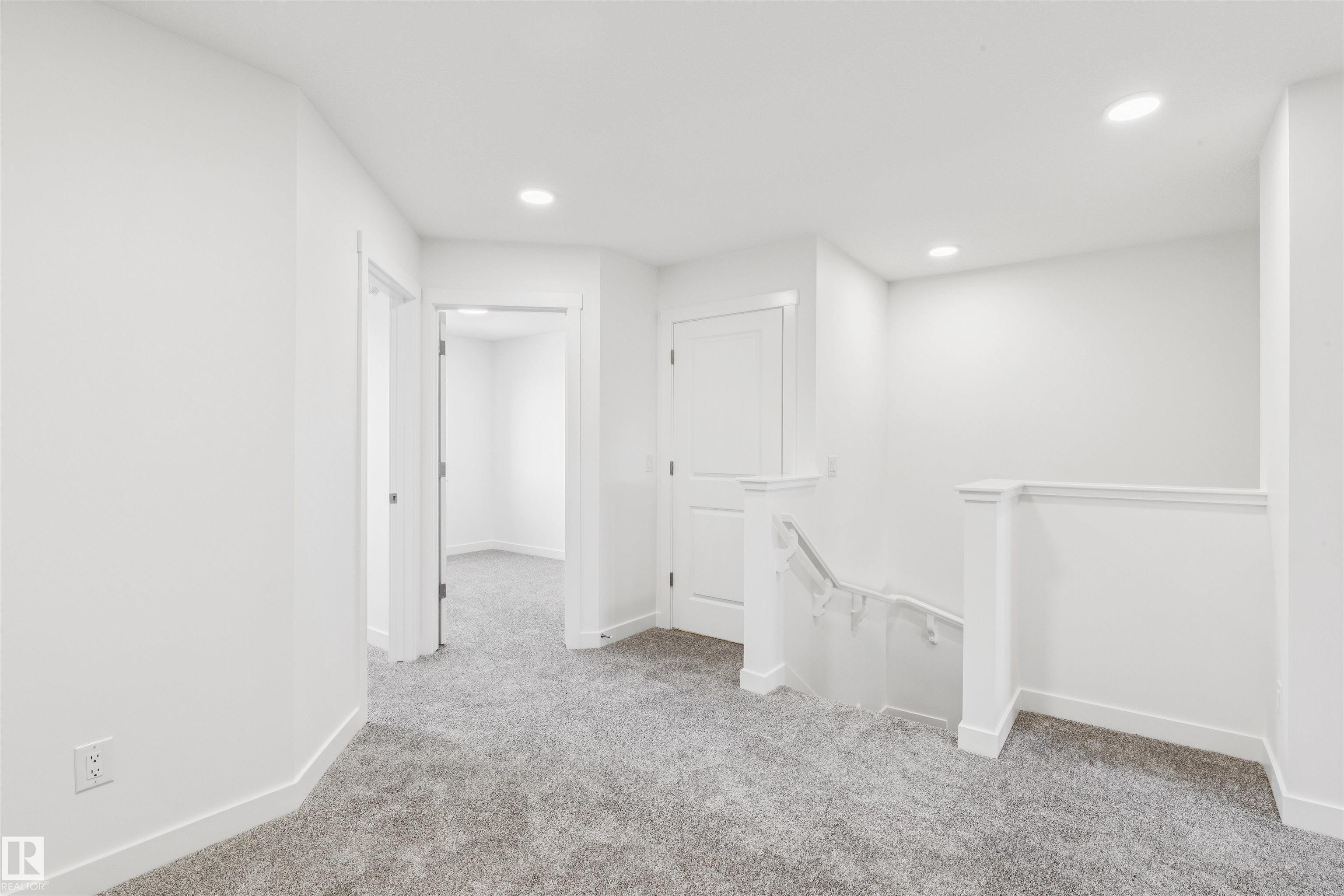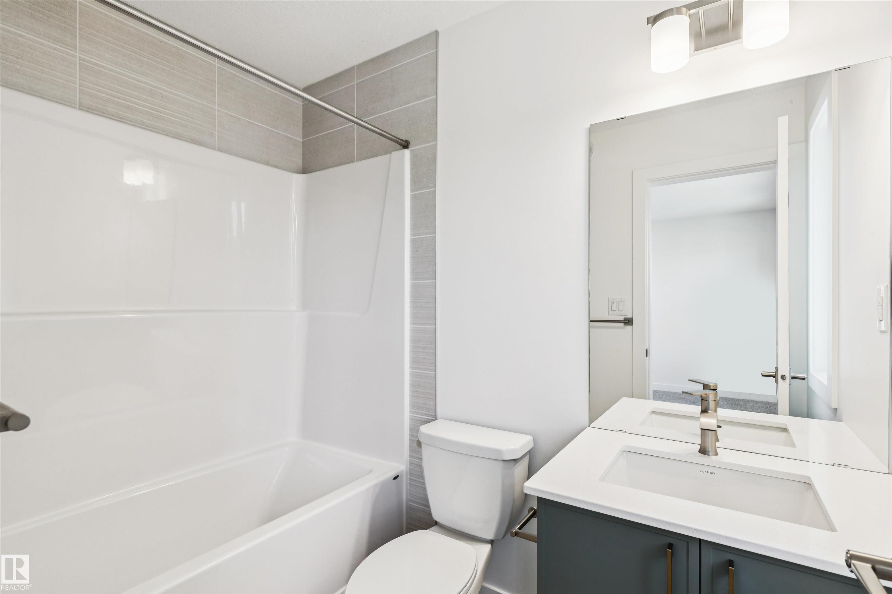 The Stellar combines modern design with everyday functionality in a bright, thoughtfully planned layout. The main floor showcases luxury vinyl plank flooring throughout, a welcoming foyer with coat closet, and a sun-filled great room framed by a large front window. At the heart of the home, the kitchen features quartz countertops, an undermount composite sink, a central island with eating ledge, profiled Thermofoil cabinetry, and a generous pantry. The rear dining area enjoys views of the backyard, while a conveniently placed powder room and back entry lead to a spacious yard and parking pad. Upstairs offers an open loft, a primary suite with walk-in closet and 3-piece ensuite with tub/shower, plus two additional bedrooms, a main 3-piece bath, and stackable laundry closet. This home includes 9' ceilings on the main and basement, a separate side entrance, basement rough-in plumbing, and upgraded brushed nickel fixtures.