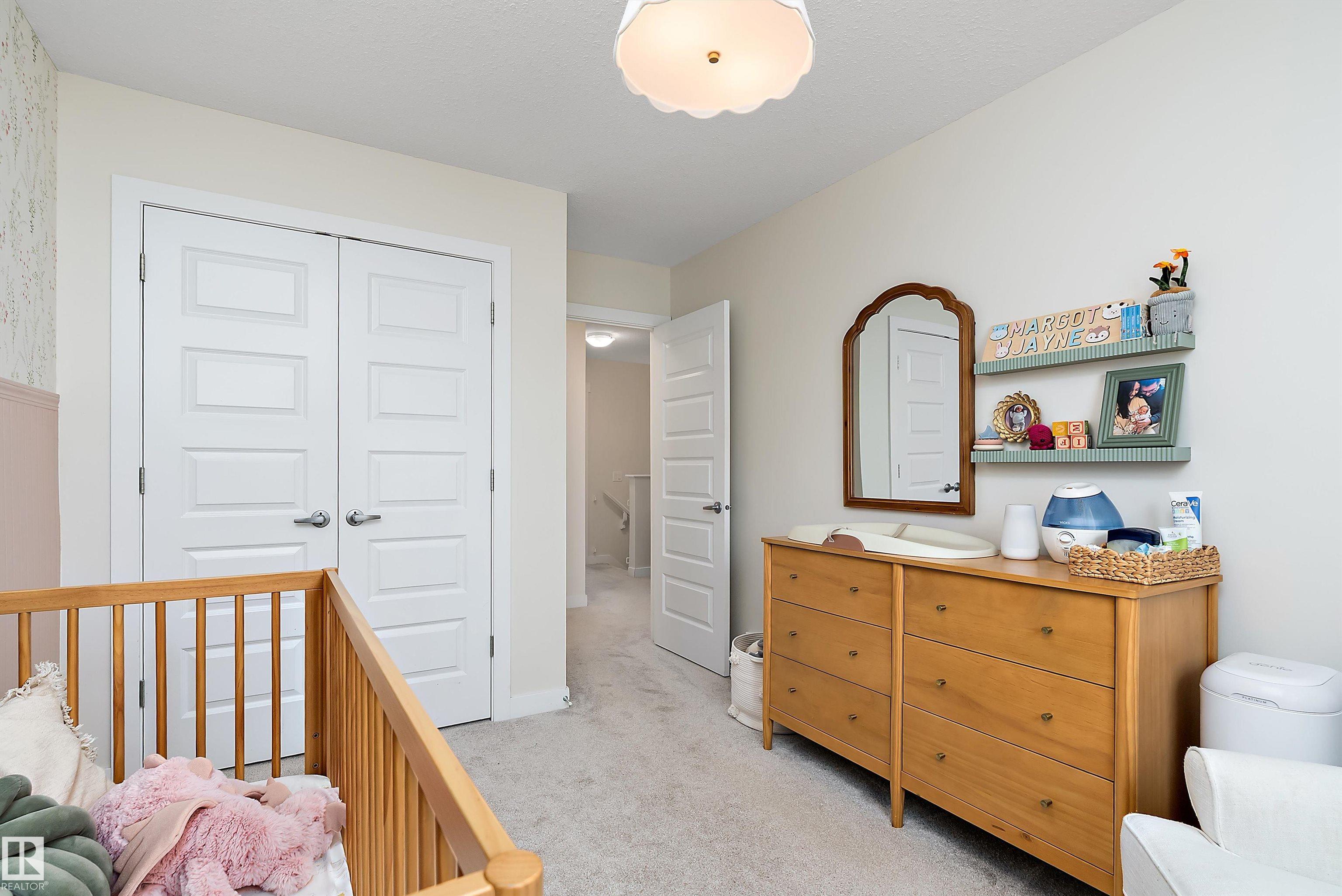 Welcome to this beautifully designed home in Rosenthal! Offering 3+1 bedrooms and 3.5 baths, this home blends style, comfort, and convenience. The bright, open-concept main floor features large windows, 9-ft ceilings, and a modern kitchen with sleek cabinetry, quality appliances, ample counter space, and a spacious island--perfect for entertaining. The dining and living areas flow seamlessly for everyday living. Upstairs includes a generous primary with walk-in closet and 4-pc ensuite, plus two additional bedrooms, a full bath, and convenient laundry. The fully finished basement adds a 4th bedroom with 3-pc ensuite and a cozy family room. Enjoy the landscaped yard, large deck, and detached double garage. Whether you're a first-time buyer, growing family, or investor, this home offers incredible value in a vibrant west Edmonton neighborhood. Don't miss your opportunity to make this exceptional home your own!