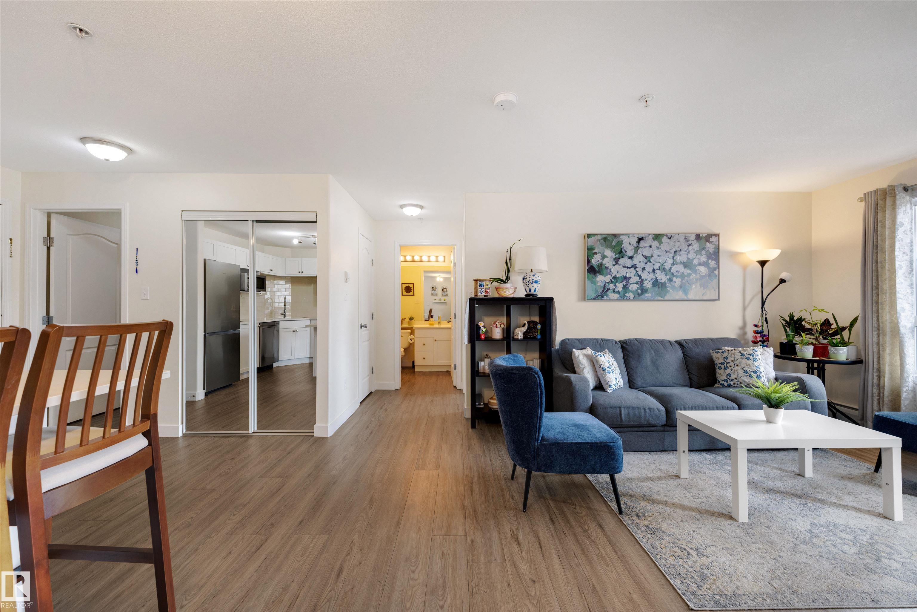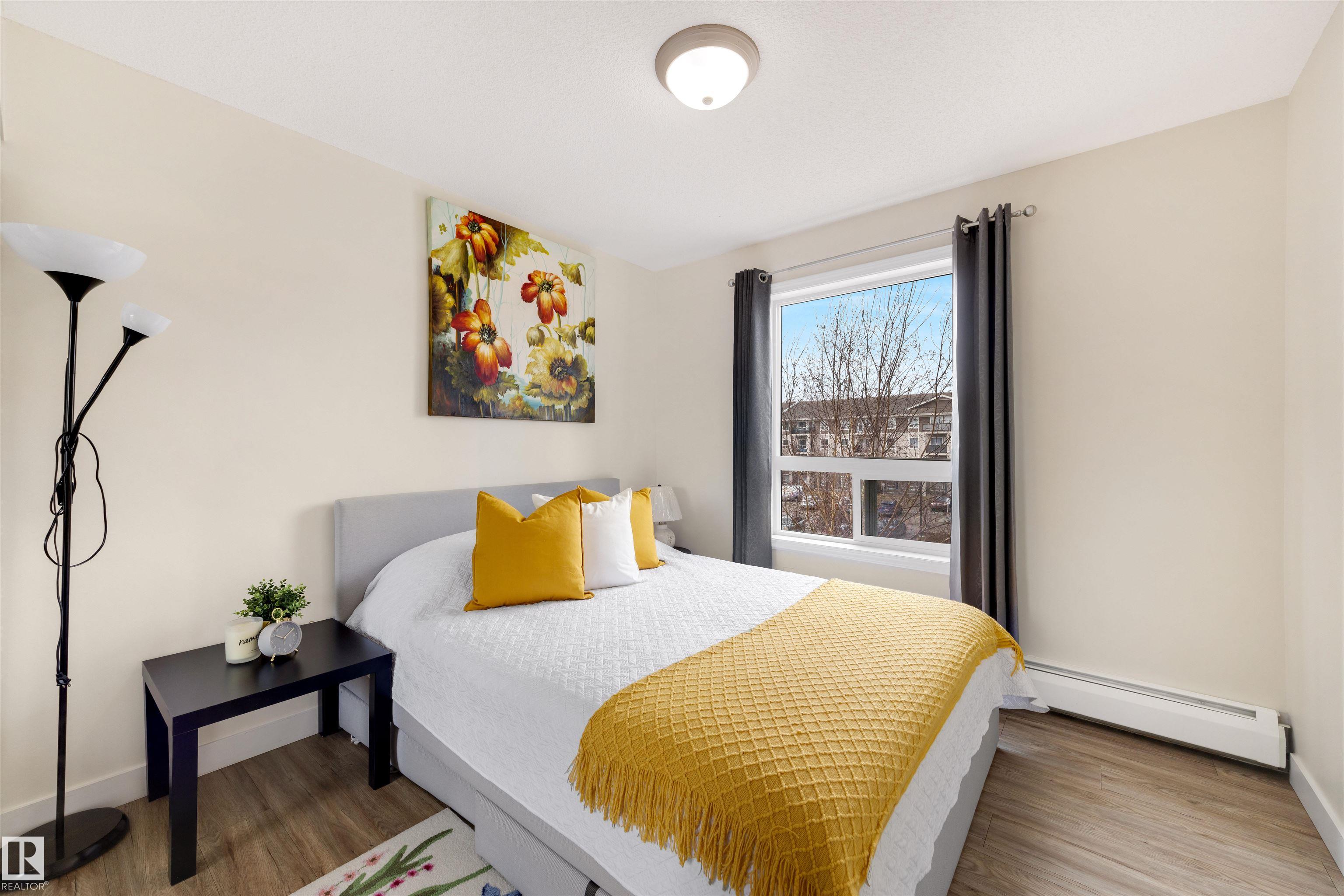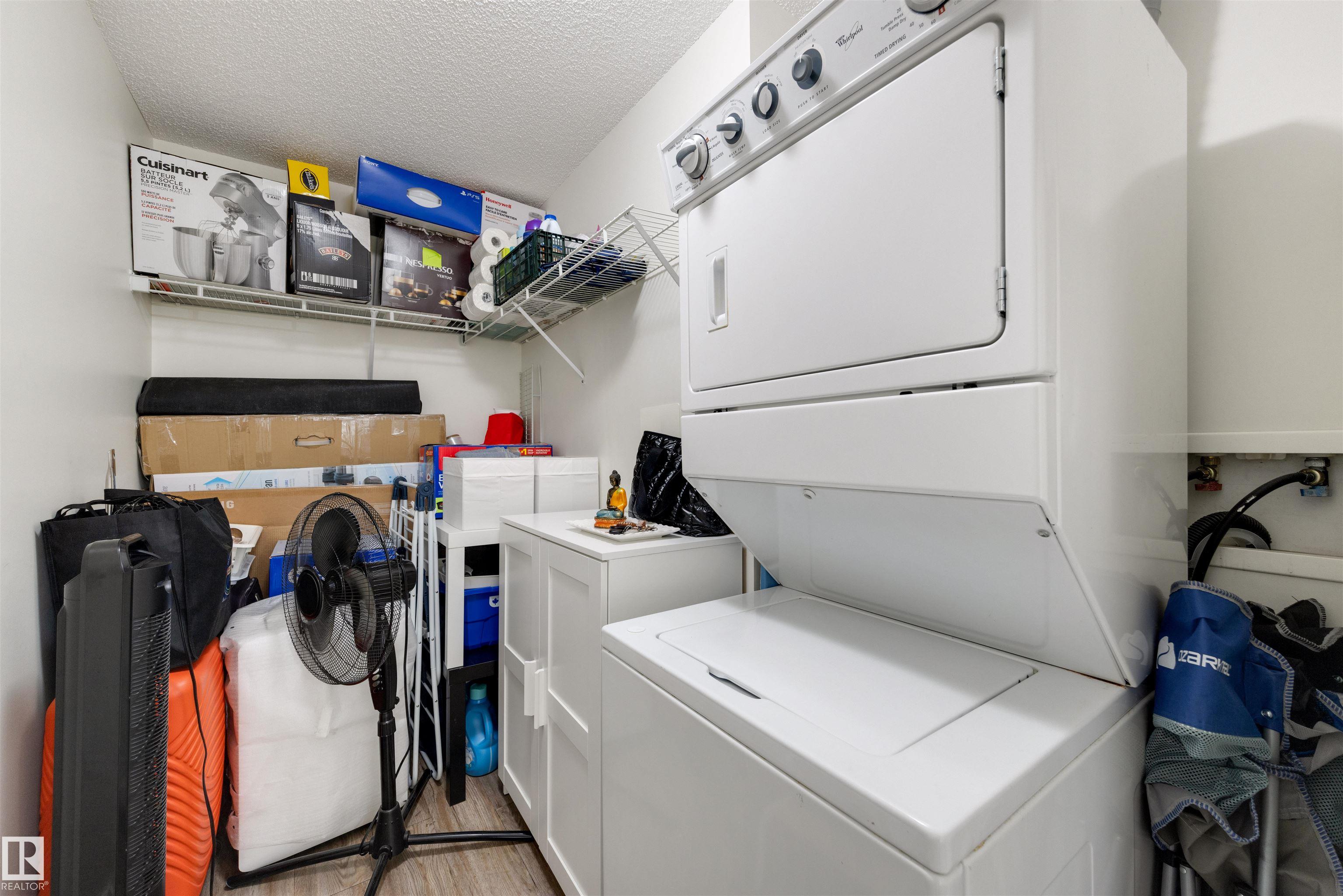 Welcome to South Terwillegar, a sought-after family community in South Edmonton. This beautifully upgraded 2 bedroom, 2 bathroom condo offers a spacious, functional layout with stylish updates throughout and no carpet anywhere in the unit. The kitchen features white cabinetry, a beautiful backsplash, quartz countertops, fresh paint, vinyl plank flooring, new stainless steel appliances, and an island that overlooks the main living space, making it perfect for everyday living or entertaining. Just off the front entry, you'll find in-suite laundry with additional storage. The primary bedroom includes a large walk-in closet and private ensuite, while the second bedroom is also generously sized with room for a queen bed. Enjoy the west-facing balcony and the convenience of titled parking right outside your door. Located close to Currents of Windermere, groceries, restaurants, banking, transit, Rabbit Hill Road, and Anthony Henday, this is a fantastic opportunity for first time buyers or investors alike.