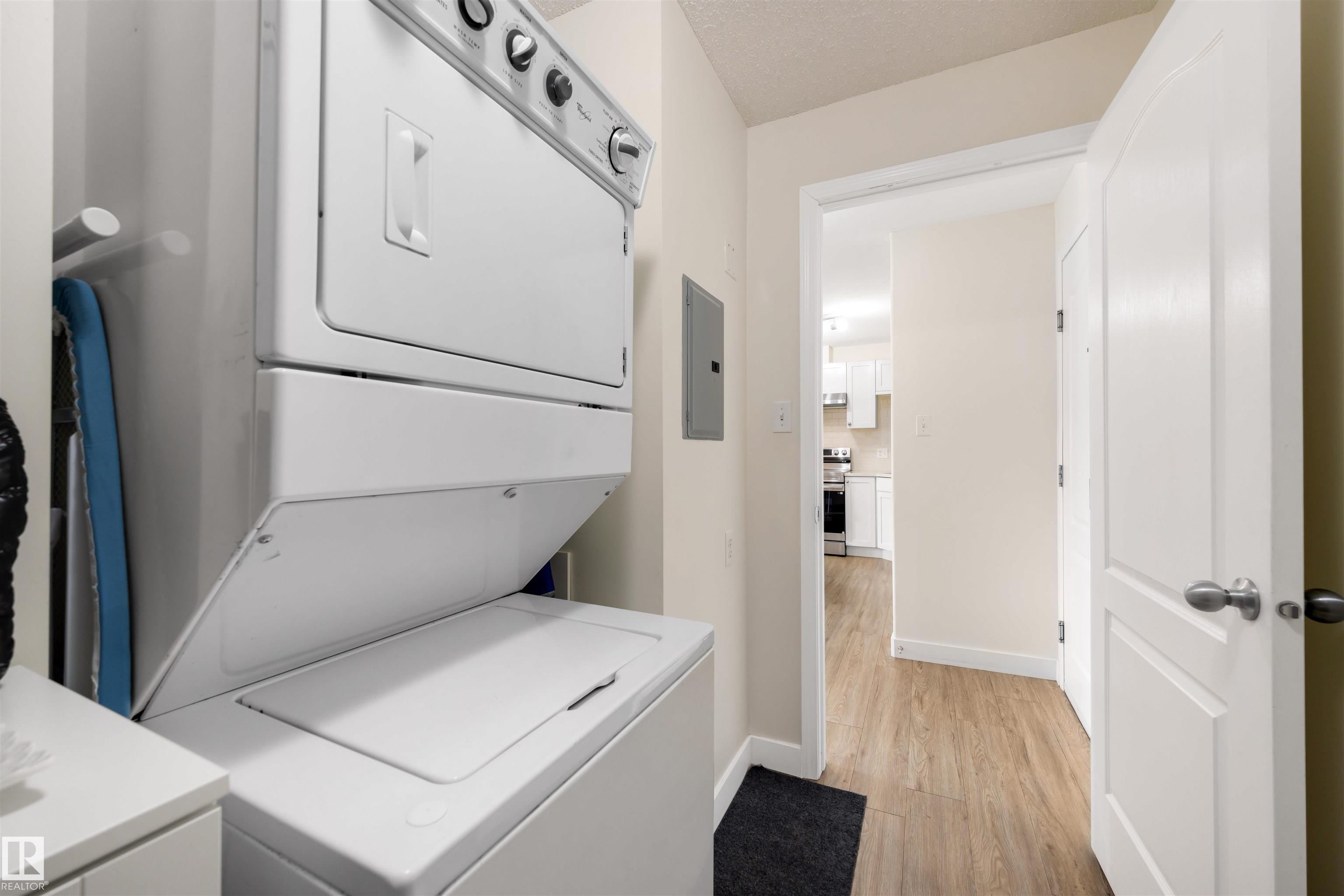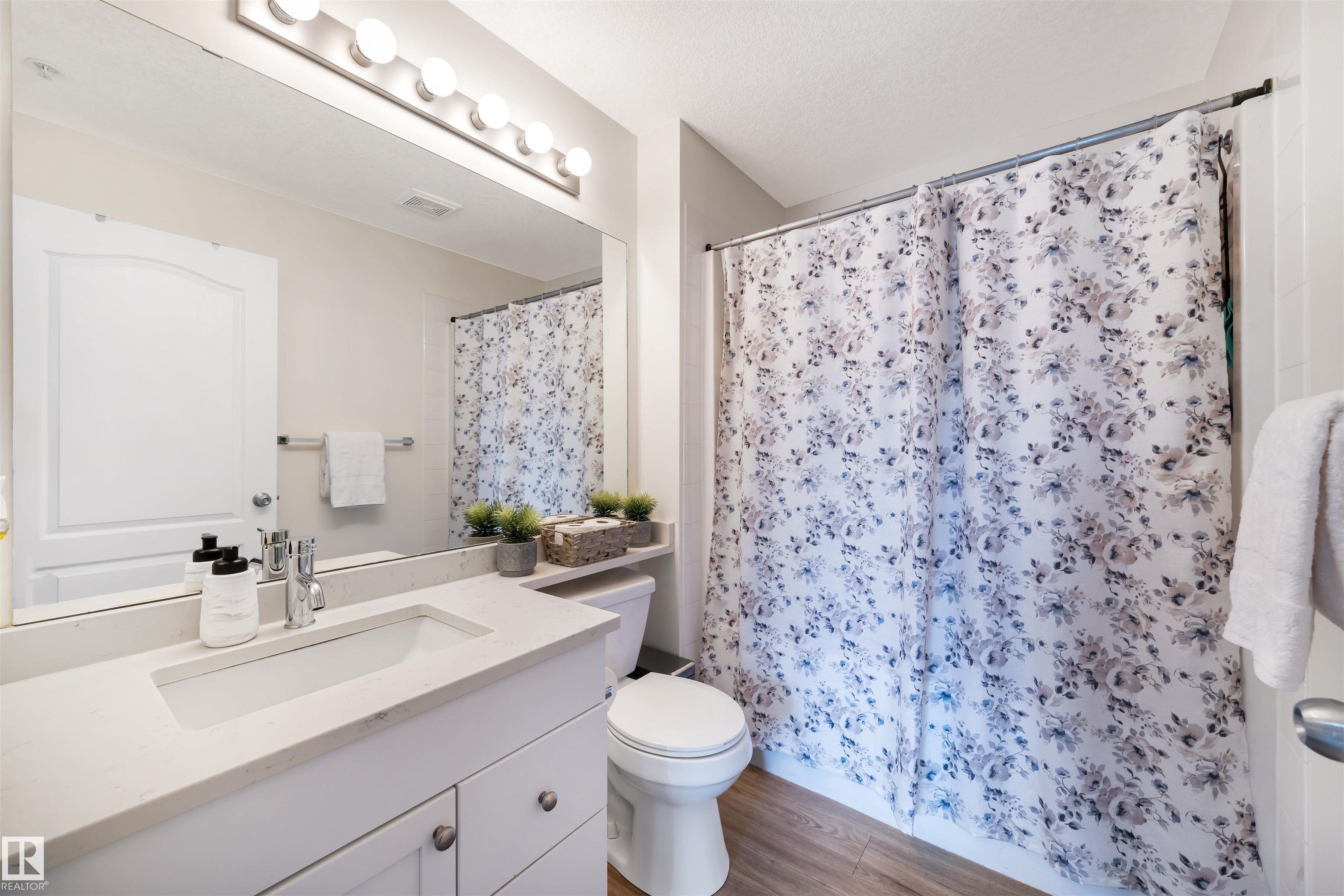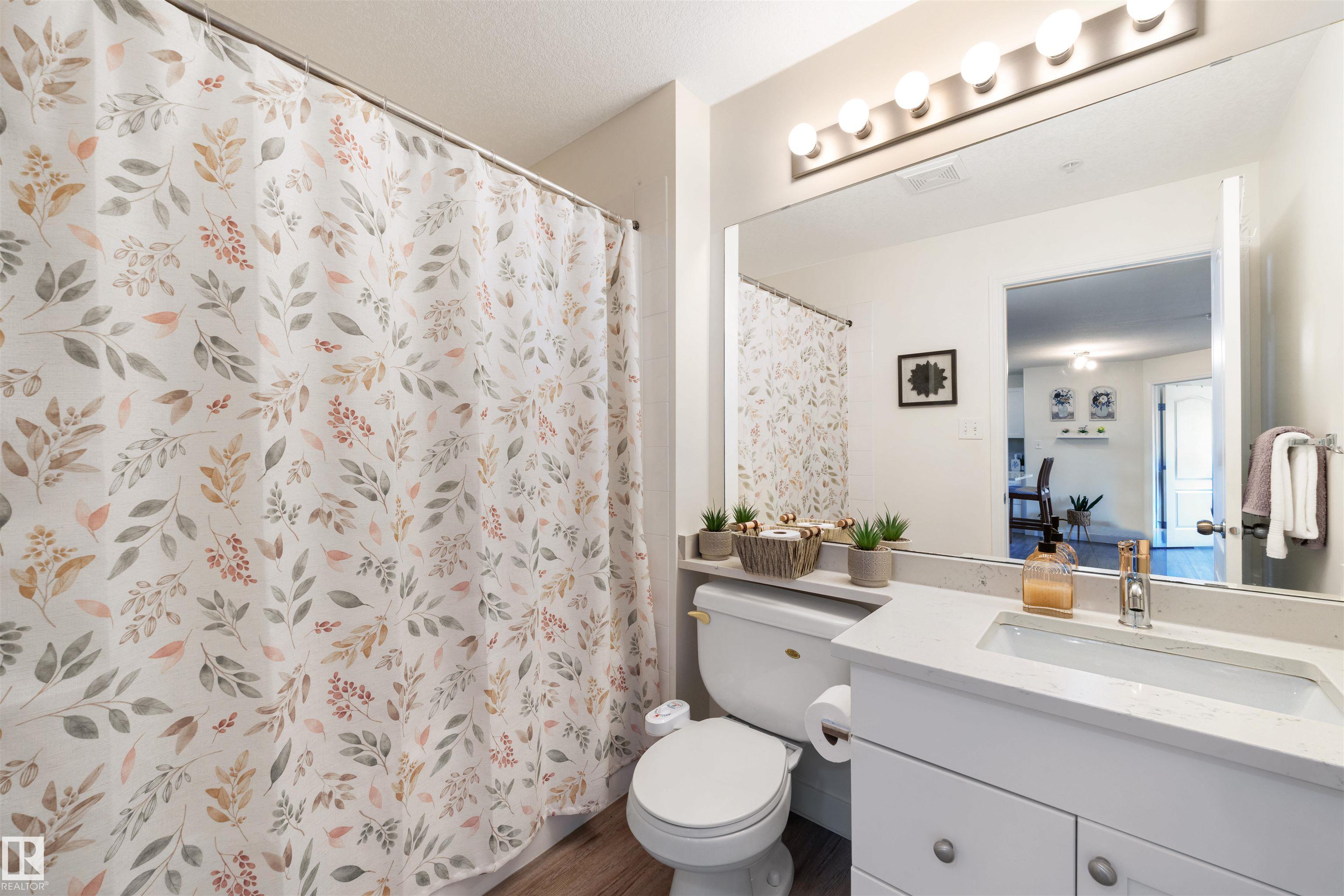 Welcome to South Terwillegar, a sought-after family community in South Edmonton. This beautifully upgraded 2 bedroom, 2 bathroom condo offers a spacious, functional layout with stylish updates throughout and no carpet anywhere in the unit. The kitchen features white cabinetry, a beautiful backsplash, quartz countertops, fresh paint, vinyl plank flooring, new stainless steel appliances, and an island that overlooks the main living space, making it perfect for everyday living or entertaining. Just off the front entry, you'll find in-suite laundry with additional storage. The primary bedroom includes a large walk-in closet and private ensuite, while the second bedroom is also generously sized with room for a queen bed. Enjoy the west-facing balcony and the convenience of titled parking right outside your door. Located close to Currents of Windermere, groceries, restaurants, banking, transit, Rabbit Hill Road, and Anthony Henday, this is a fantastic opportunity for first time buyers or investors alike.