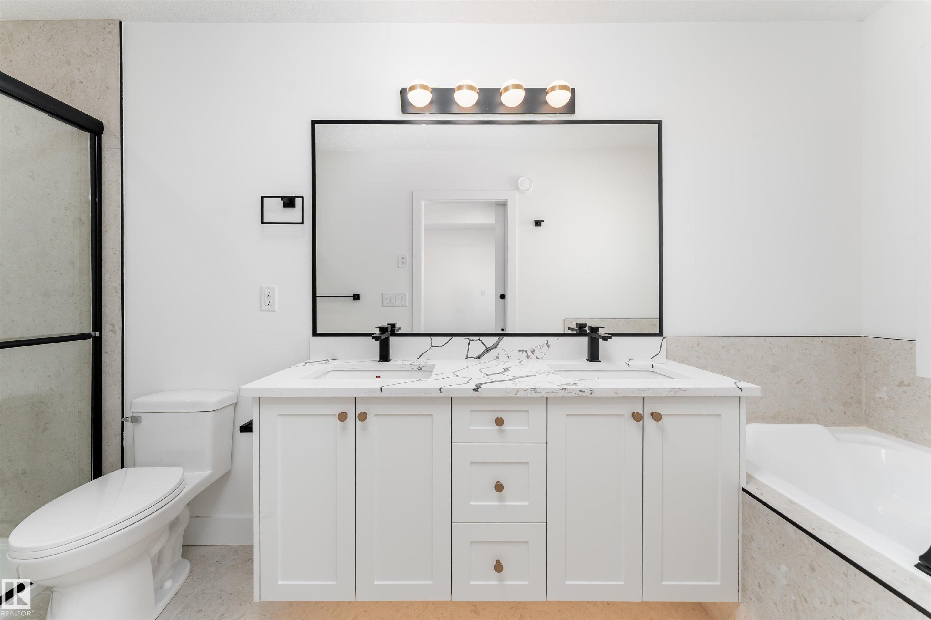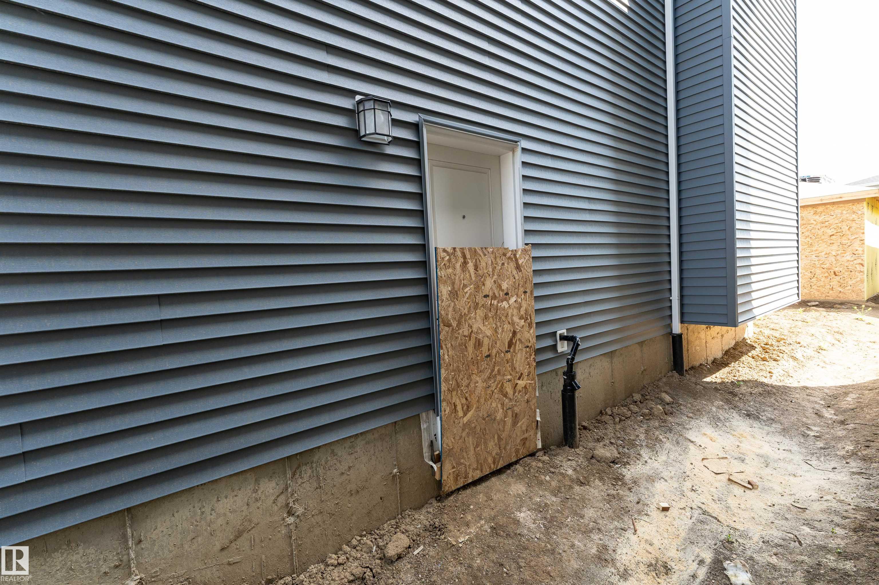 Thoughtfully designed and move in ready, this 1,750 sq ft 2025 built half duplex is located in the growing community of Starling. The main floor offers an airy open layout with 9 ft ceilings, durable vinyl flooring, and large windows that fill the space with natural light. A beautifully finished floor to ceiling tiled electric fireplace creates a warm focal point in the living area. The kitchen features modern white cabinetry, warm wood tone accents, and a generous island, making it both functional and inviting. Upstairs you will find three well sized bedrooms, including a comfortable primary suite with walk in closet and private ensuite, along with upper floor laundry. The unfinished basement with a separate side entrance allows for excellent future development potential. Complete with a double detached garage and conveniently located near parks, walking trails, ponds, schools, shopping, and quick access to Anthony Henday and Yellowhead.