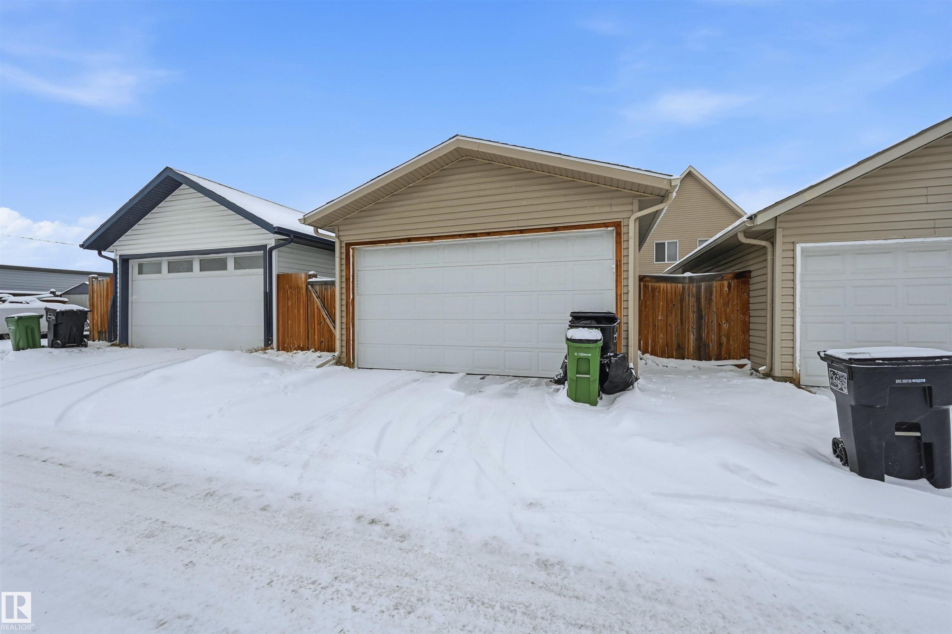 Welcome to this well-kept half duplex in The Hamptons with NO CONDO FEES, FINISHED BASEMENT, DOUBLE HEATED GARGE and move-in ready condition. This 1,205sqft home offers 4 bedrooms and 3.5 bathrooms with a warm, functional layout. The main floor features laminate and ceramic tile flooring, a comfortable living area, and a kitchen with maple cabinetry, tile backsplash, stainless steel appliances including a brand new stove, heavy-duty hood fan, and an island with raised eating bar. A convenient half bath completes the main level. Upstairs are three well-sized bedrooms with vinyl plank flooring, a full bathroom, and a 3-piece ensuite in the primary bedroom. The finished basement adds extra living space with vinyl plank flooring, an upgraded laundry area, and an additional 3-piece bathroom. A brand new hot water tank provides added peace of mind. Outside, enjoy a spacious deck with hot tub, fully fenced yard, and low-maintenance deck with metal railing. The double garage includes extra electrical outlets.