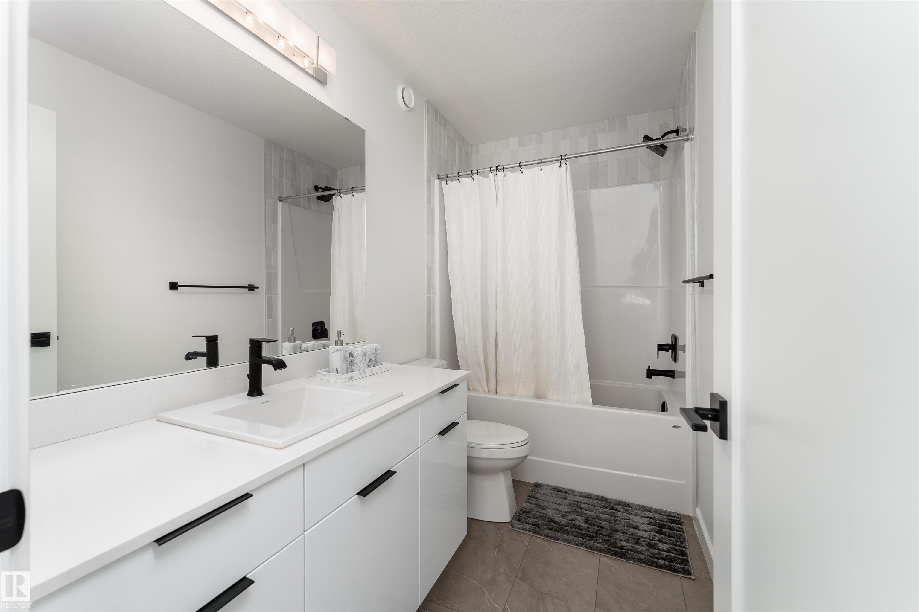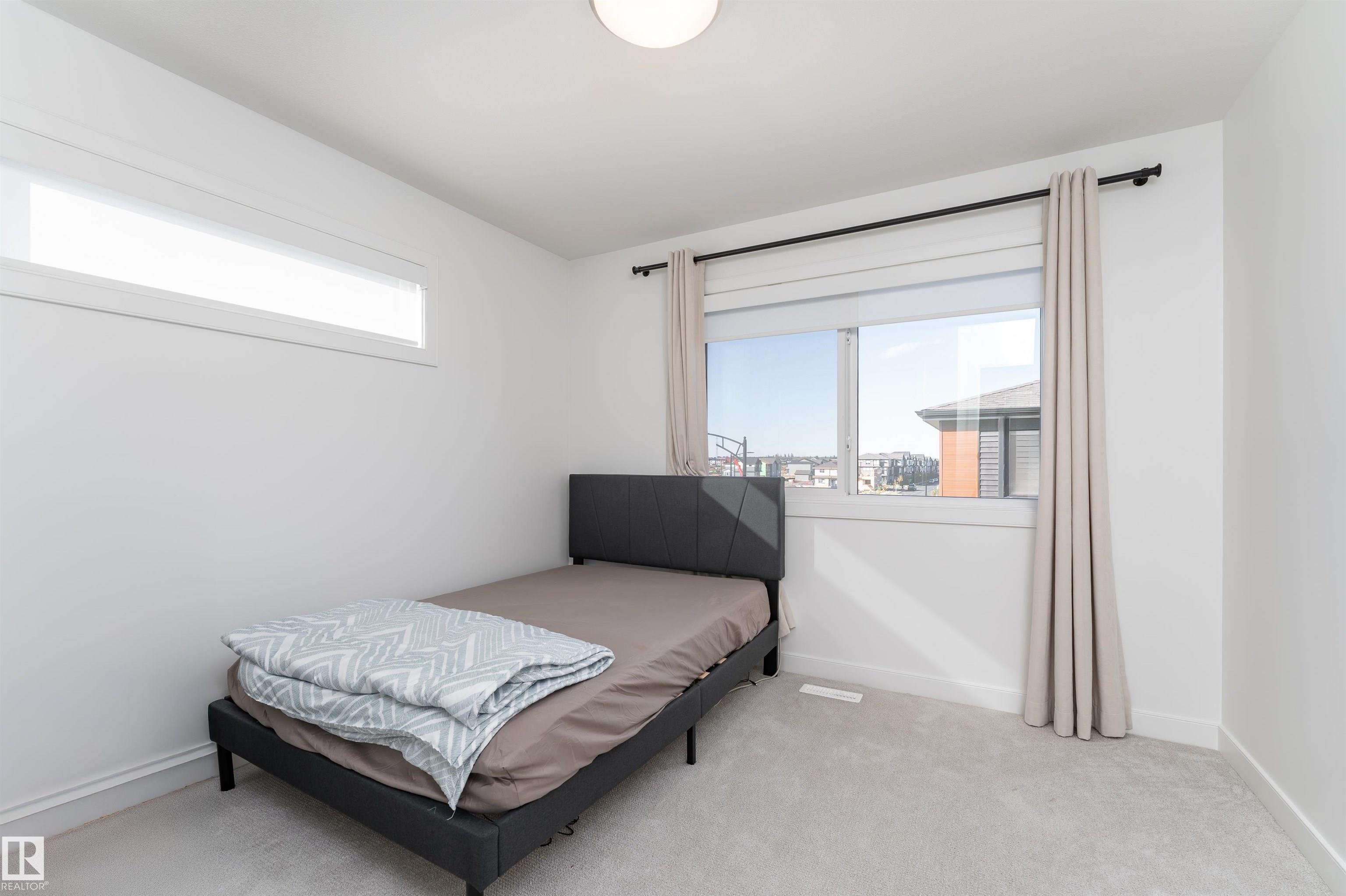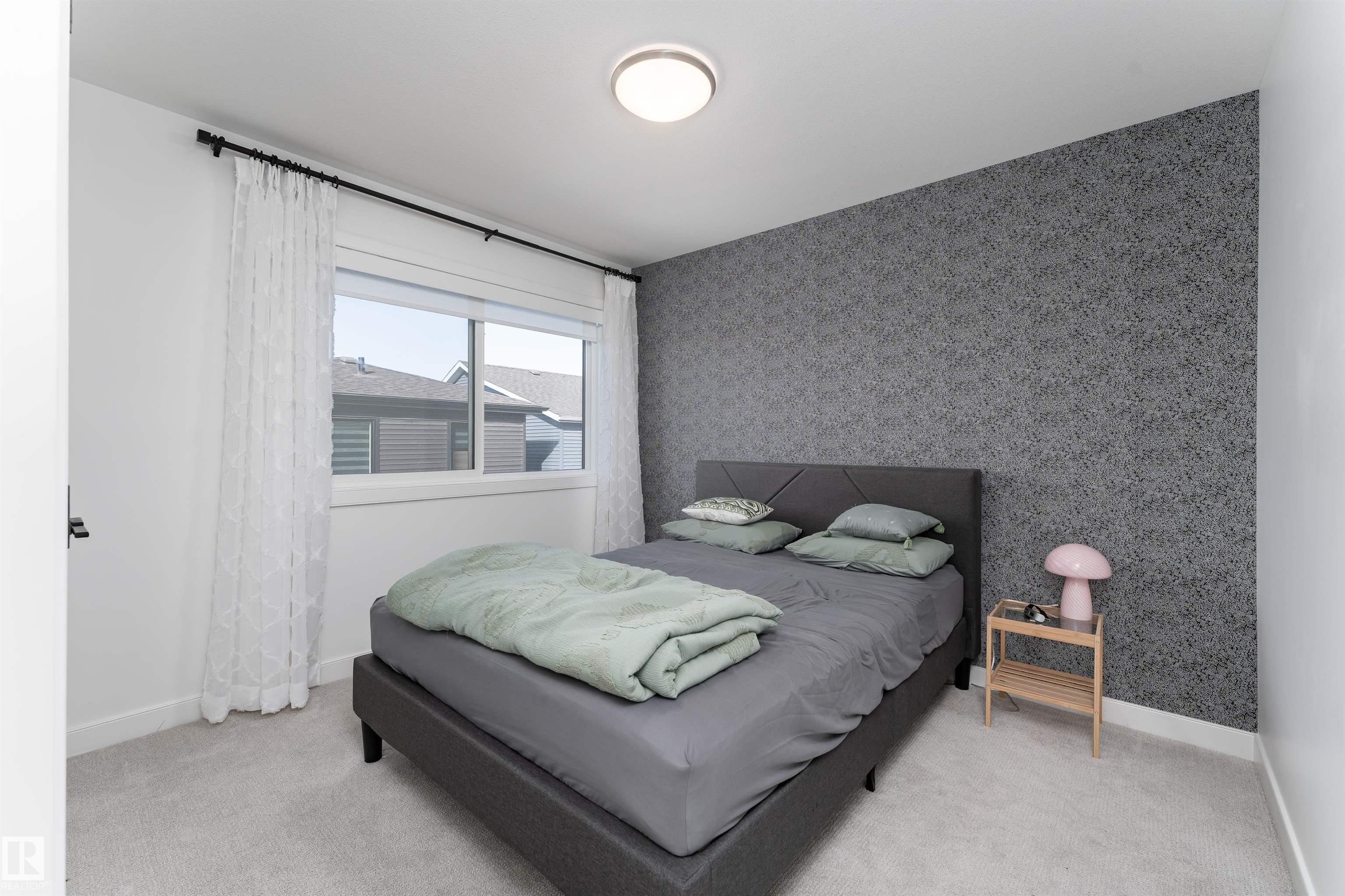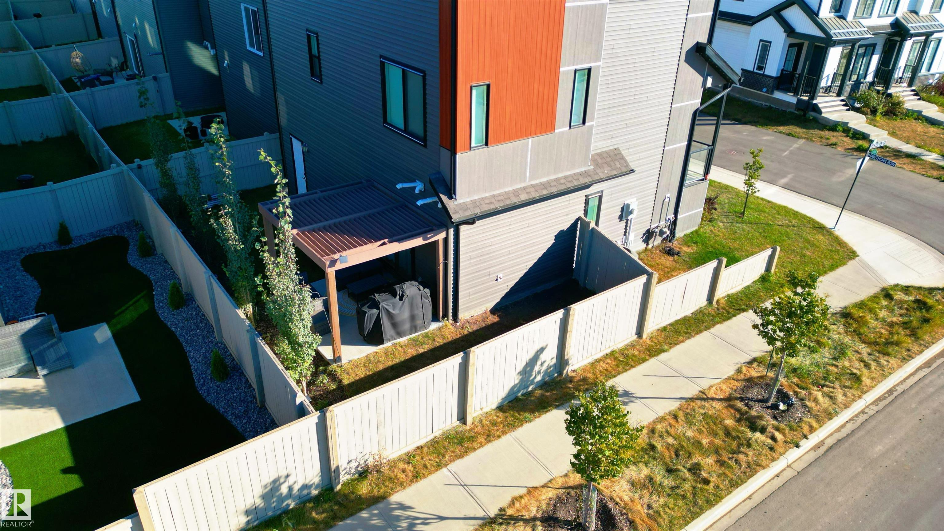Welcome to this immaculate 3-storey, 2212 sq. ft. Showhome, nestled on a corner lot in the highly sought-after community of The Orchards at Ellerslie. The main floor boasts 9-ft ceilings, an abundance of natural light that fills the bright living room, and a striking tile-wrapped fireplace. The chef-inspired kitchen features a stunning waterfall island, modern cabinetry, and stainless steel appliances. Access to a cozy balcony provides a seamless indoor-outdoor flow for year-round enjoyment. Upstairs, the spacious primary bedroom is a retreat with a large walk-in closet and a luxurious 5-piece ensuite. Two additional bedrooms, a 4-piece bathroom, and a convenient upstairs laundry room enhance the home's functionality and convenience. The walk-out lower level offers a fourth bedroom, and access to a beautifully landscaped backyard, complete with a concrete patio, a charming pergola, and outdoor permanent lighting. With Central A/C, double attached garage and schools close by, this home has it all!