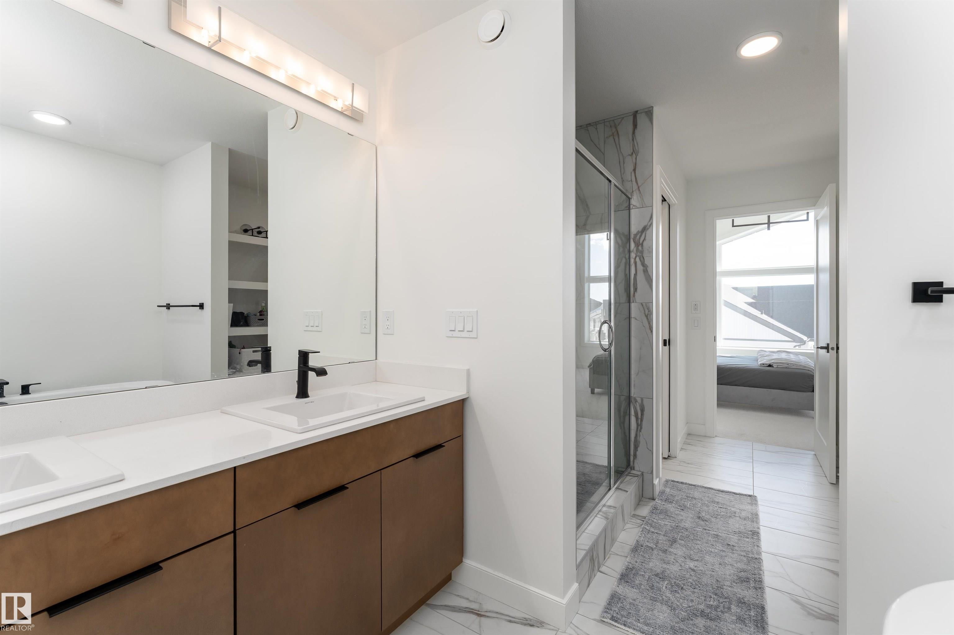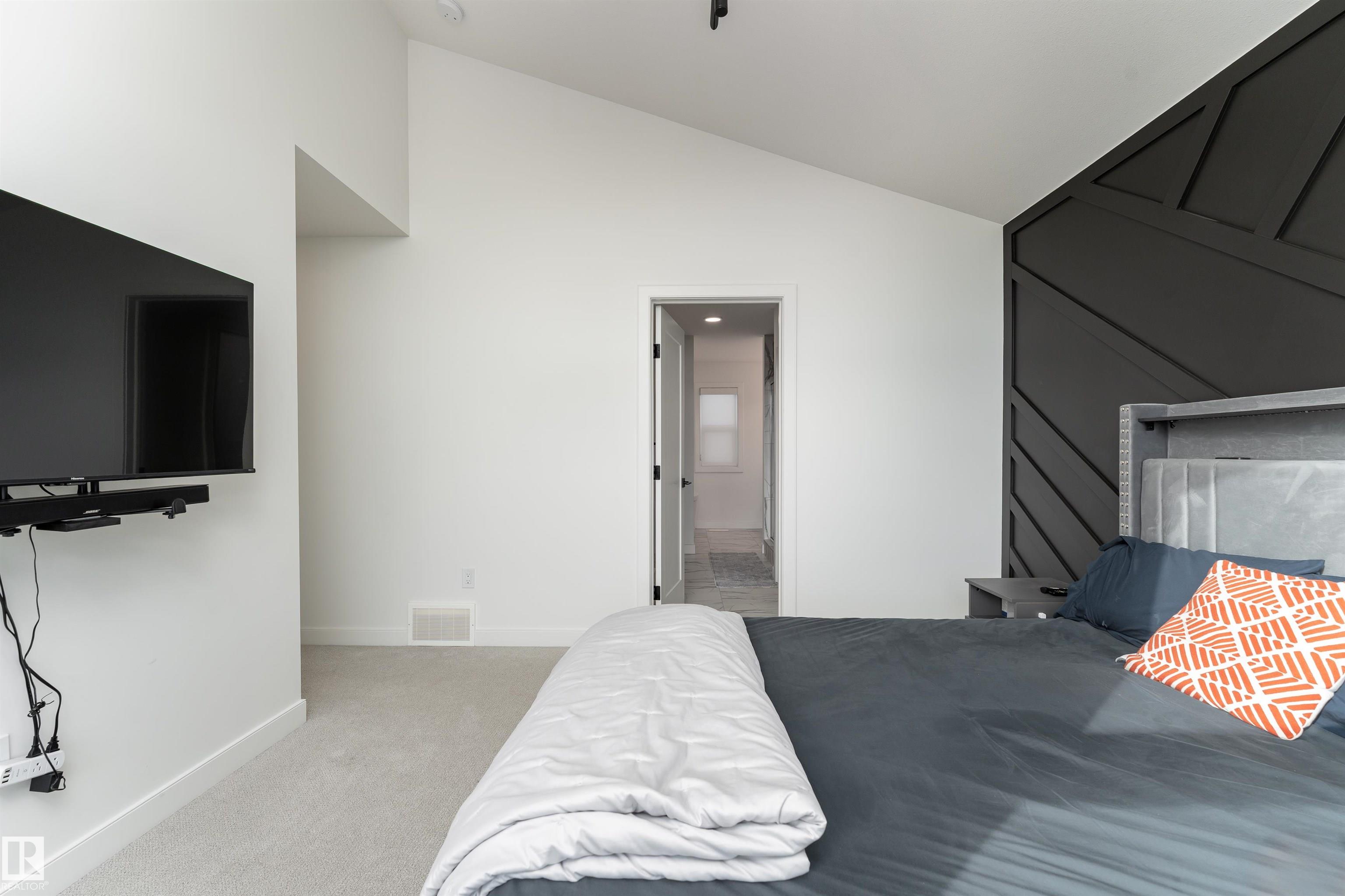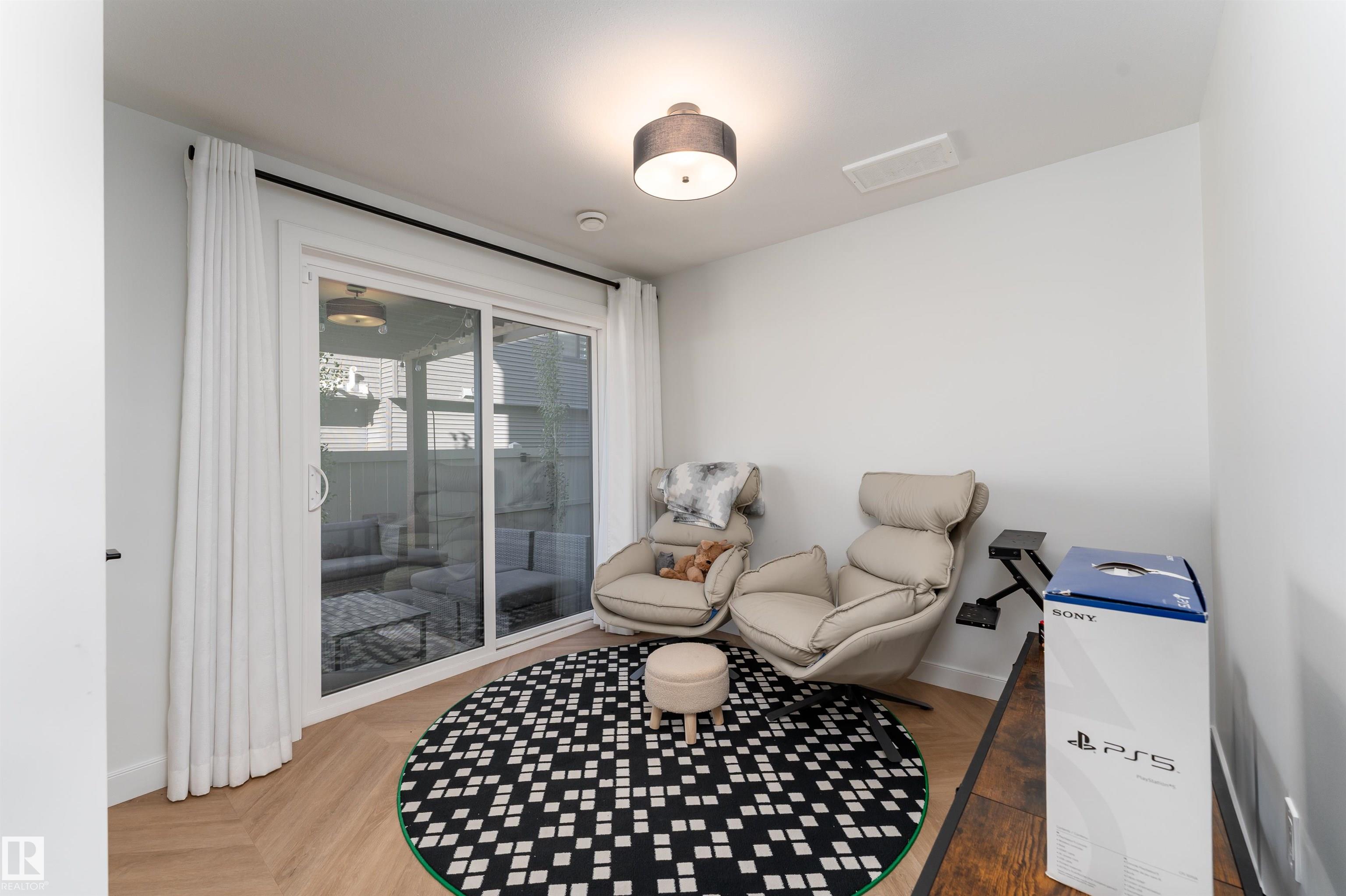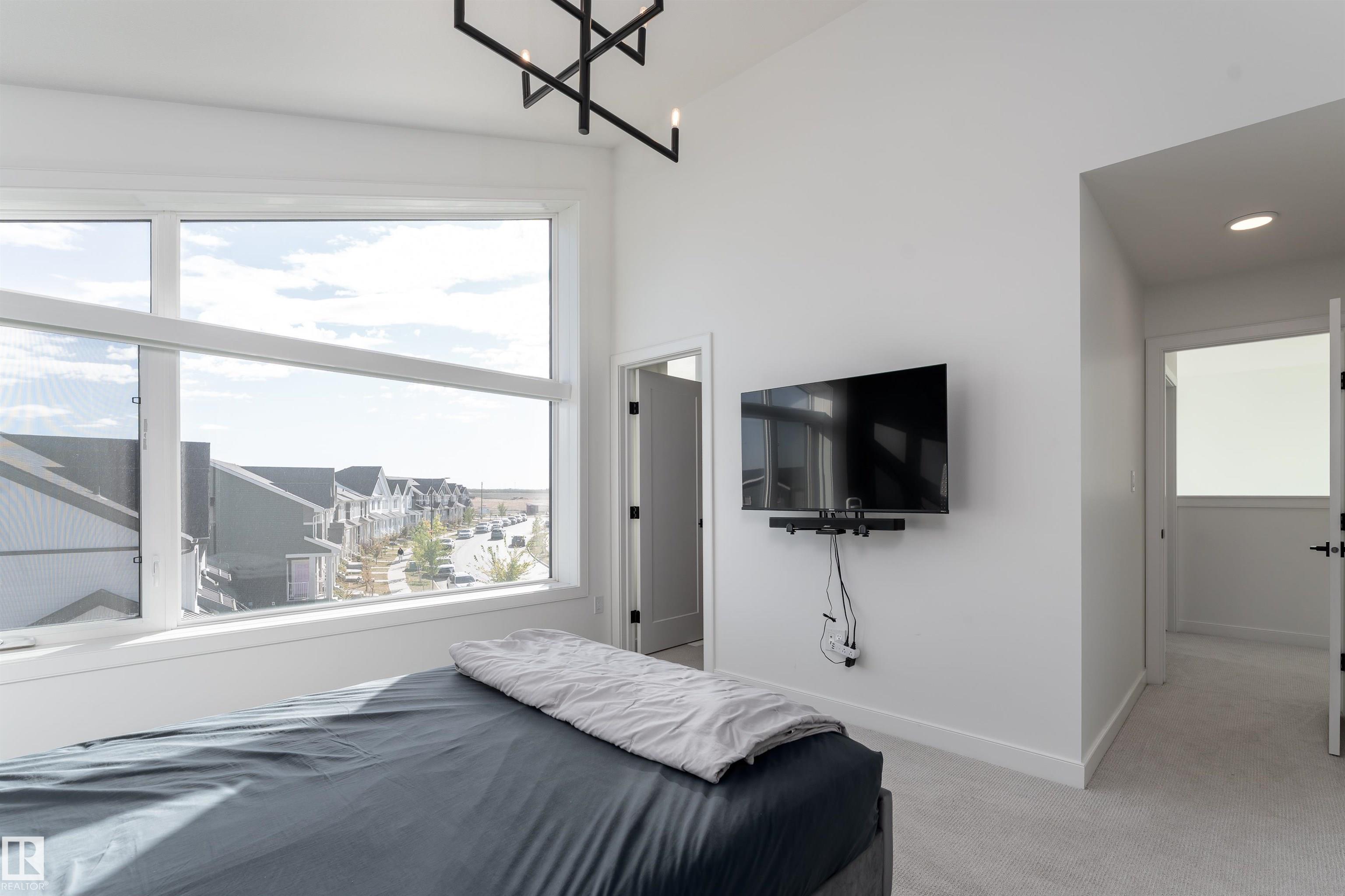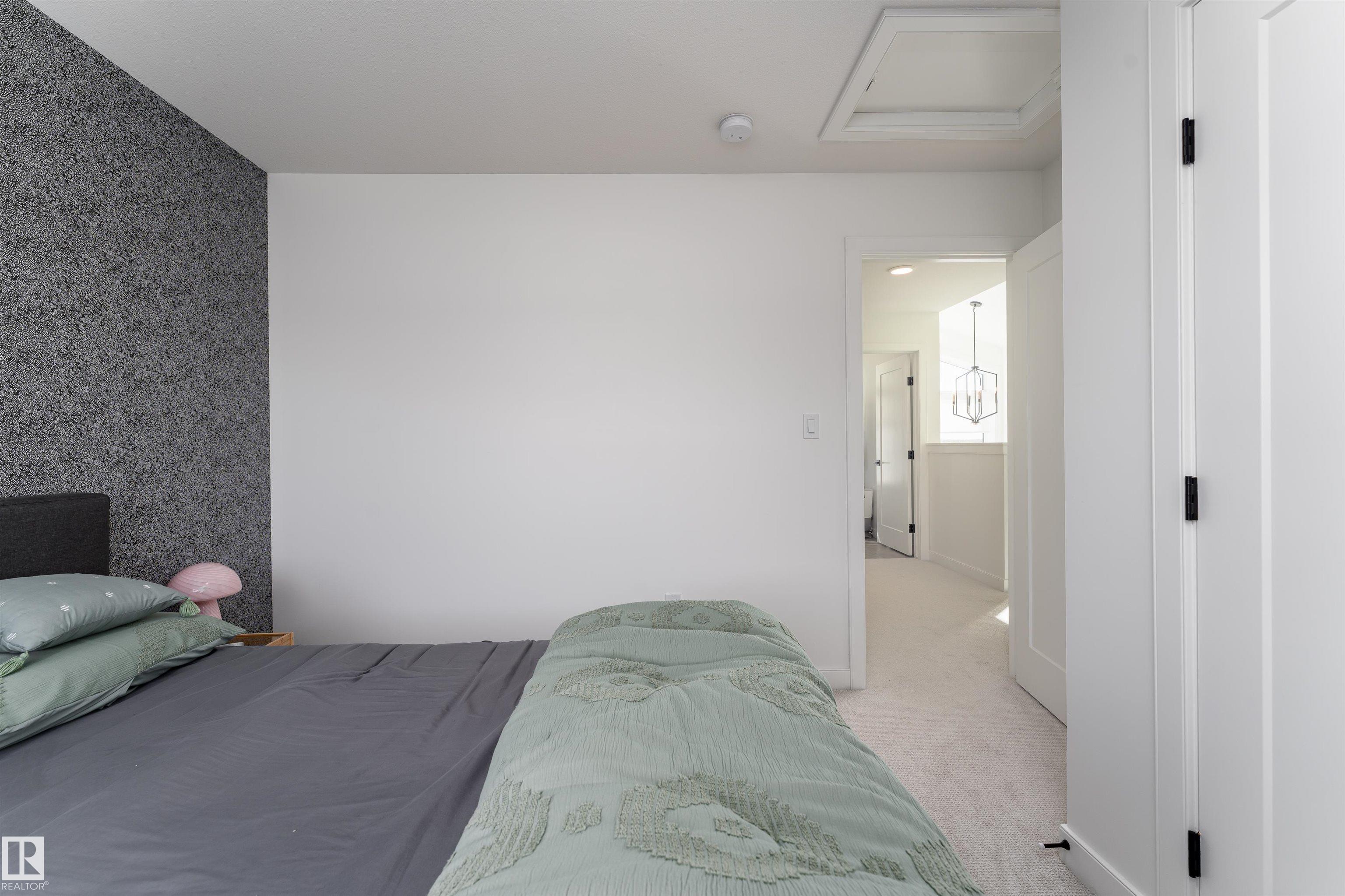 Welcome to this immaculate 3-storey, 2212 sq. ft. Showhome, nestled on a corner lot in the highly sought-after community of The Orchards at Ellerslie. The main floor boasts 9-ft ceilings, an abundance of natural light that fills the bright living room, and a striking tile-wrapped fireplace. The chef-inspired kitchen features a stunning waterfall island, modern cabinetry, and stainless steel appliances. Access to a cozy balcony provides a seamless indoor-outdoor flow for year-round enjoyment. Upstairs, the spacious primary bedroom is a retreat with a large walk-in closet and a luxurious 5-piece ensuite. Two additional bedrooms, a 4-piece bathroom, and a convenient upstairs laundry room enhance the home's functionality and convenience. The walk-out lower level offers a fourth bedroom, and access to a beautifully landscaped backyard, complete with a concrete patio, a charming pergola, and outdoor permanent lighting. With Central A/C, double attached garage and schools close by, this home has it all!