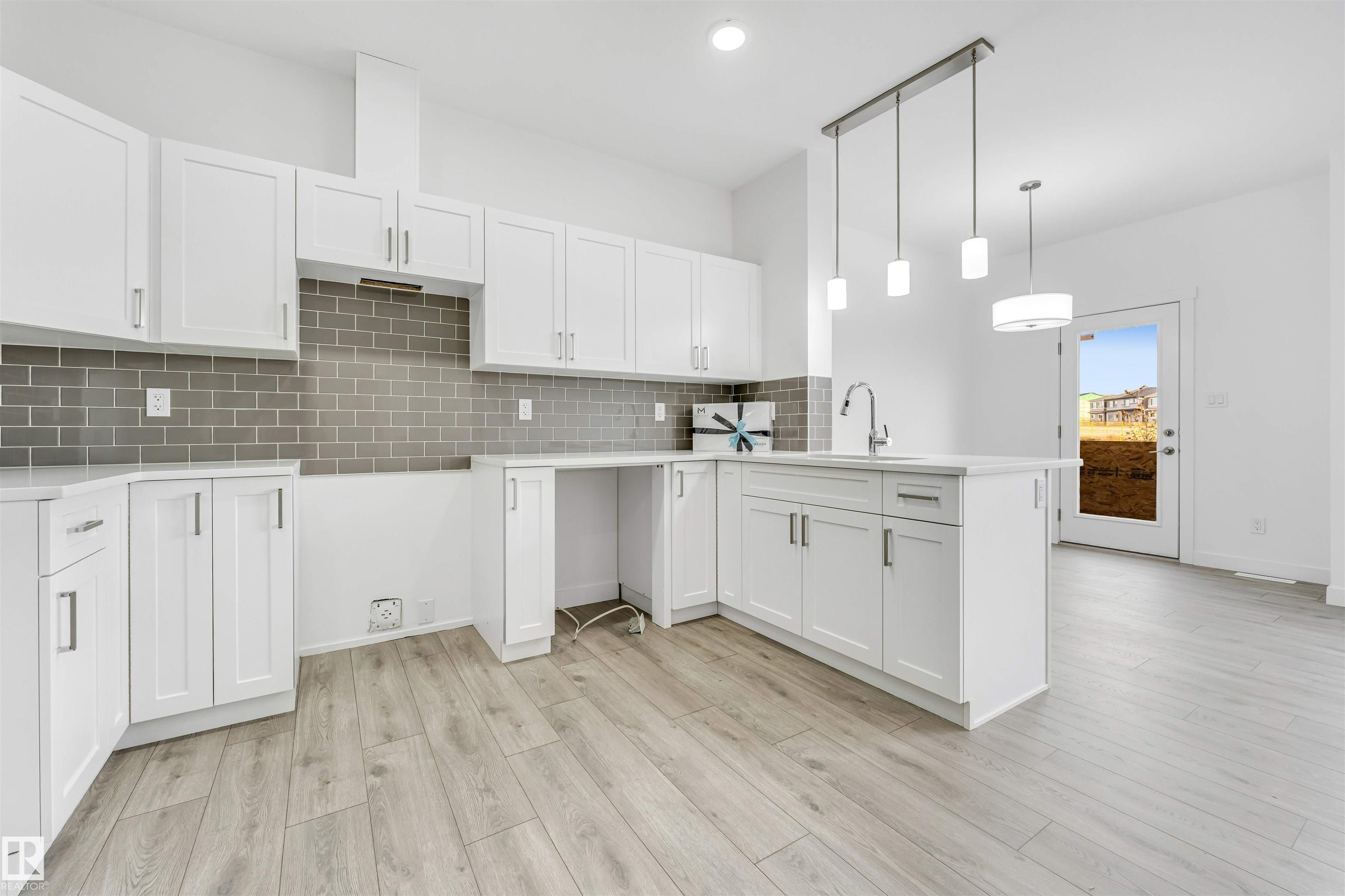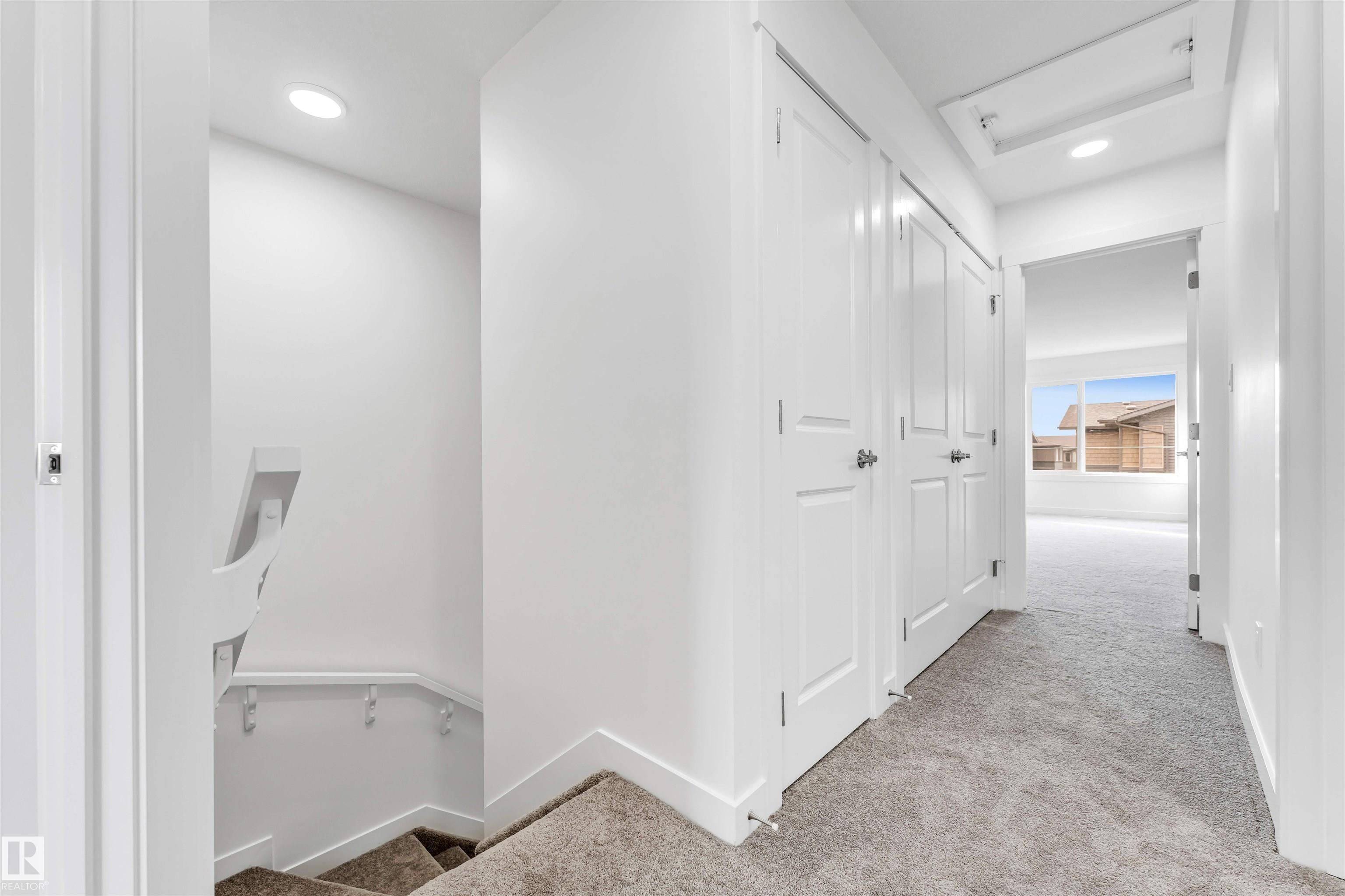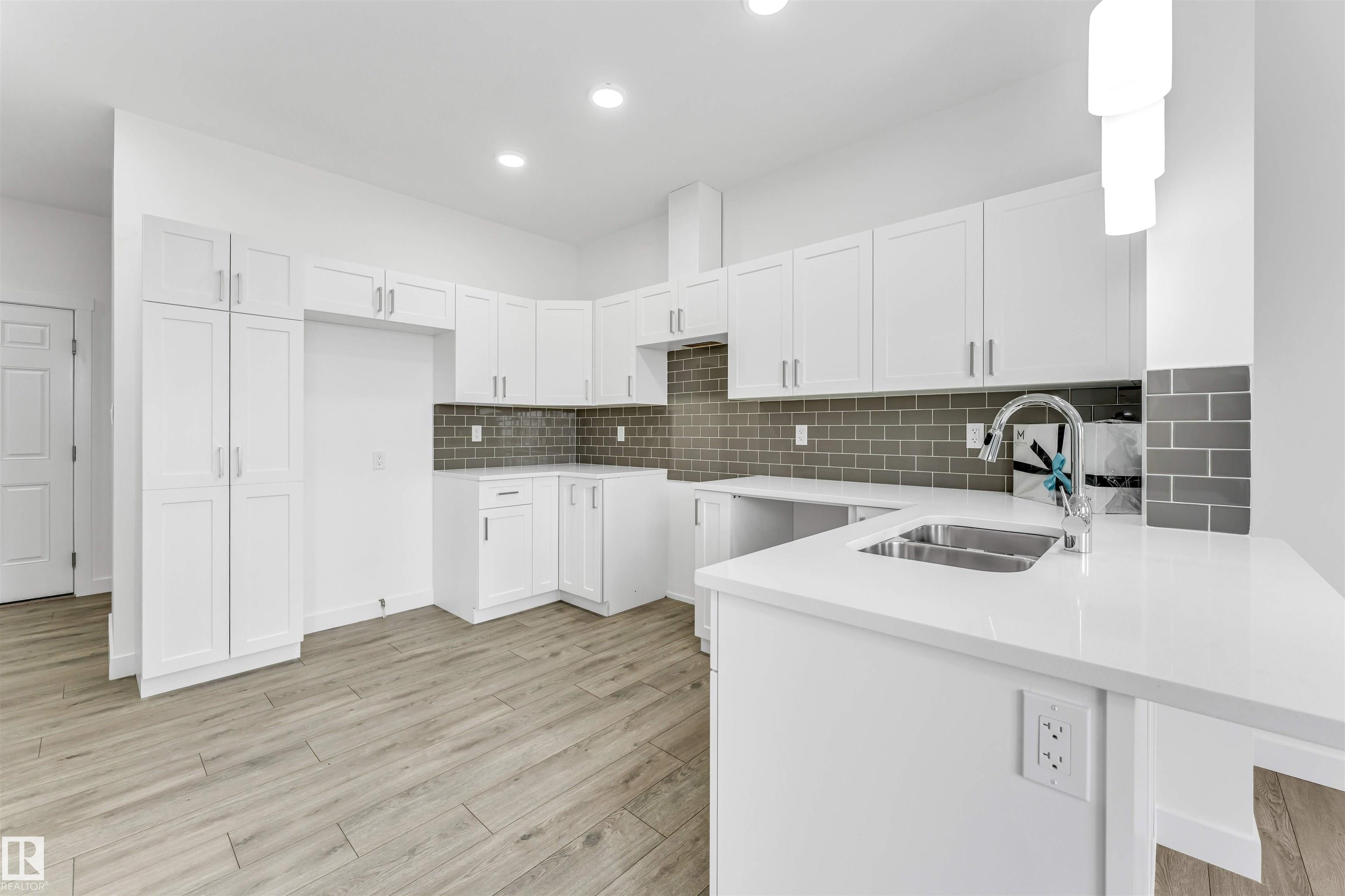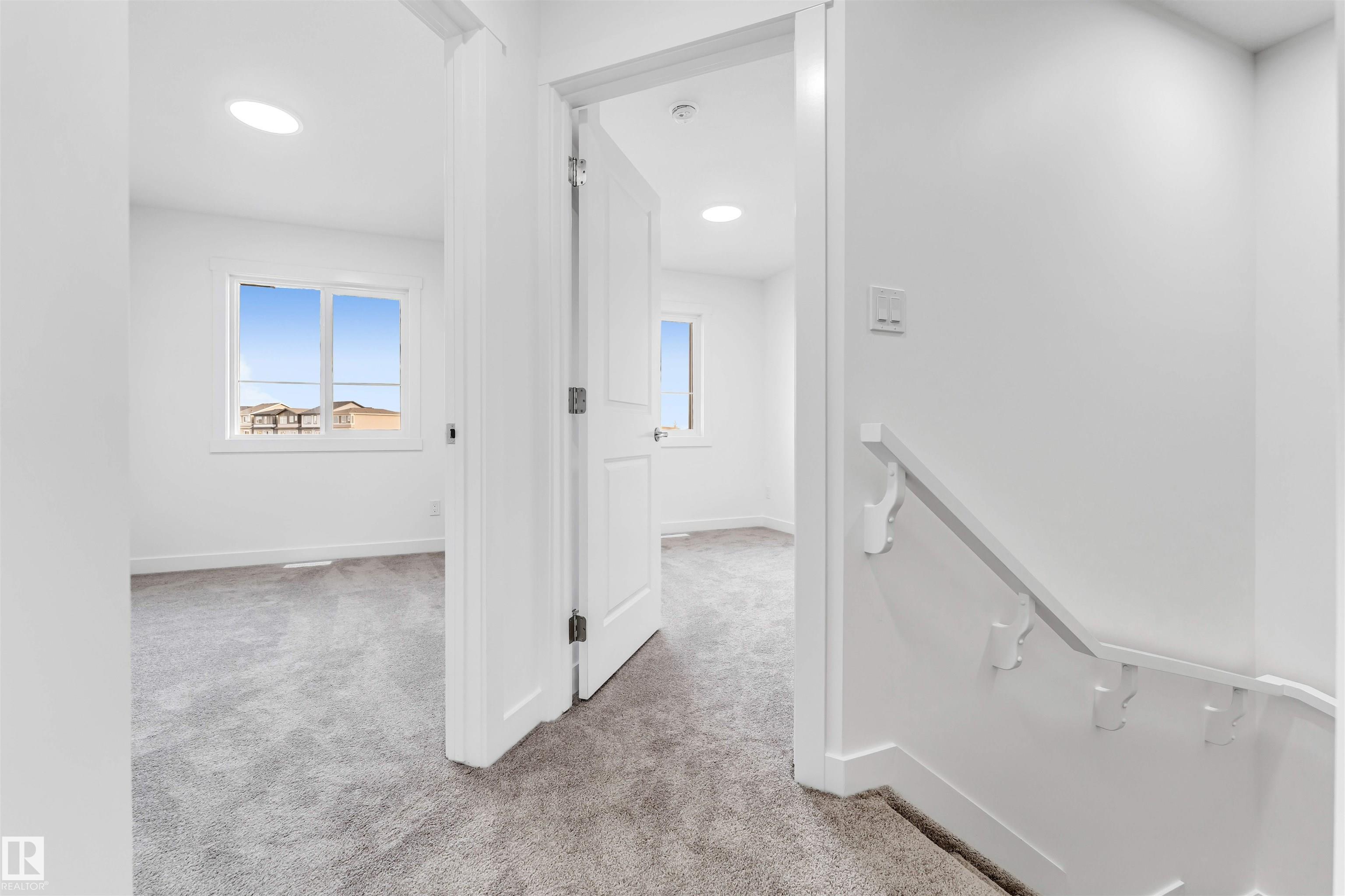 Modern Corner Townhome | Double Attached Garage | Prime Location !! Step into this brand new 3 bedroom, 2.5 bathroom corner townhouse offering the perfect blend of comfort, space, and style! The open main floor features a sleek kitchen with island seating, modern finishes, an inviting dining space, and a bright living area -- ideal for family time or entertaining. A half bath, garage access, and a walkout to a finished backyard deck complete the level.Upstairs, the primary suite includes a 4pc ensuite bath and walk-in closet, while two additional bedrooms share a full bath and a convenient upper-floor laundry. The unfinished basement provides endless possibilities for future development or extra storage.Located close to schools, playgrounds, dog parks, grocery stores, and The Orchards Centre -- with favourites like Starbucks, Dairy Queen, and Shoppers just 2 minutes away! Enjoy quick access to Anthony Henday, Highway 2, YEG Airport, and Premium Outlet Mall. Move-in ready and waiting for you to call it home!