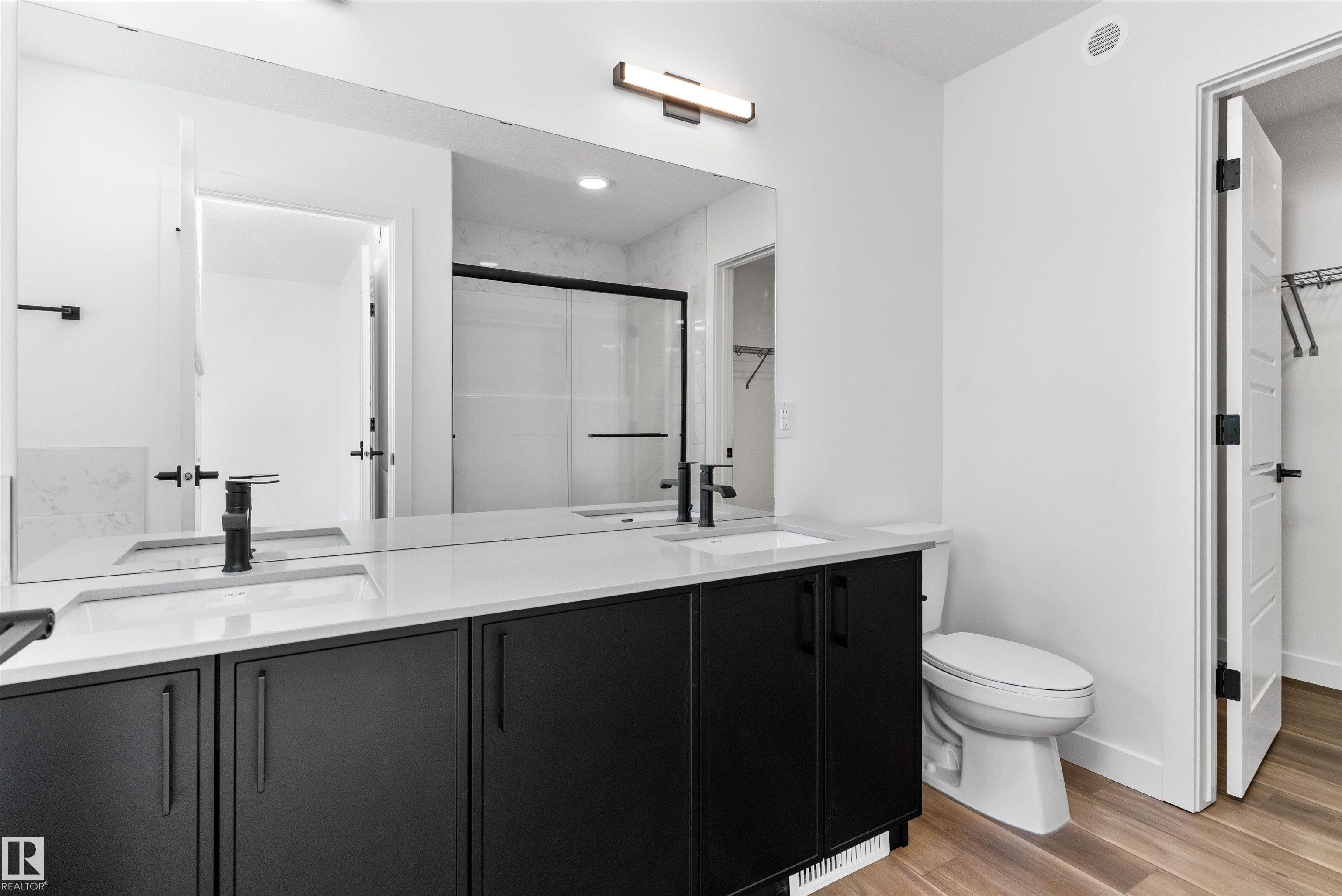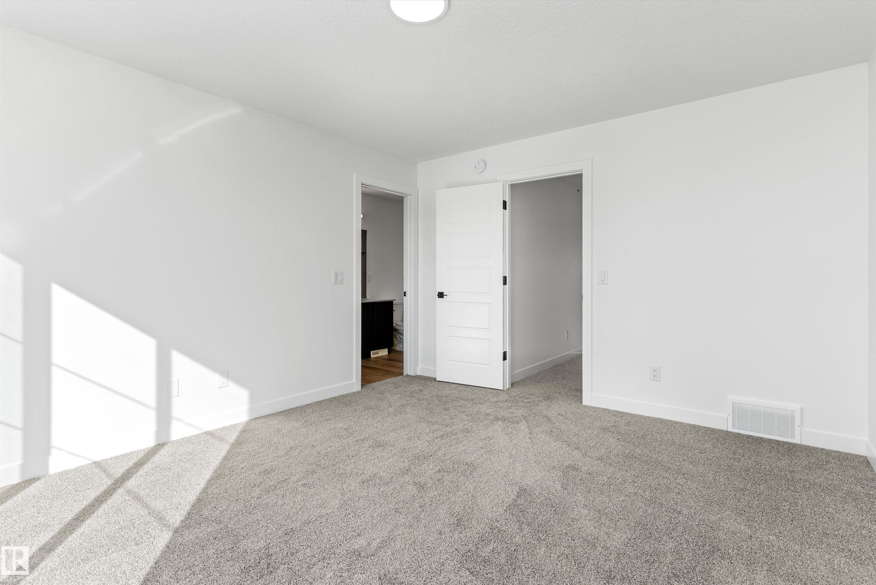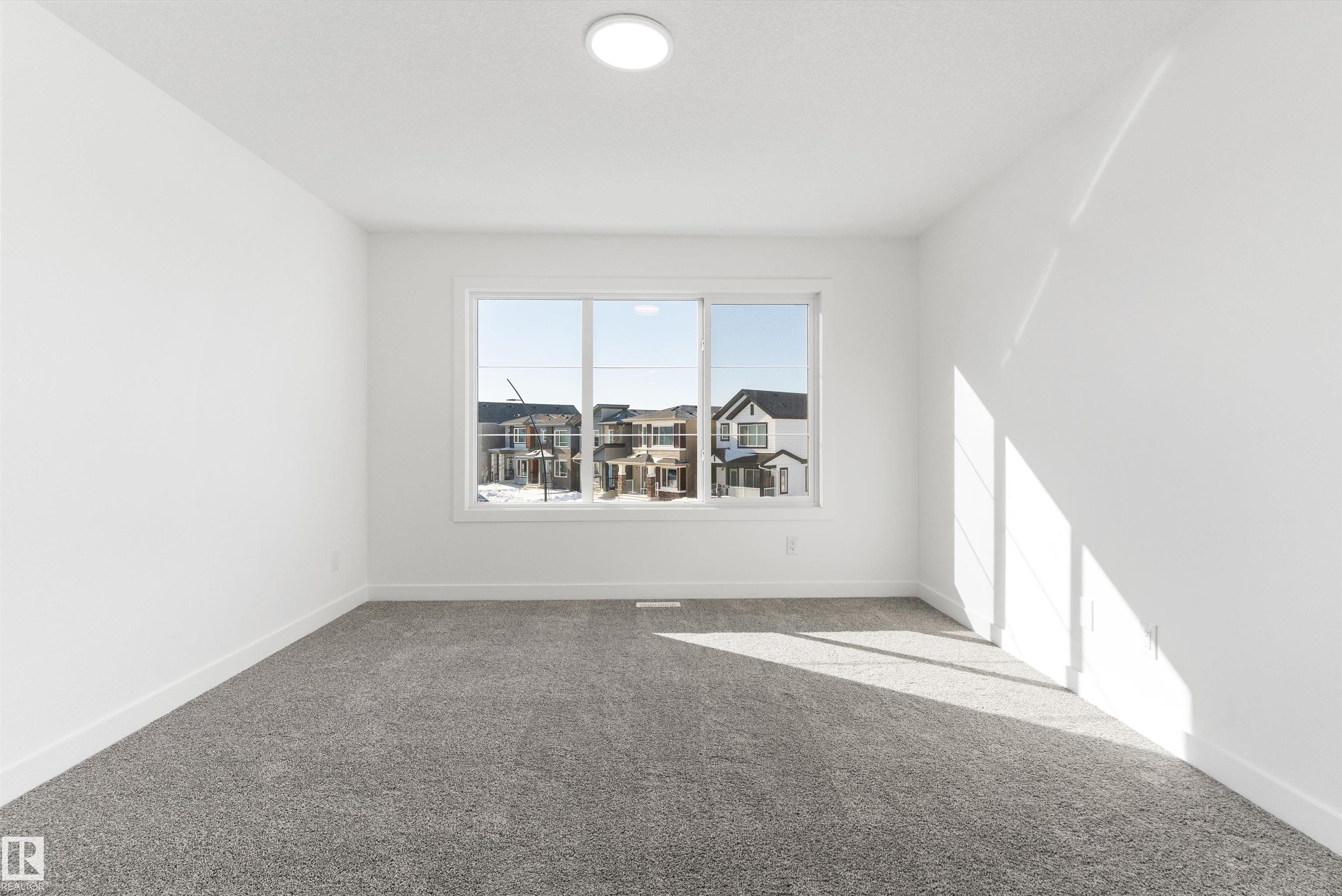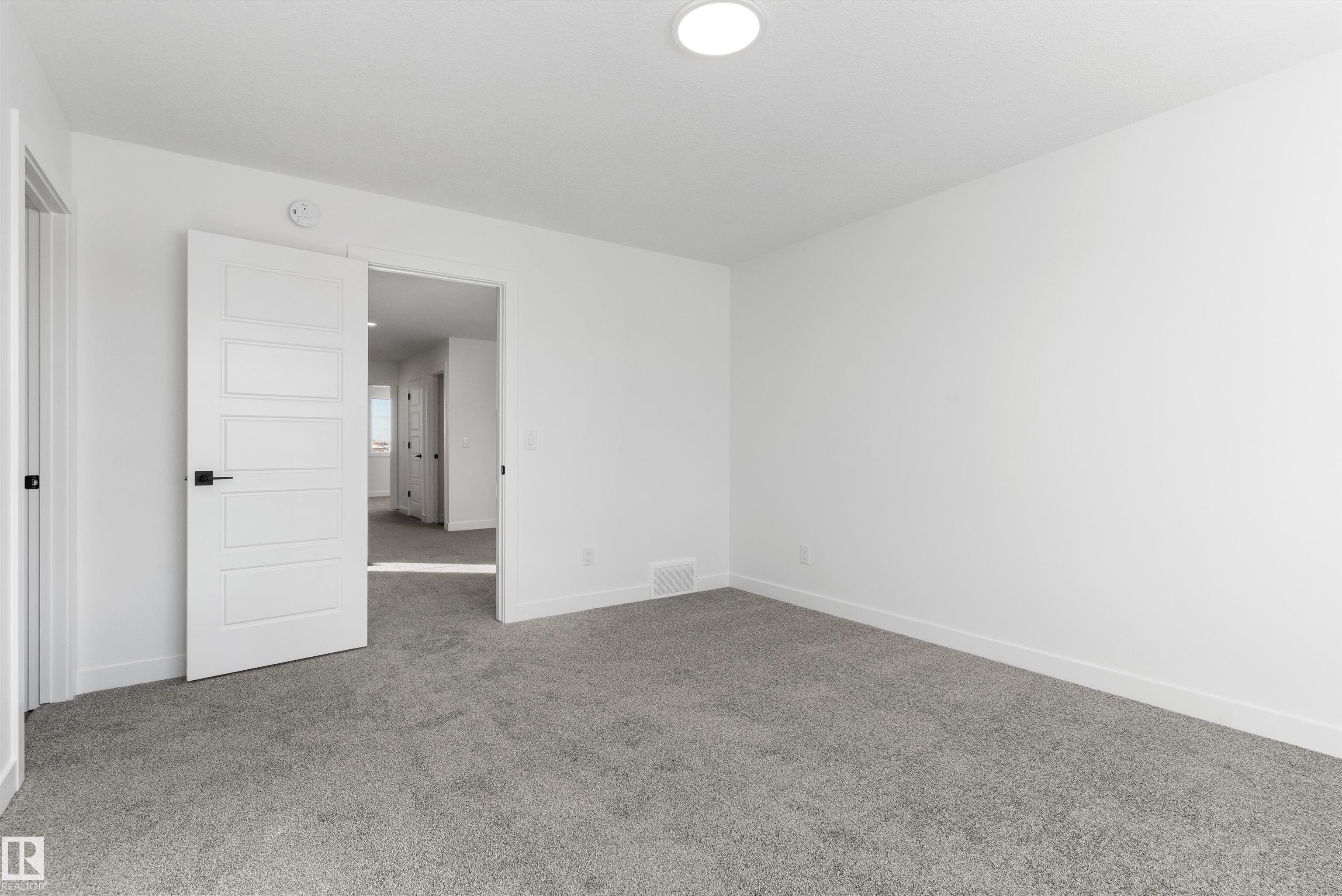 Built by Sterling Homes, this front-attached home in The Uplands at Riverview offers modern comfort and thoughtful design. Triple pane windows and 9' ceilings brighten the main floor, where a welcoming foyer opens to a stylish open-concept living space. A rear den is ideal for a home office or quiet retreat. The kitchen features quartz countertops, a large island with seating, upgraded cabinetry, chimney hood fan, built-in microwave, and a pantry. The great room includes an electric fireplace, large windows with backyard views, and a patio door for easy outdoor access. Upstairs, the primary suite offers a walk-in closet and 5-piece ensuite with double sinks, soaker tub, and glass-door shower. A central bonus room, upper-floor laundry, full bath, and two additional bedrooms complete the layout. Luxury vinyl plank flooring, a separate side entrance, double attached garage with floor drain, and basement rough-ins add future potential.
