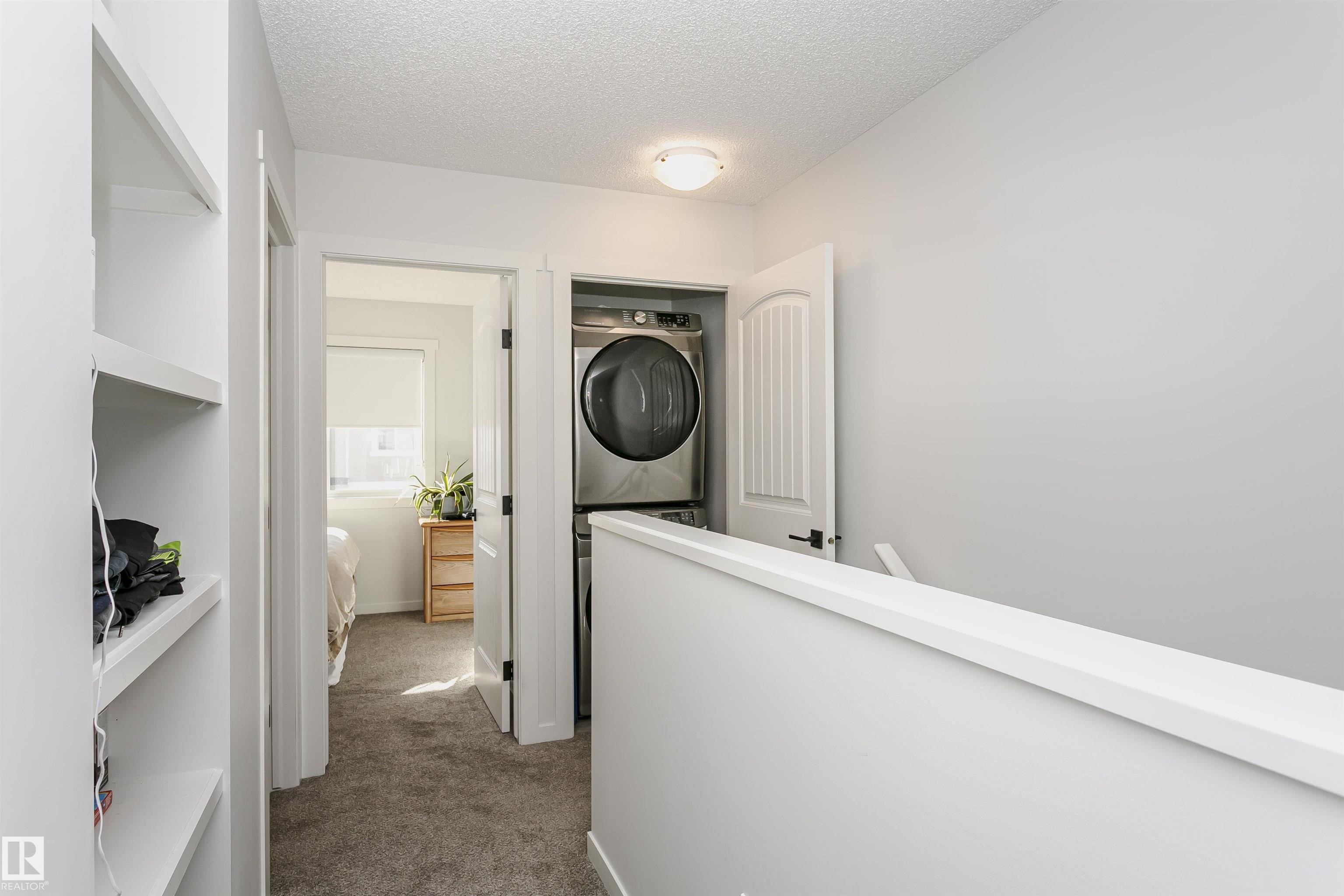 Discover the perfect blend of style, space, and convenience in this stunning END-UNIT townhouse located in a vibrant Southwest Edmonton community. The lower-level DEN offers ideal space for a home office, playroom, or guest area. An OVERSIZED ATTACHED GARAGE provides ample parking and storage, plus a convenient half bath. The open-concept second floor features a modern kitchen with sleek countertops, stainless steel appliances, and generous cabinetry flowing into bright living and dining areas. Upstairs includes TWO FULL BATHROOMS, including a private ENSUITE for the primary bedroom, and a spacious second bedroom. Enjoy NO CONDO FEES, full landscaping, and a CONCRETE PATIO -- perfect for first-time buyers, downsizers, or investors.