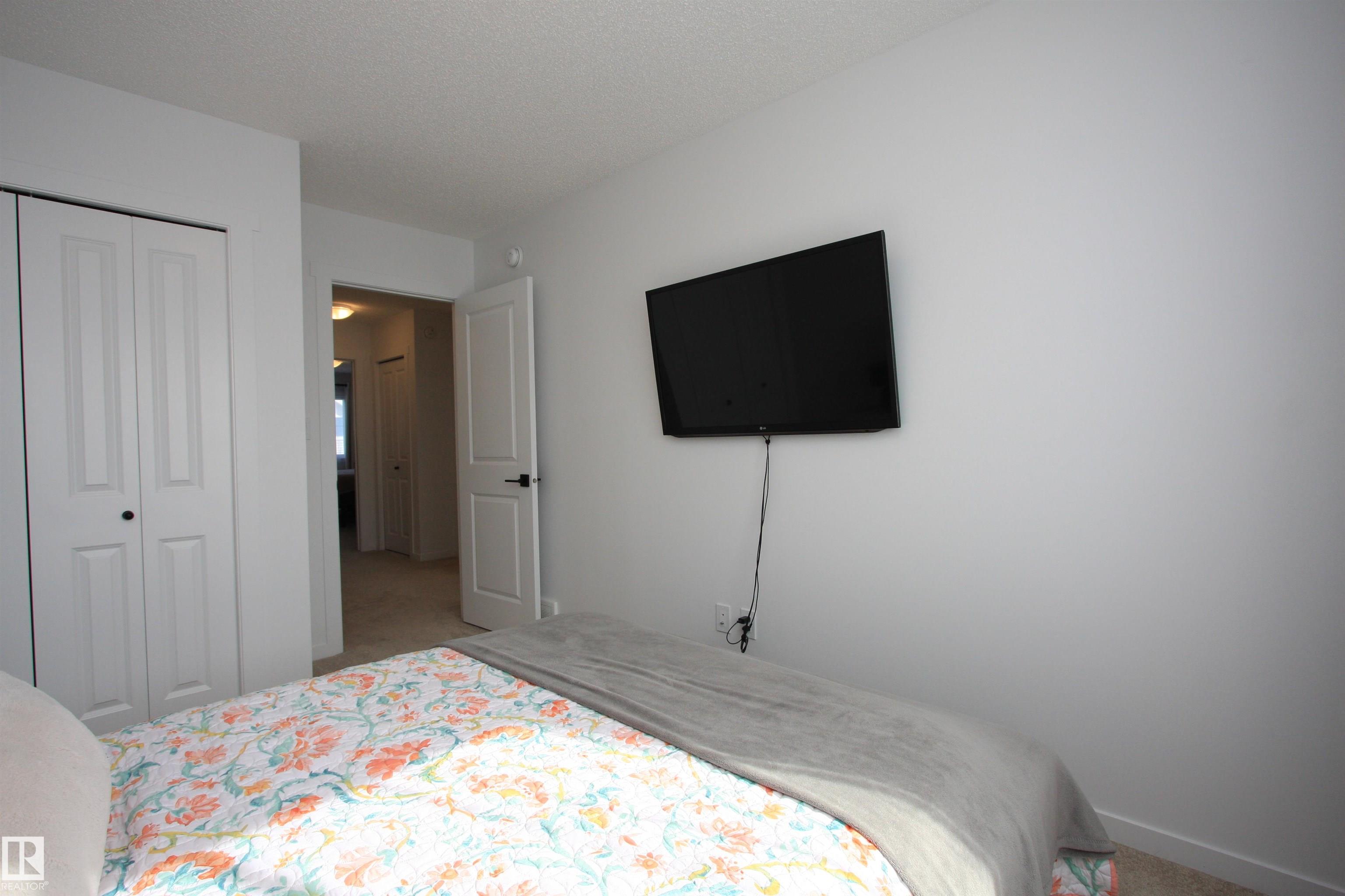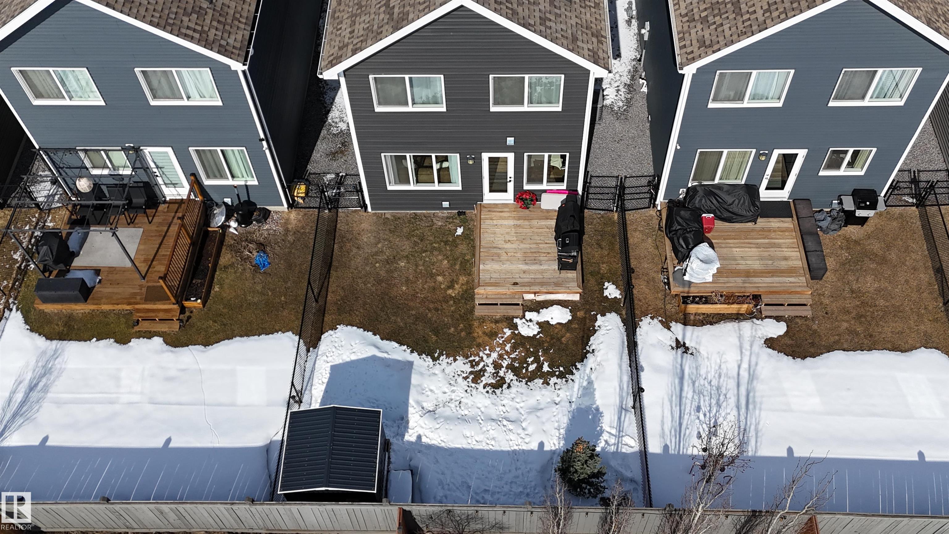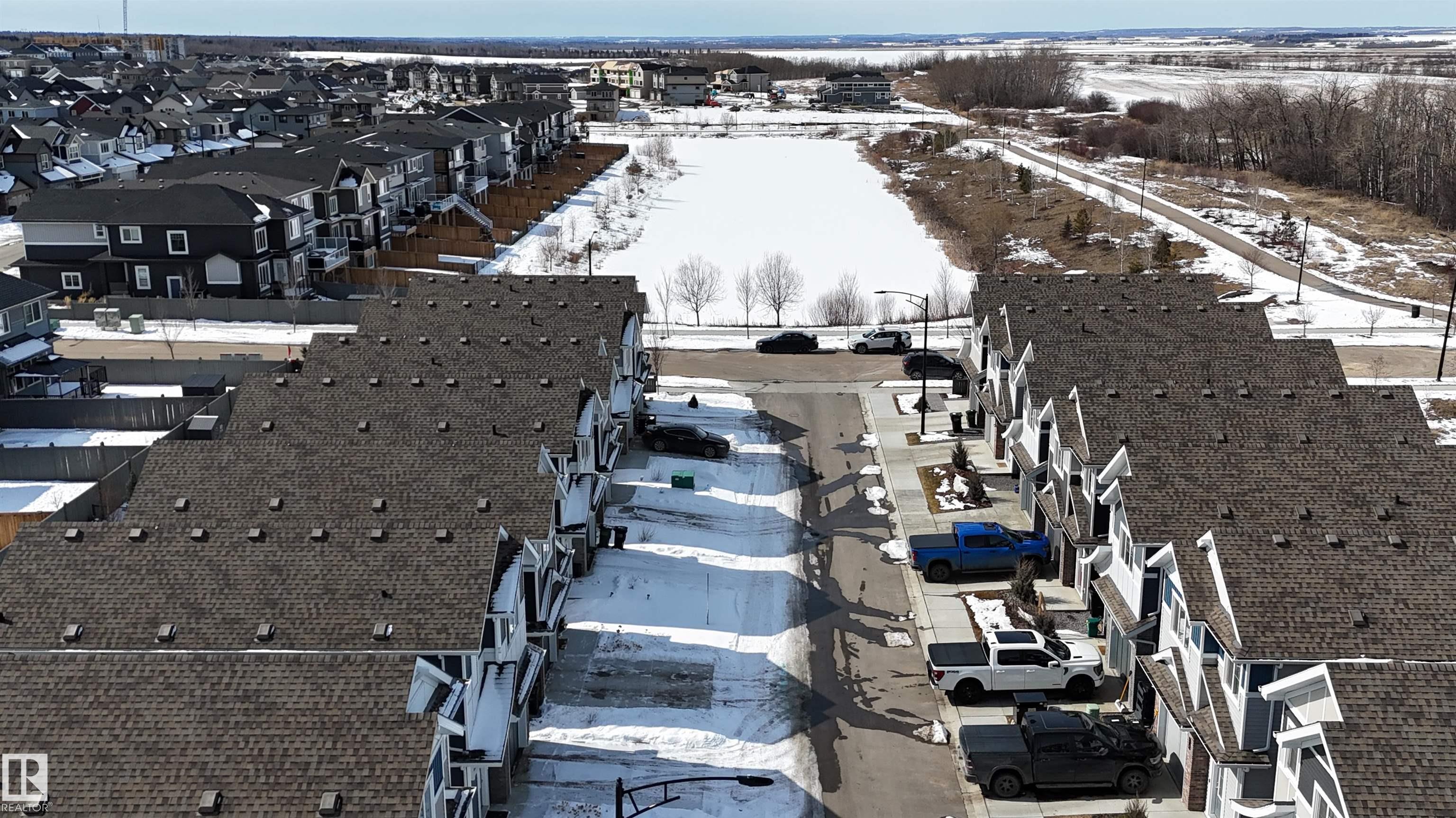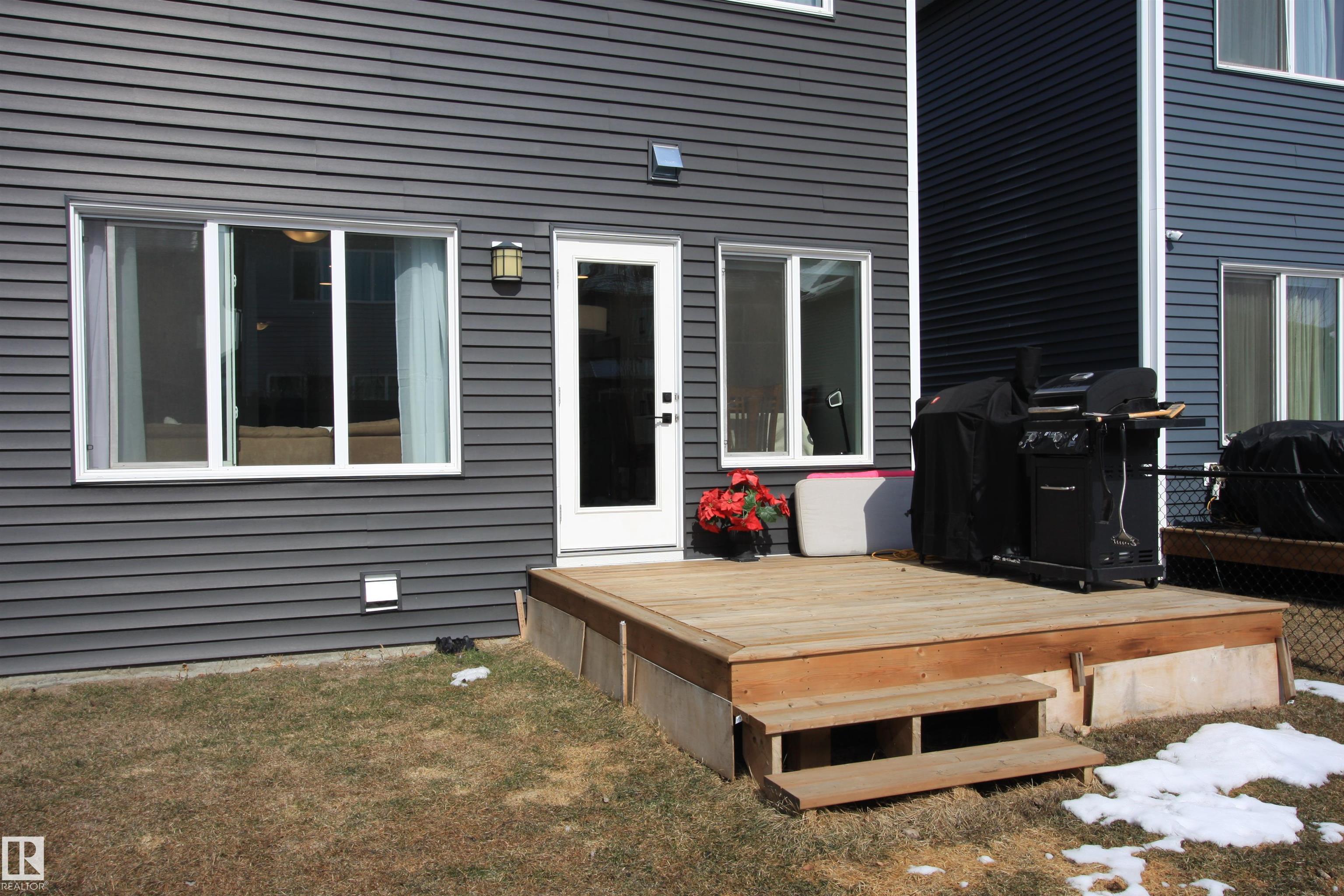 Welcome home to sun-filled living, a south-facing backyard, and beautiful paved trails just steps away. This stylish 2-storey home in The Village at Trumpeter offers 1,424 sq ft of bright, functional living space well-maintained and designed for easy living on a quiet street. The open-concept main floor features large windows, modern matte-black accents, white cabinetry, quartz countertops, and stainless-steel appliances. Upstairs you'll find 3 generous bedrooms, including a spacious primary suite with walk-in closet and 4-pc ensuite, plus convenient second-floor laundry. Stay comfortable year-round with central A/C. The fully fenced and landscaped backyard includes a deck and storage shed--perfect for relaxing outdoors or planting a small garden. The single attached garage is insulated and drywalled. Enjoy walking distance to scenic paved trails--perfect for biking, evening strolls, or walking the dog--with quick access to the Henday and Yellowhead.