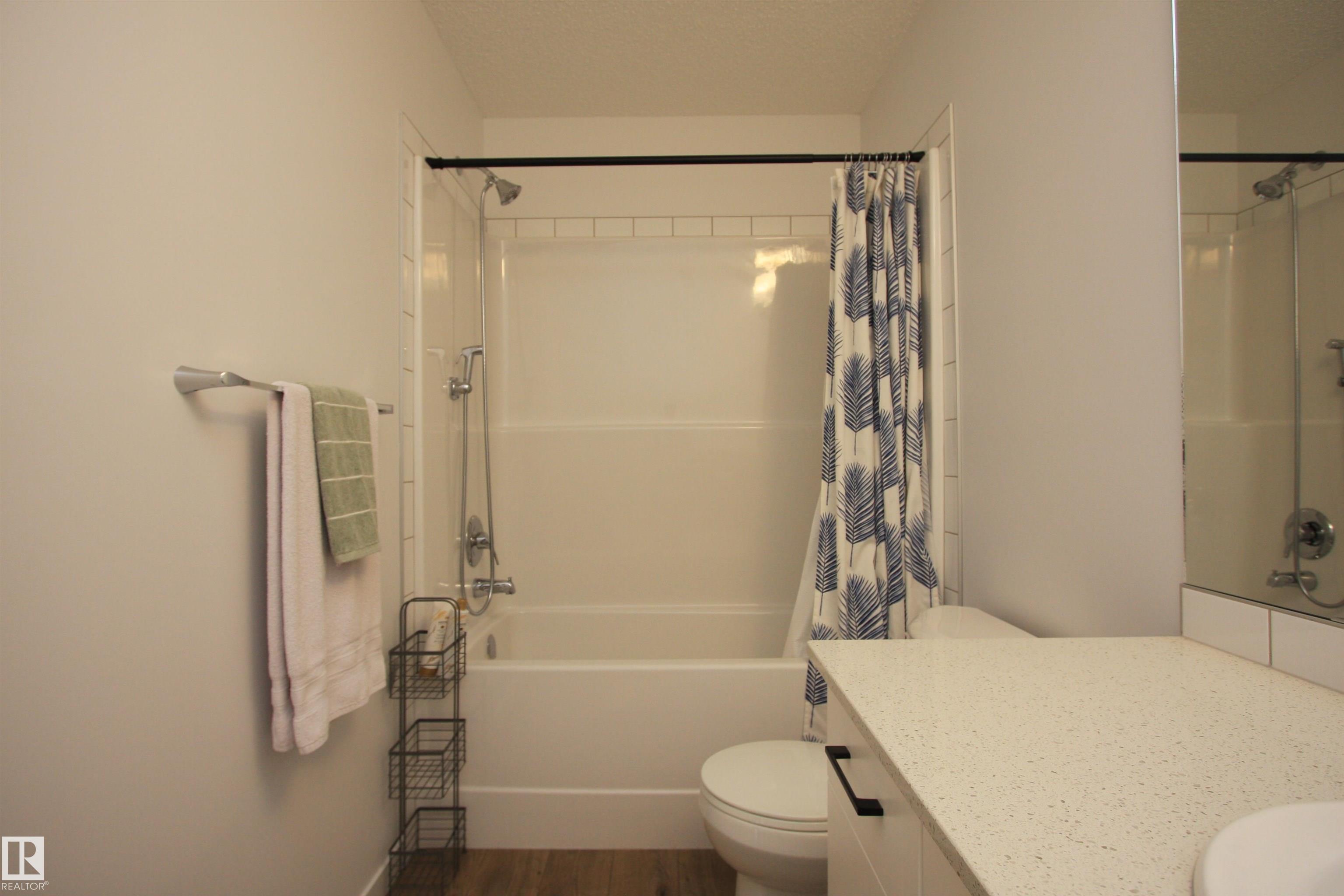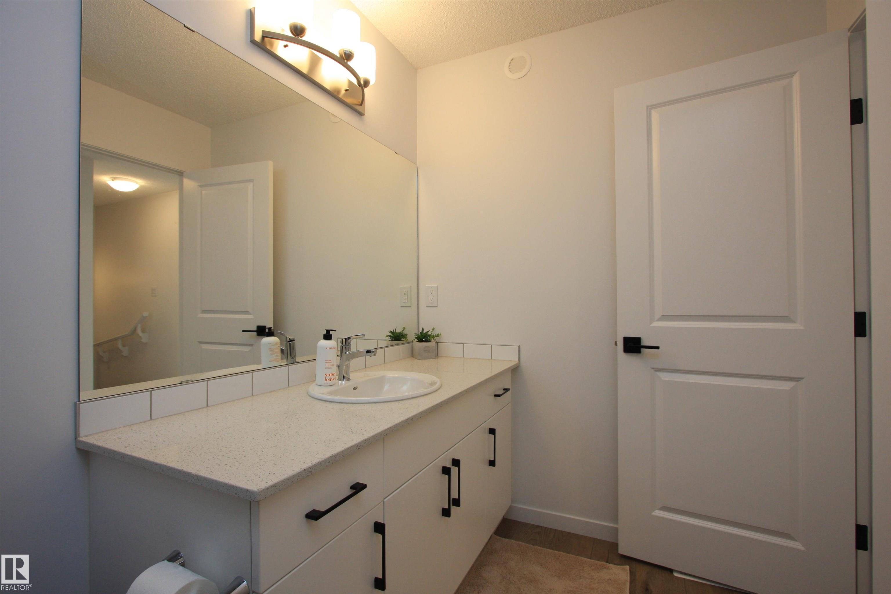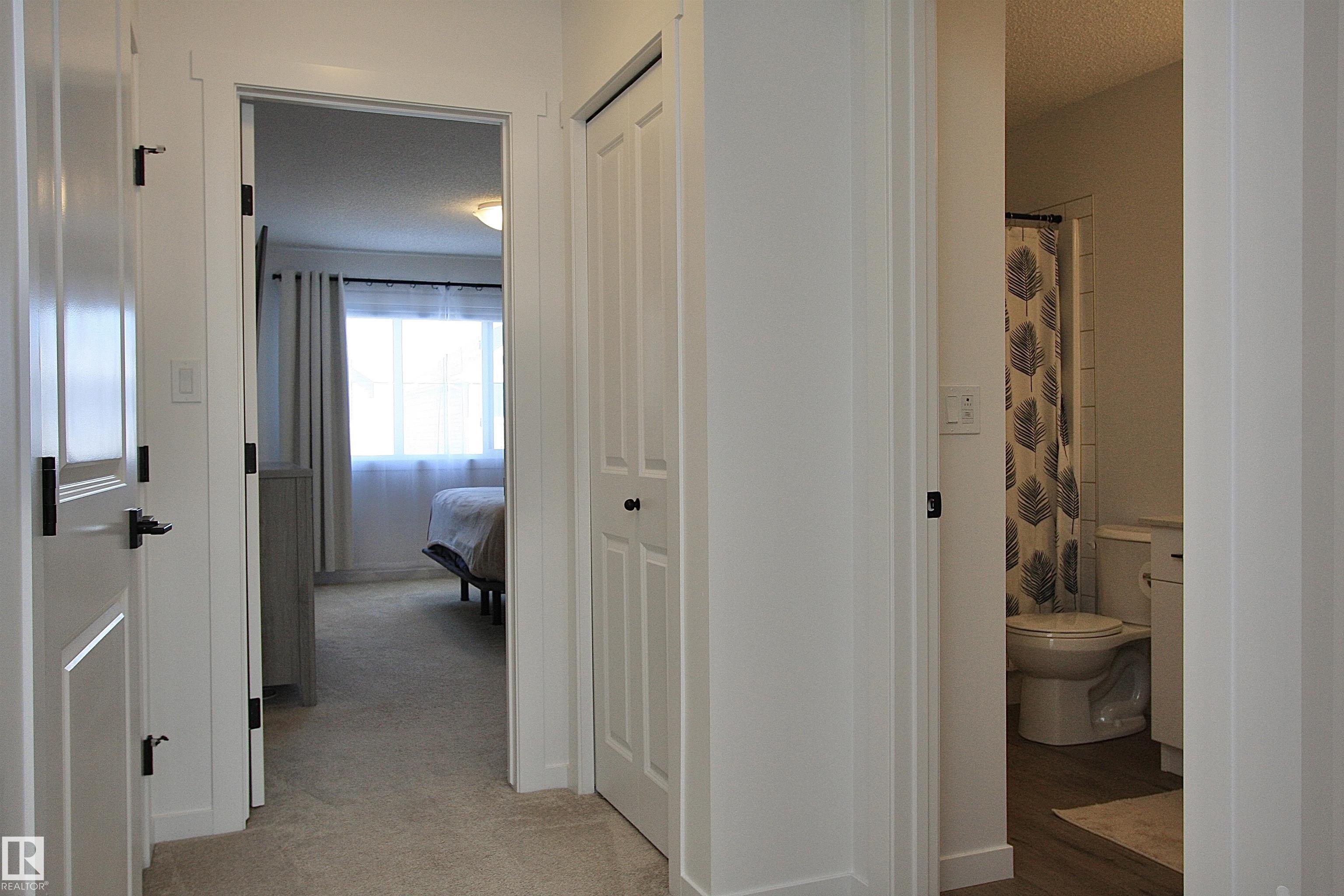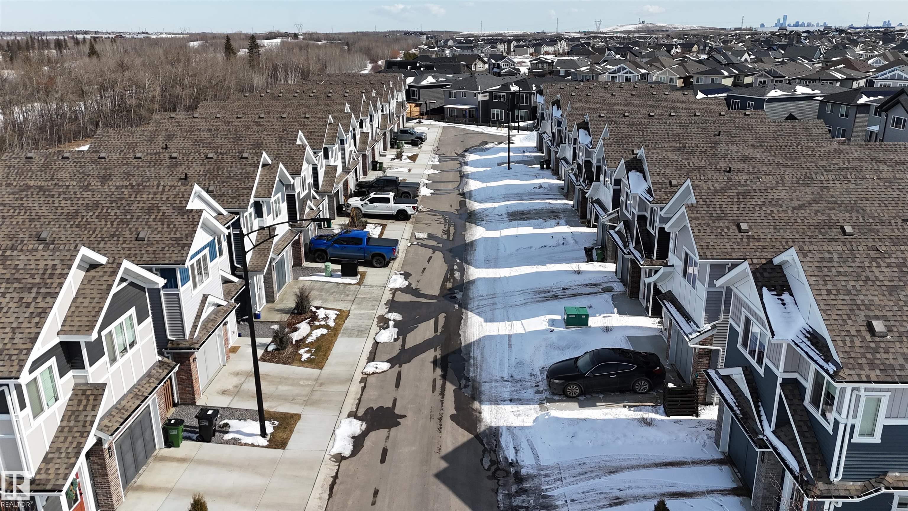 Welcome home to sun-filled living, a south-facing backyard, and beautiful paved trails just steps away. This stylish 2-storey home in The Village at Trumpeter offers 1,424 sq ft of bright, functional living space well-maintained and designed for easy living on a quiet street. The open-concept main floor features large windows, modern matte-black accents, white cabinetry, quartz countertops, and stainless-steel appliances. Upstairs you'll find 3 generous bedrooms, including a spacious primary suite with walk-in closet and 4-pc ensuite, plus convenient second-floor laundry. Stay comfortable year-round with central A/C. The fully fenced and landscaped backyard includes a deck and storage shed--perfect for relaxing outdoors or planting a small garden. The single attached garage is insulated and drywalled. Enjoy walking distance to scenic paved trails--perfect for biking, evening strolls, or walking the dog--with quick access to the Henday and Yellowhead.