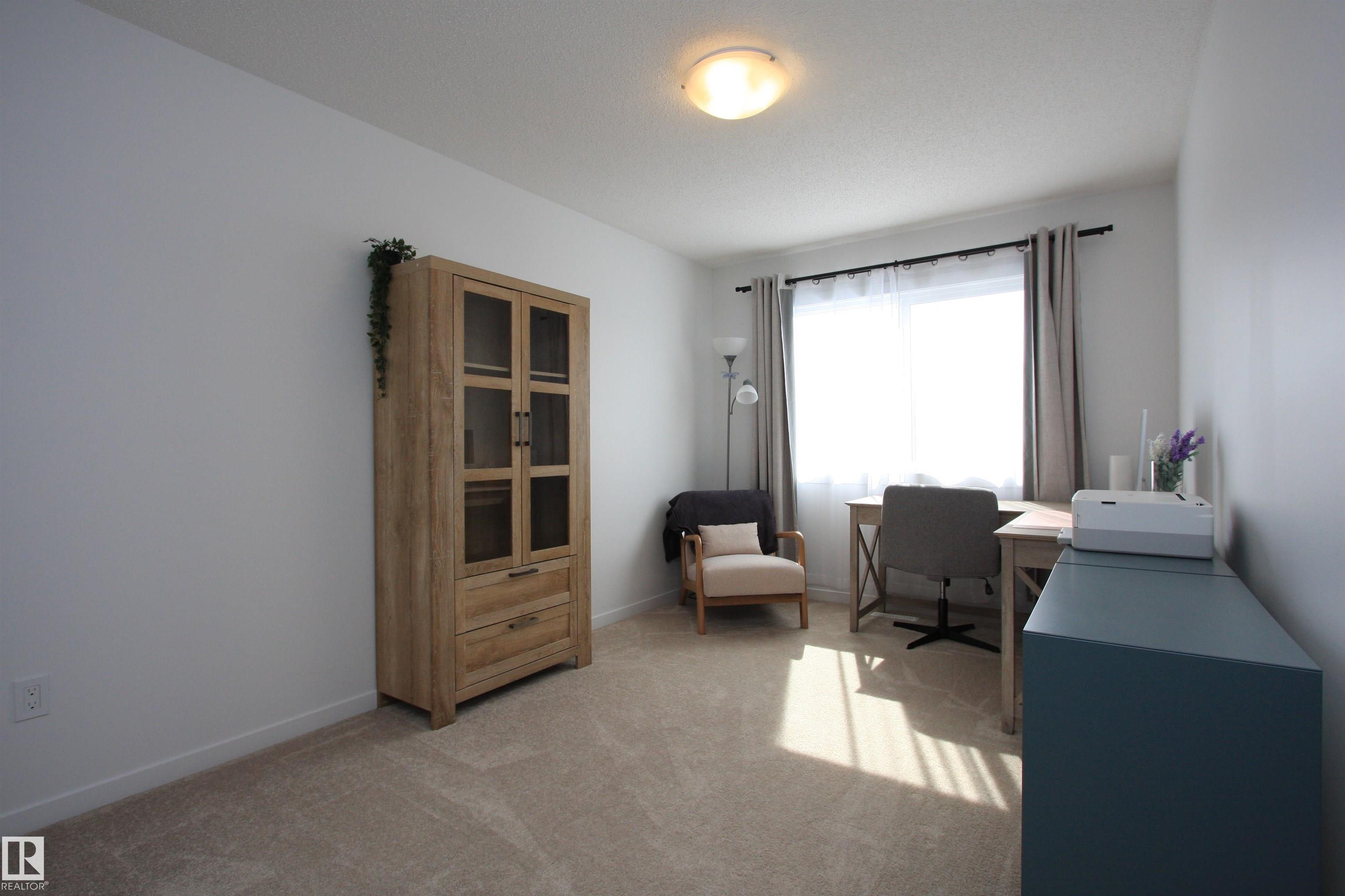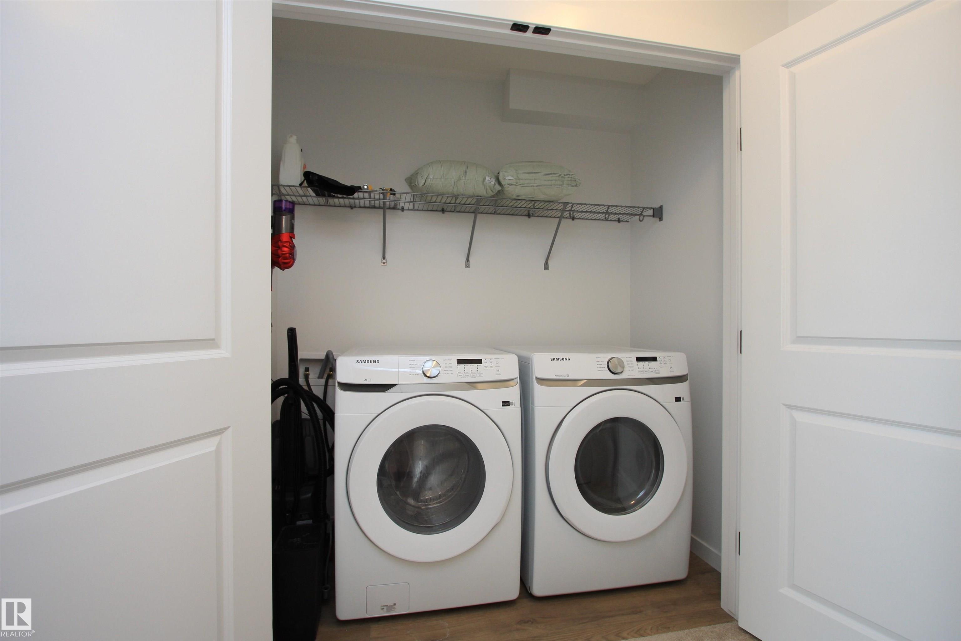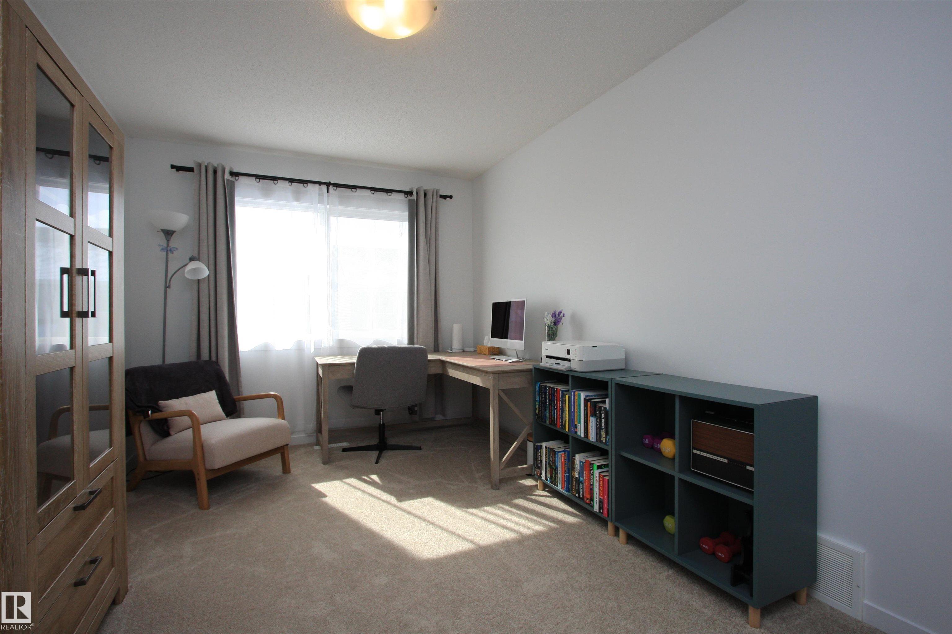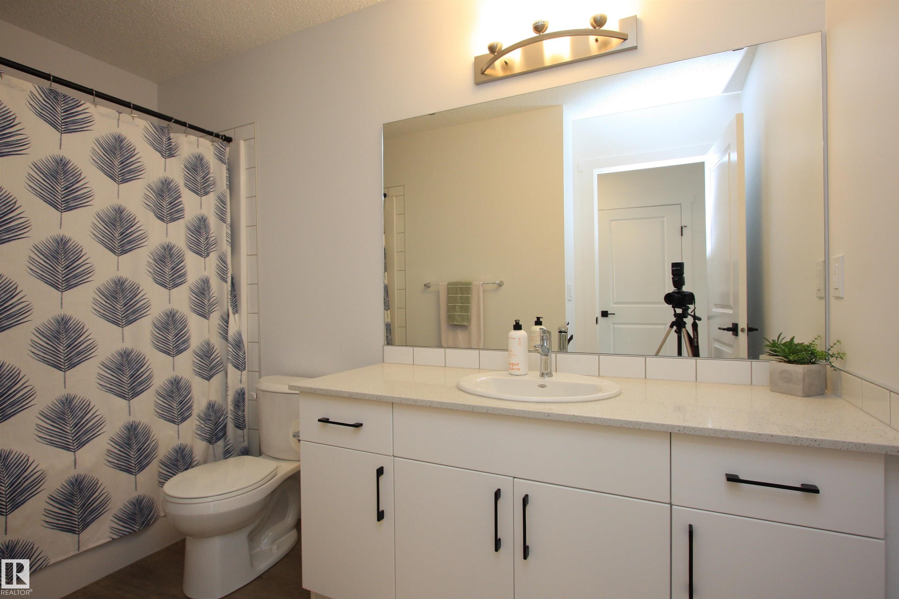 Welcome home to sun-filled living, a south-facing backyard, and beautiful paved trails just steps away. This stylish 2-storey home in The Village at Trumpeter offers 1,424 sq ft of bright, functional living space well-maintained and designed for easy living on a quiet street. The open-concept main floor features large windows, modern matte-black accents, white cabinetry, quartz countertops, and stainless-steel appliances. Upstairs you'll find 3 generous bedrooms, including a spacious primary suite with walk-in closet and 4-pc ensuite, plus convenient second-floor laundry. Stay comfortable year-round with central A/C. The fully fenced and landscaped backyard includes a deck and storage shed--perfect for relaxing outdoors or planting a small garden. The single attached garage is insulated and drywalled. Enjoy walking distance to scenic paved trails--perfect for biking, evening strolls, or walking the dog--with quick access to the Henday and Yellowhead.