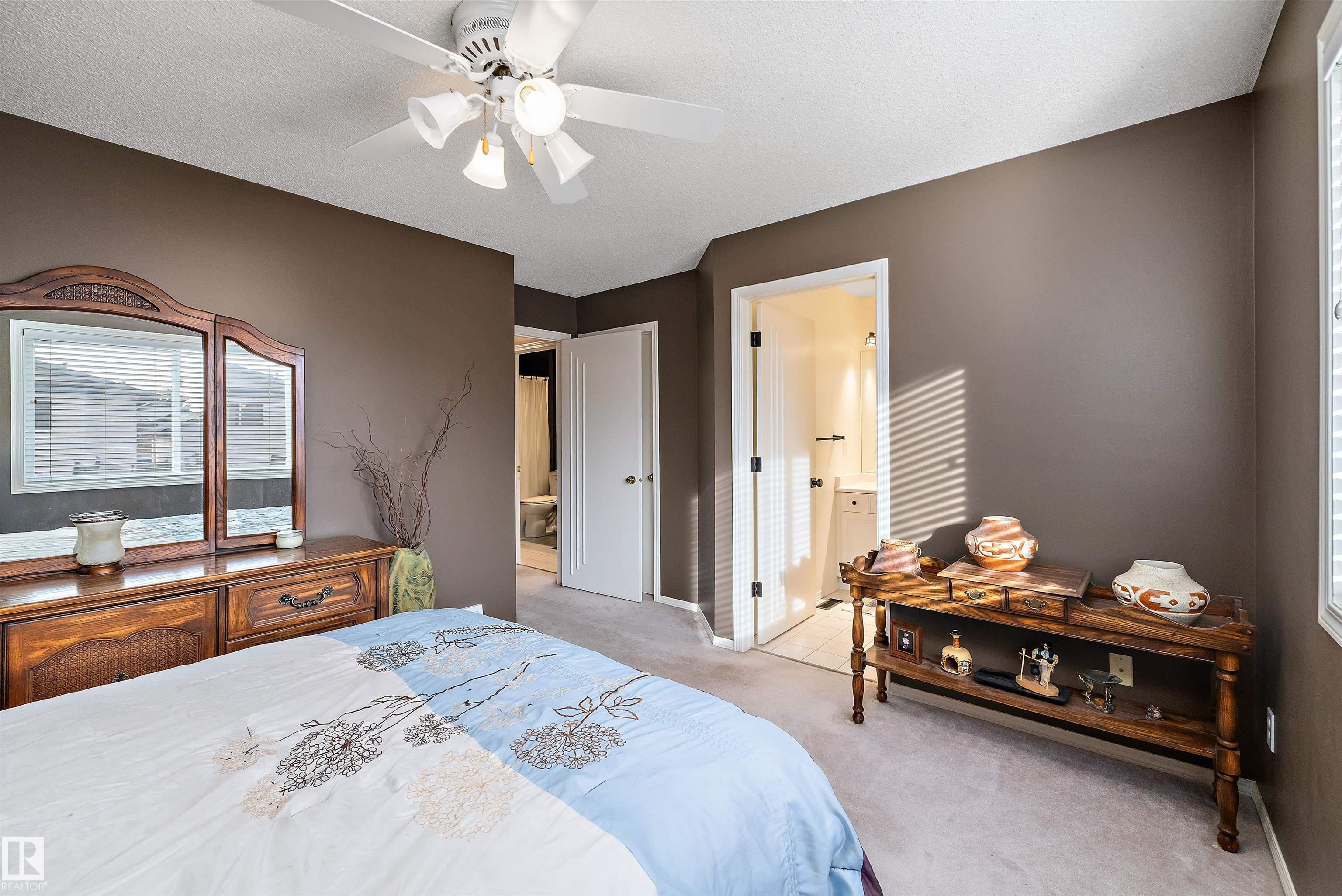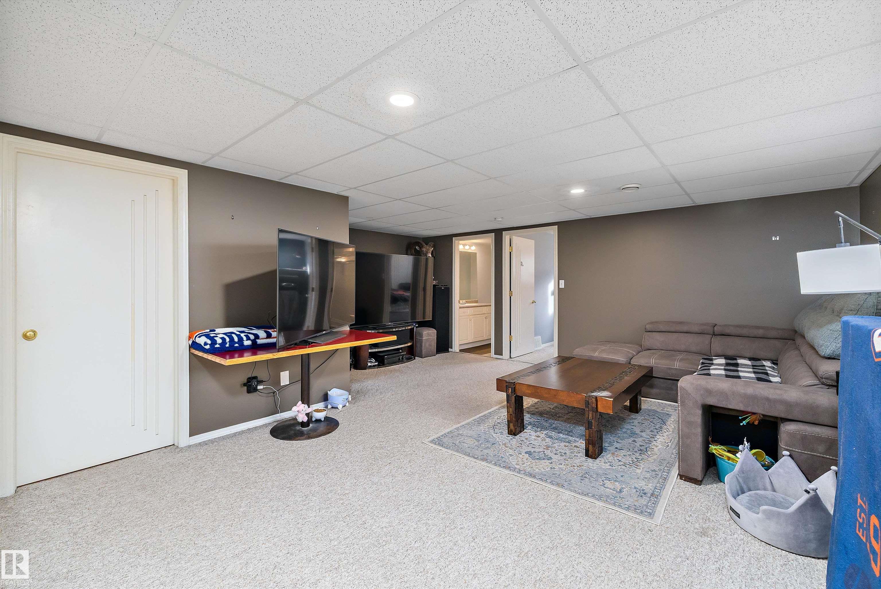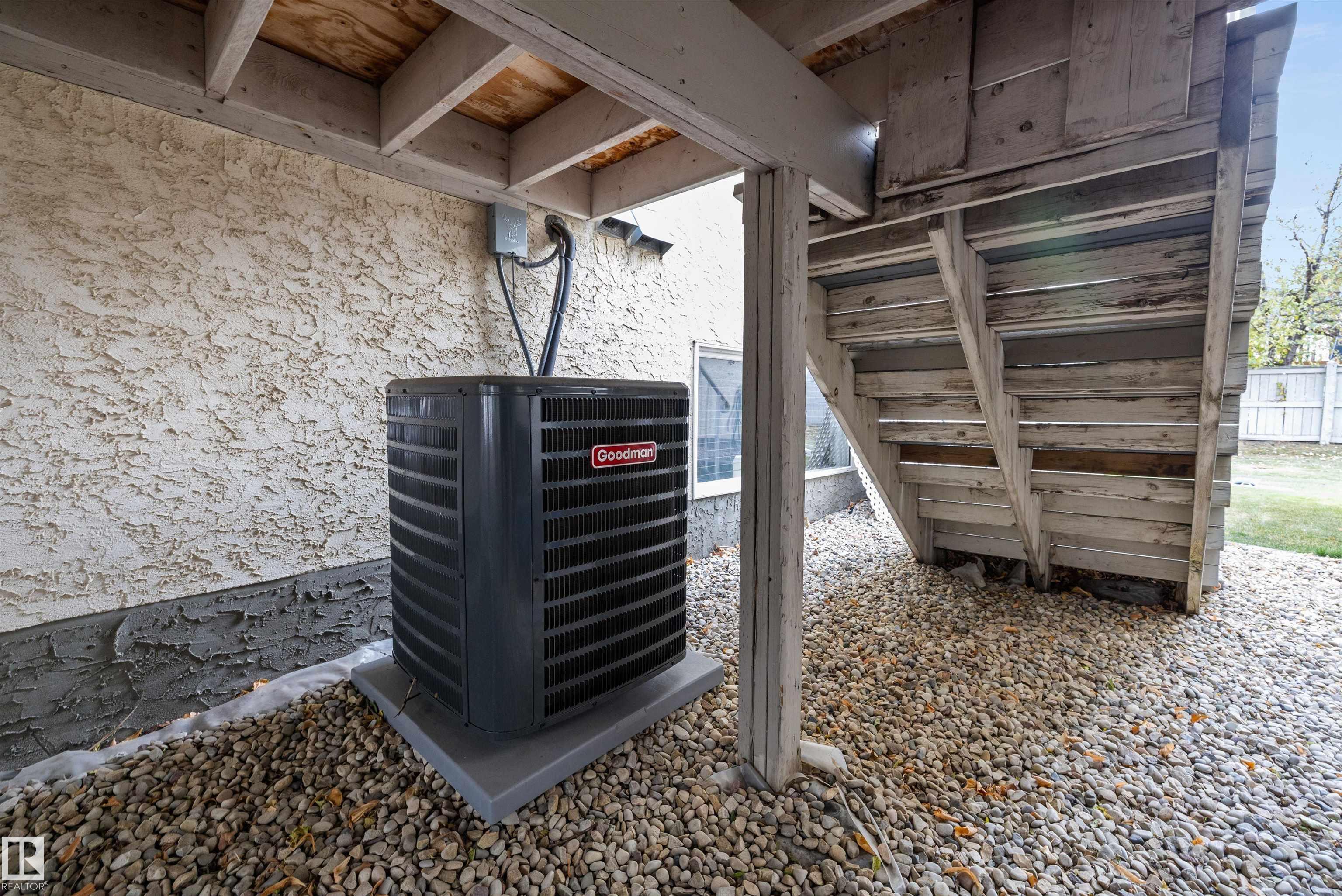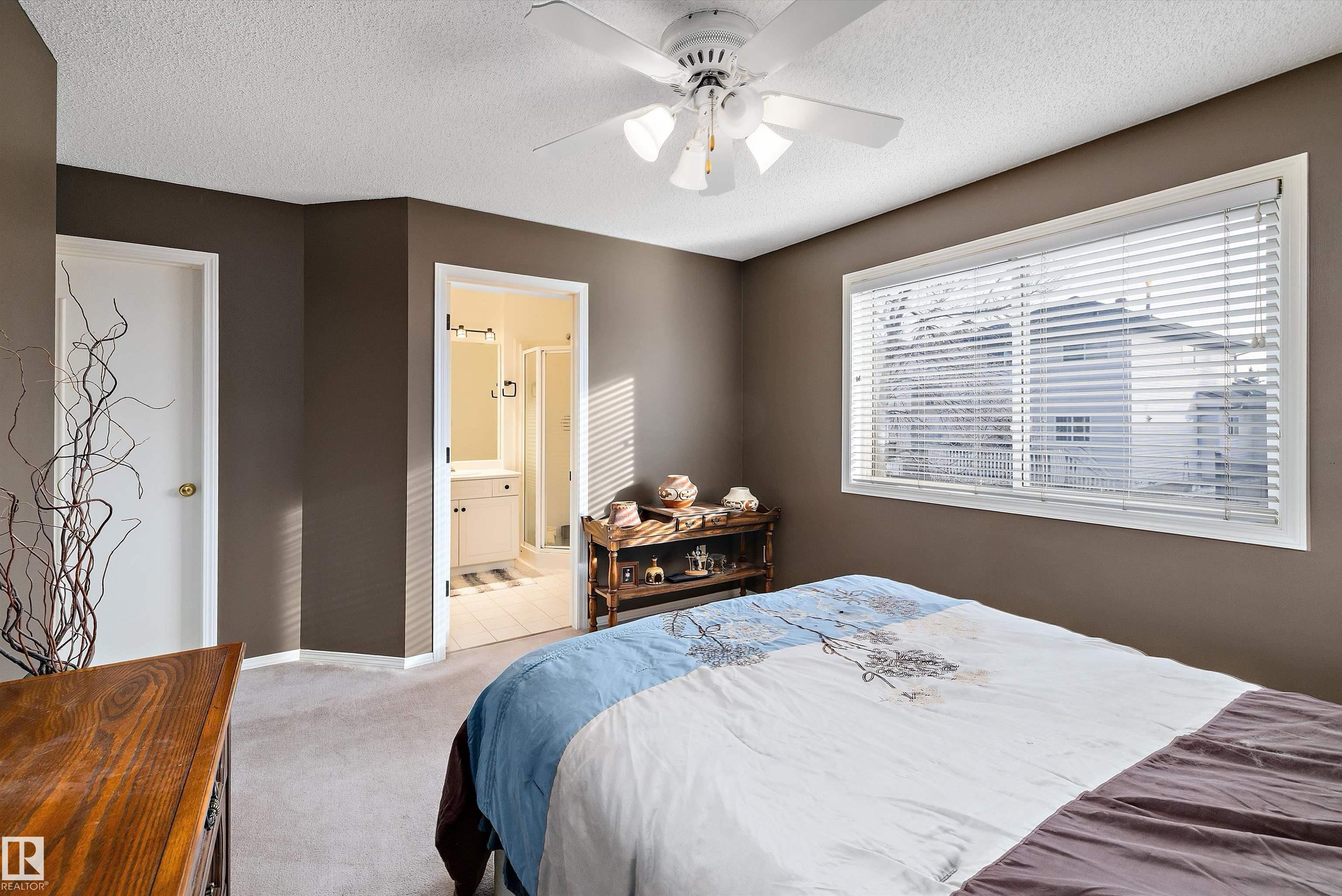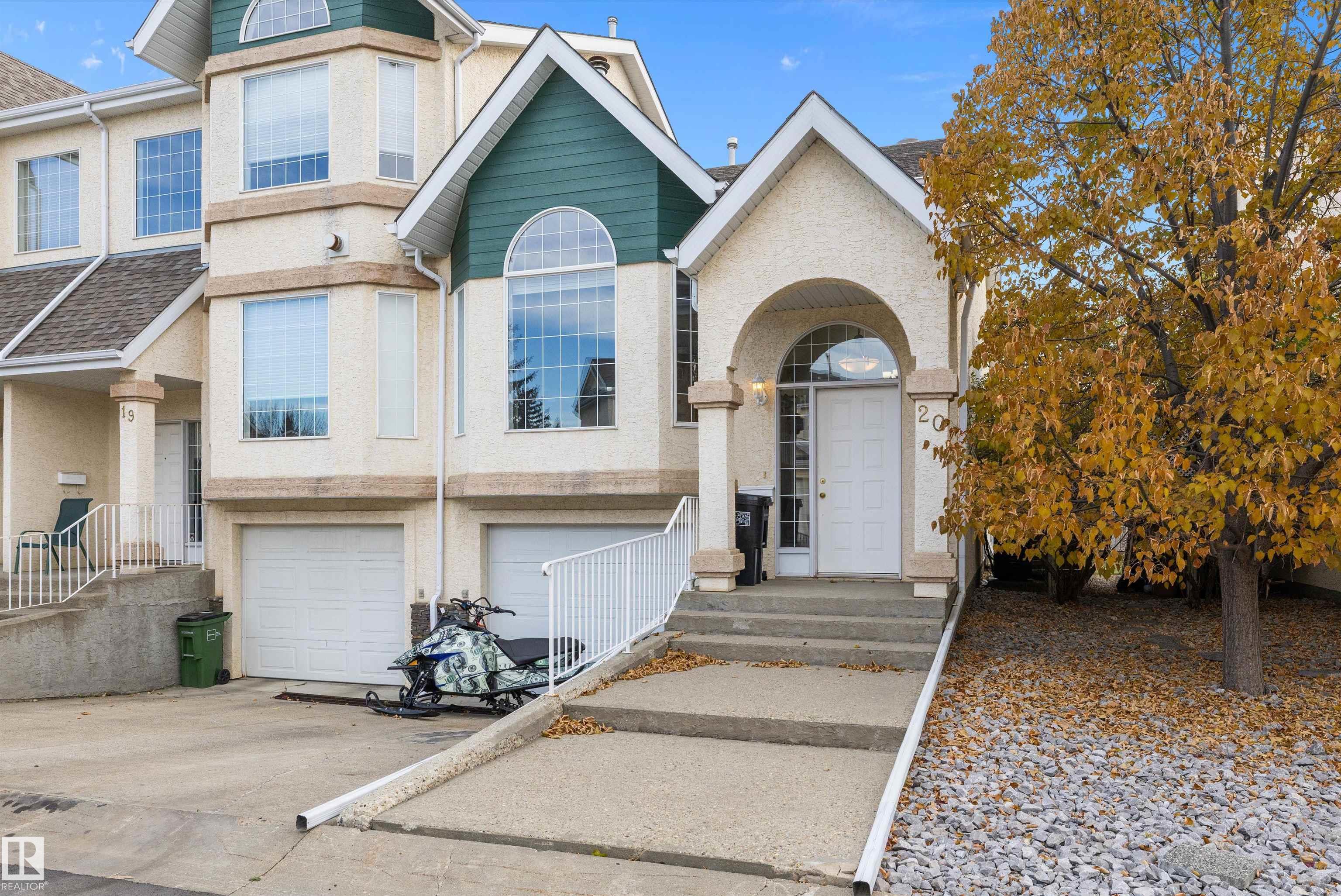 Welcome to the exclusive gated community of Village Green in desirable Twin Brooks. Nestled on a quiet street away from the hustle and bustle of the city, but still having access to public transit, shopping and schools. This stunning bi-level features soaring vaulted ceilings as you step into the home, showcasing the spacious open concept living. The livingroom has a cozy corner gas fireplace and large bay windows. The kitchen has expansive countertops with an eat up bar and newer dishwasher, fridge & microwave hood fan as well as a corner pantry. Functional dining space opens onto your private deck with access to your manicured lawn; maintained by the condo! The main floor has 2 bedrooms, 4 piece main bath and primary has ensuite & walkin closet. Basement has large windows, big family room, large 3rd bedroom and another full bathroom! Attached garage is perfect for winter! Also has A/C! The community is quiet & features greenspace.