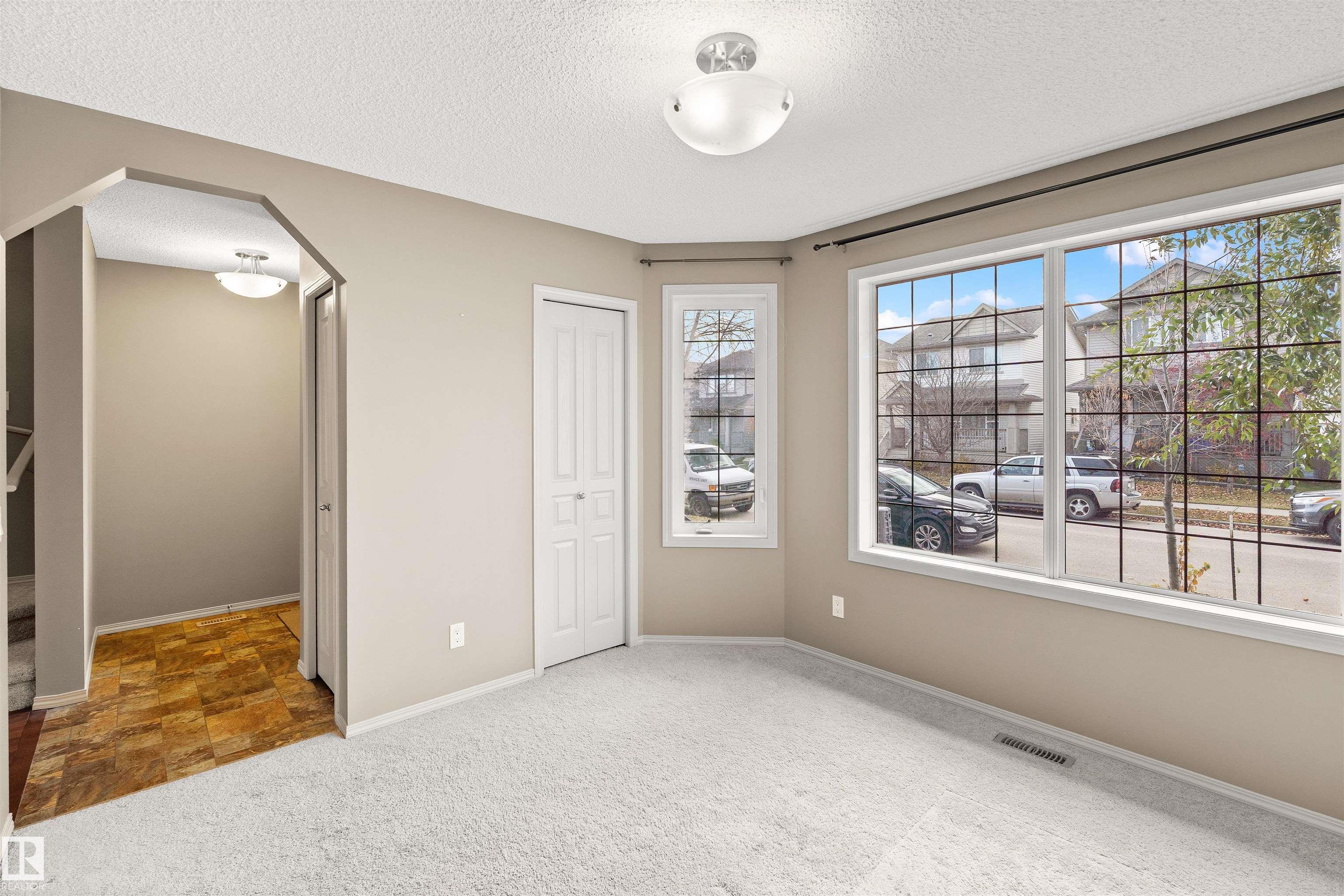 The perfect blend of comfort, functionality, and location. this beautiful home featuring 3 bedrooms, 2.5 bathrooms, plus a main-floor Den/Office with a closet that can easily be converted into a fourth bedroom, this home is ideal for growing families or those who value extra space for work or guests.Step inside to discover gleaming hardwood floors and open-concept main floor designed for both everyday living and entertaining. The kitchen features modern cabinetry extending to the ceiling, sleek finishes, and ample counter space. Upstairs, you'll find three bedrooms including a spacious primary suite with an ensuite and walk-in closet. The home also includes a large deck plus a double detached garage.Located in Webber Green, this home is steps away from the upcoming Recreation Centre and the new LRT station currently under construction, providing excellent future connectivity. Enjoy quick access to major HWYs, grocery stores, schools, and all amenities, with West Edmonton Mall just minutes away.