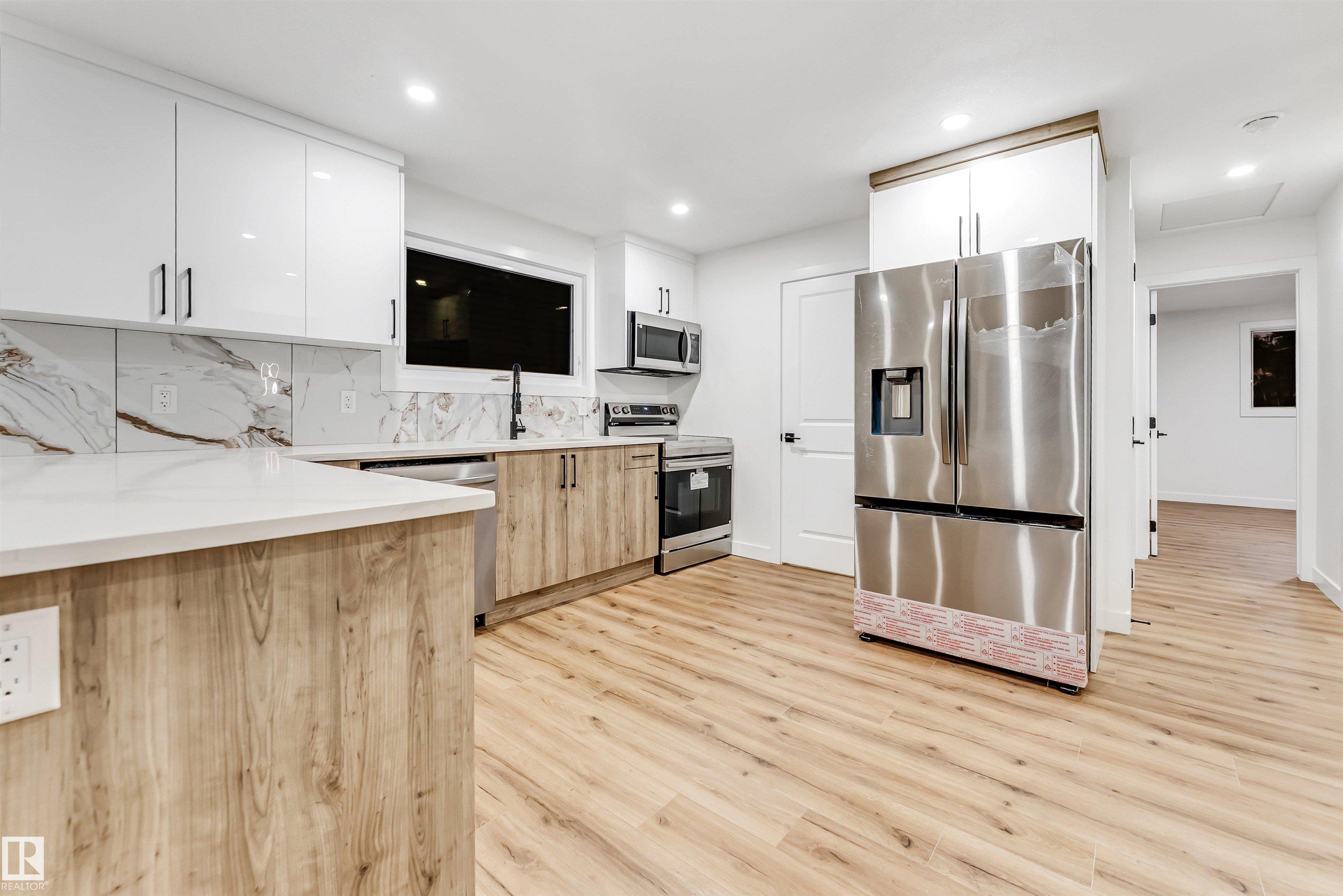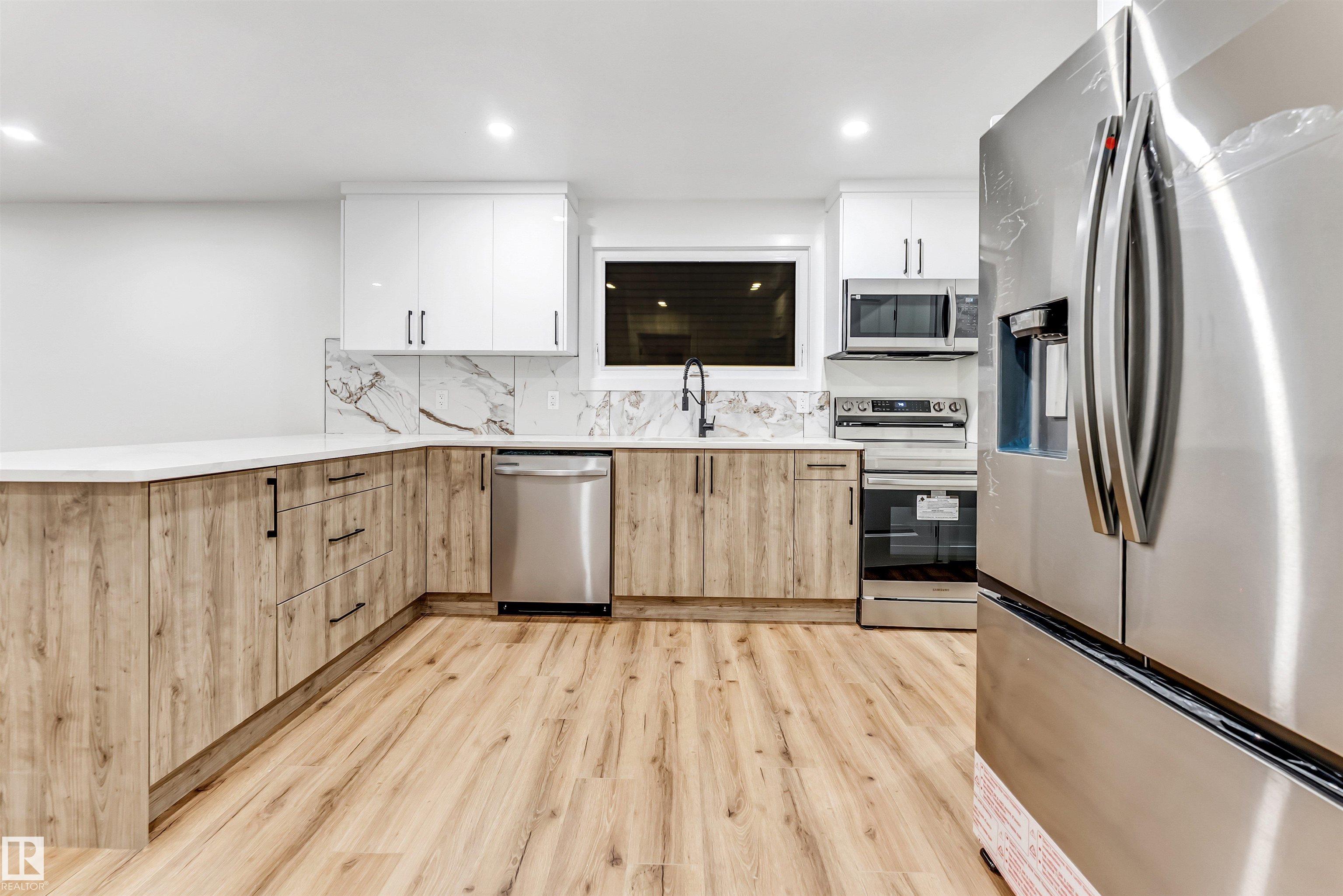 TWO BEDROOM FULL FINISHED BASEMENT | SECOND KITCHEN | SEPARATE ENTRY | SEPARATE LAUNDRY Welcome to Weinlos! This FULLY RENOVATED, FRESHLY PAINTED, CARPET-FREE HOME offers a bright and inviting main floor with huge windows that fill the home with natural sunlight, upper floor laundry, and a fully renovated kitchen with QUARTZ COUNTERTOPS and NEW CABINETS. The TWO-BEDROOM BASEMENT WITH SIDE ENTRY, SECOND KITCHEN, AND SEPARATE LAUNDRY is perfect for extended family. Additional upgrades include ALL NEW DOORS, A RECENTLY REPLACED HOT WATER TANK and SHINGLES , AND BRAND-NEW APPLIANCES (except the washer and dryer in the basement), ensuring peace of mind for years to come. Ideally located within walking distance to Kate Chegwin School, parks, and the Sikh temple, with easy access to Whitemud Drive and Anthony Henday, this home combines comfort, convenience, and quality. Some Pictures are Virtually Staged.