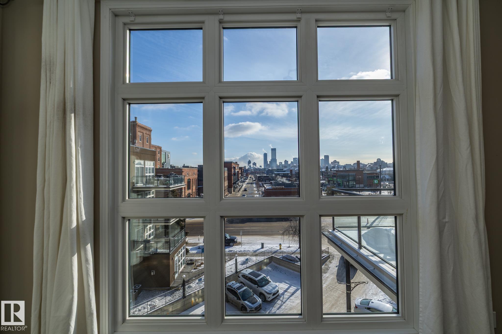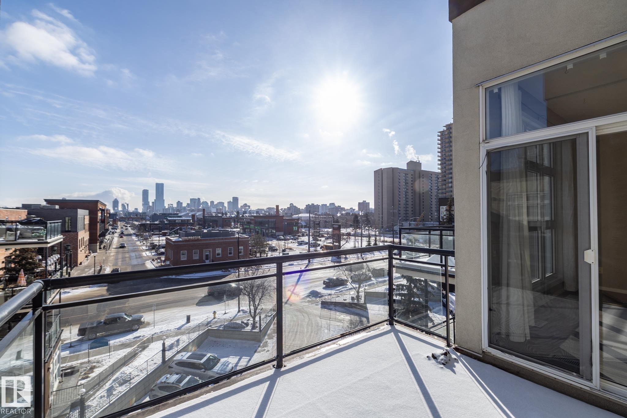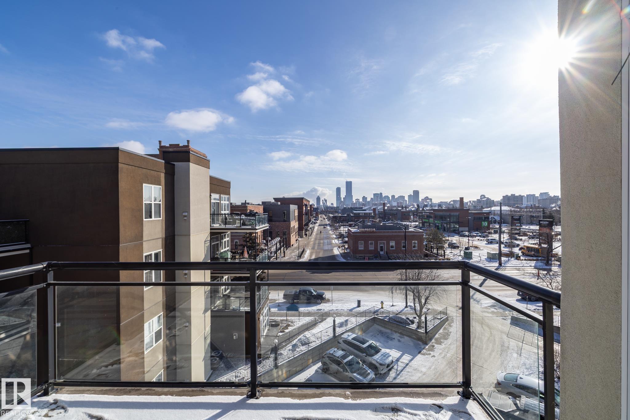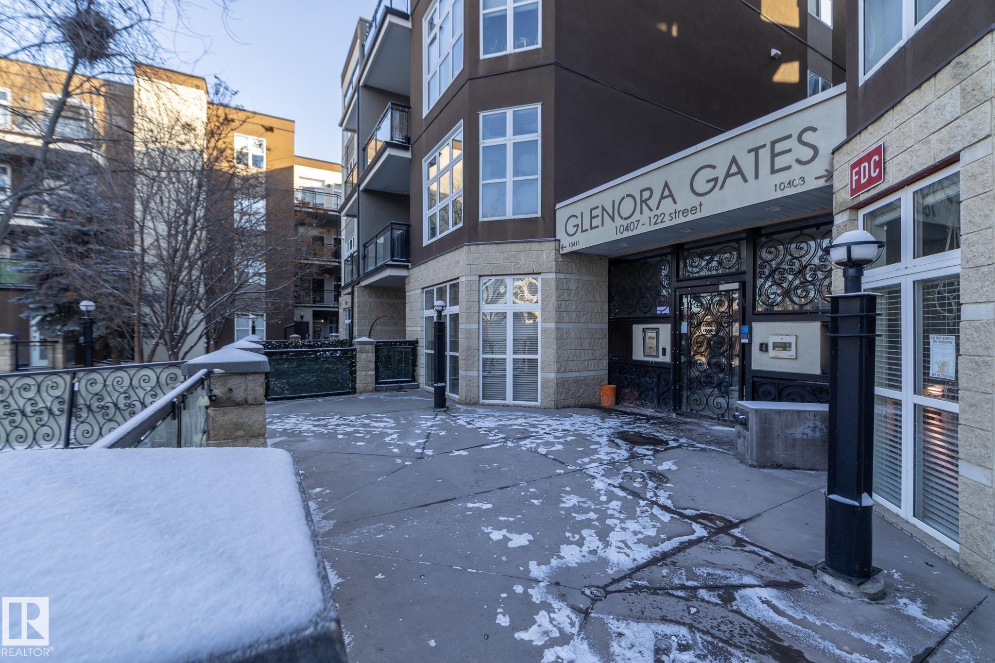 Beautiful TOP FLOOR condo in highly desirable Glenora Gates. This 2 bed 1 bath unit with SOARING 10FT CEILINGS is sure to impress! The spacious living room and kitchen/dining areas are filled with natural light from large windows showcasing STUNNING VIEWS OF DOWNTOWN. This home has laminate and tile flooring-no carpet! Stay cool with CENTRAL A/C and host company on the spacious balcony with a gas BBQ hookup. This unit also comes with in suite laundry, a huge 11 ft wide titled, heated, underground parking stall and an abundance of visitor parking. AMAZING LOCATION! Just steps from LRT, shopping and restaurants on 124th Street, and the iconic Brewery District. Minutes to Grant MacEwan, Rogers Place, Ice District and Edmonton's Beautiful River Valley trails. INCREDIBLE VALUE! This one wont last long!