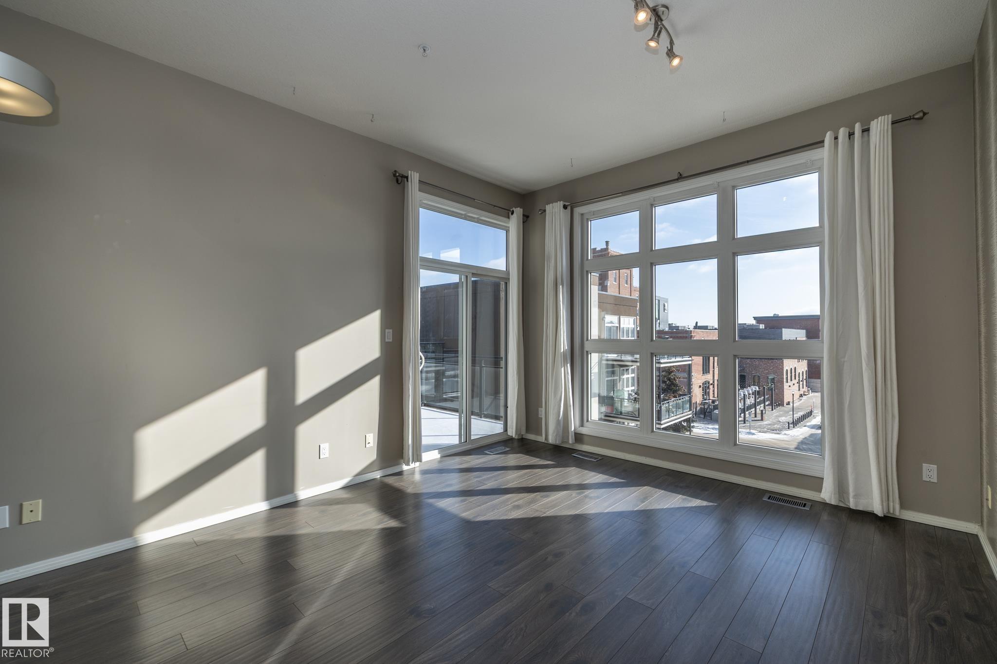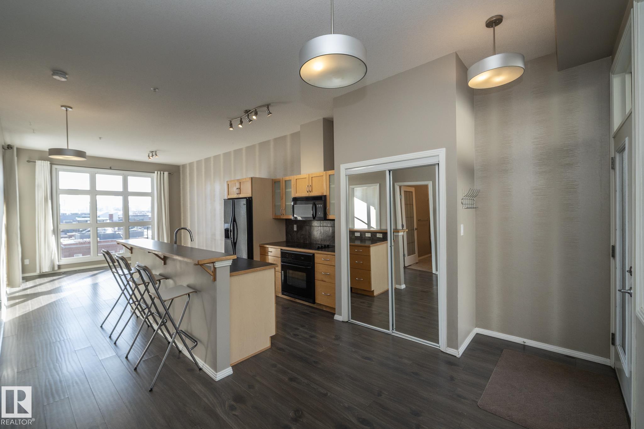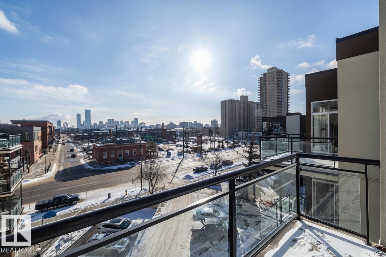 Beautiful TOP FLOOR condo in highly desirable Glenora Gates. This 2 bed 1 bath unit with SOARING 10FT CEILINGS is sure to impress! The spacious living room and kitchen/dining areas are filled with natural light from large windows showcasing STUNNING VIEWS OF DOWNTOWN. This home has laminate and tile flooring-no carpet! Stay cool with CENTRAL A/C and host company on the spacious balcony with a gas BBQ hookup. This unit also comes with in suite laundry, a huge 11 ft wide titled, heated, underground parking stall and an abundance of visitor parking. AMAZING LOCATION! Just steps from LRT, shopping and restaurants on 124th Street, and the iconic Brewery District. Minutes to Grant MacEwan, Rogers Place, Ice District and Edmonton's Beautiful River Valley trails. INCREDIBLE VALUE! This one wont last long!