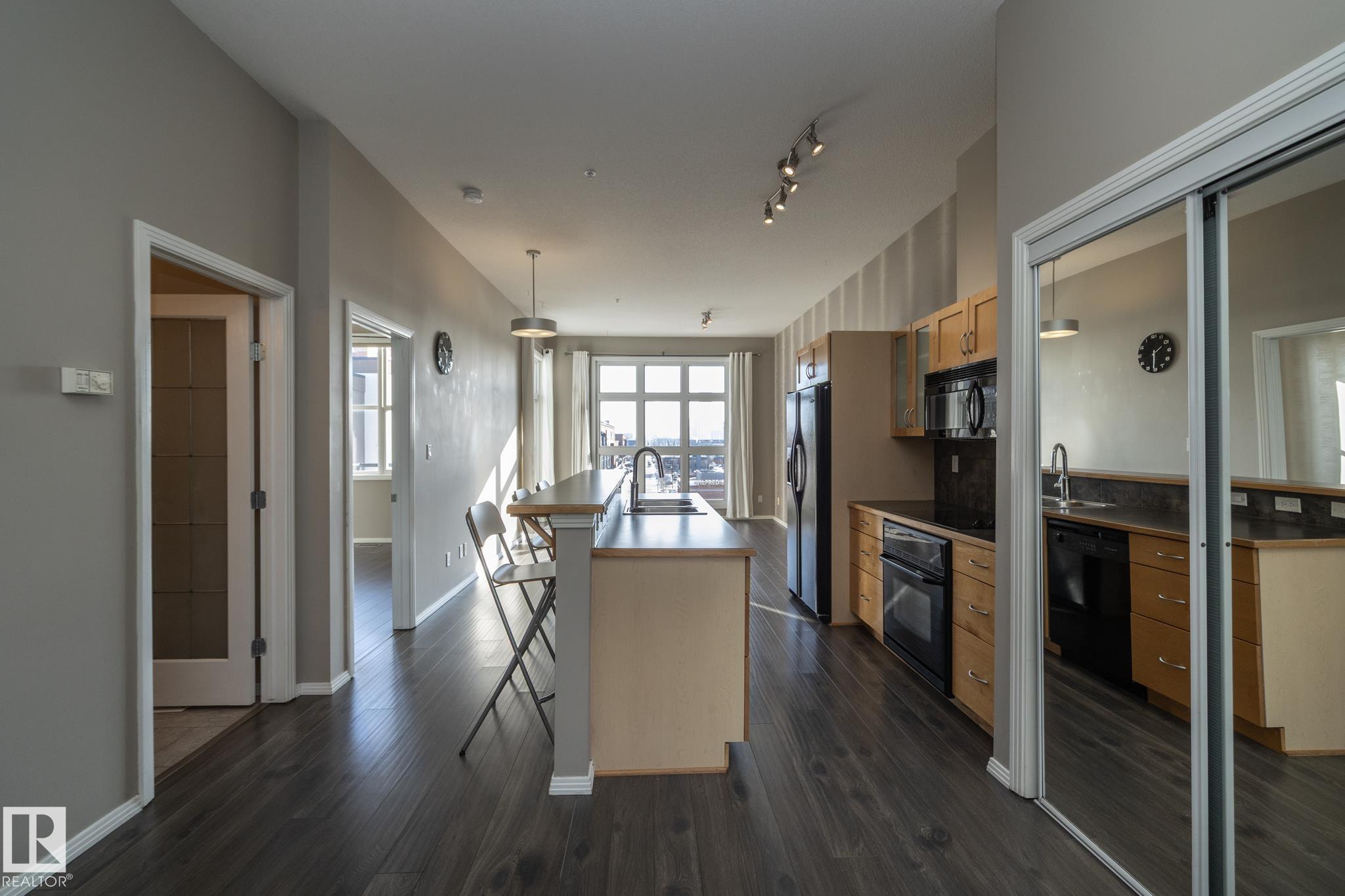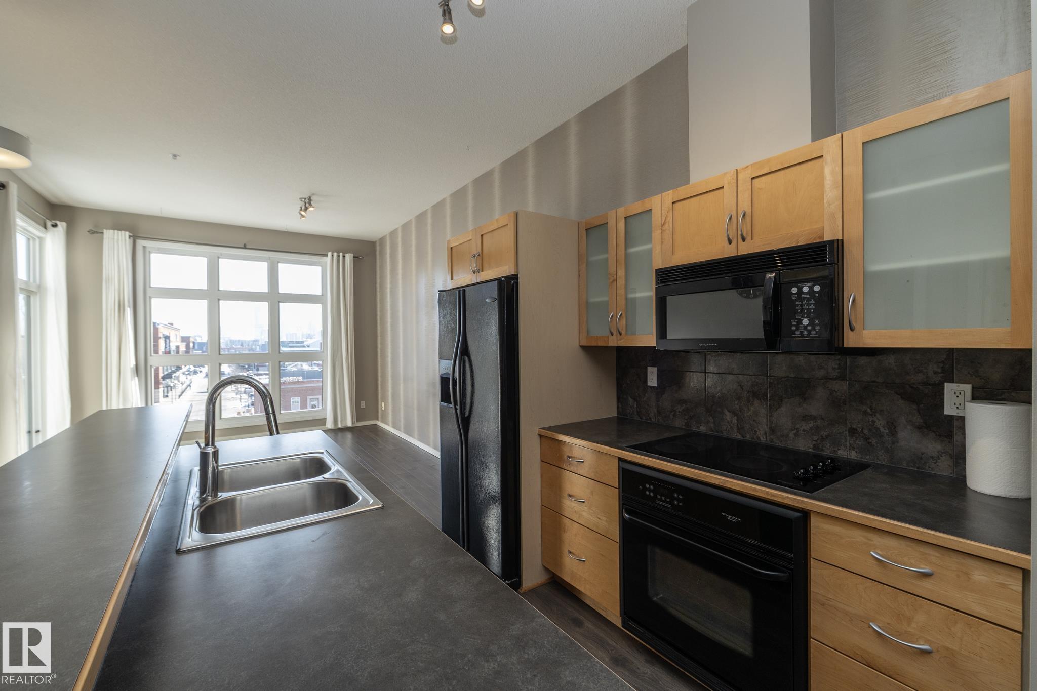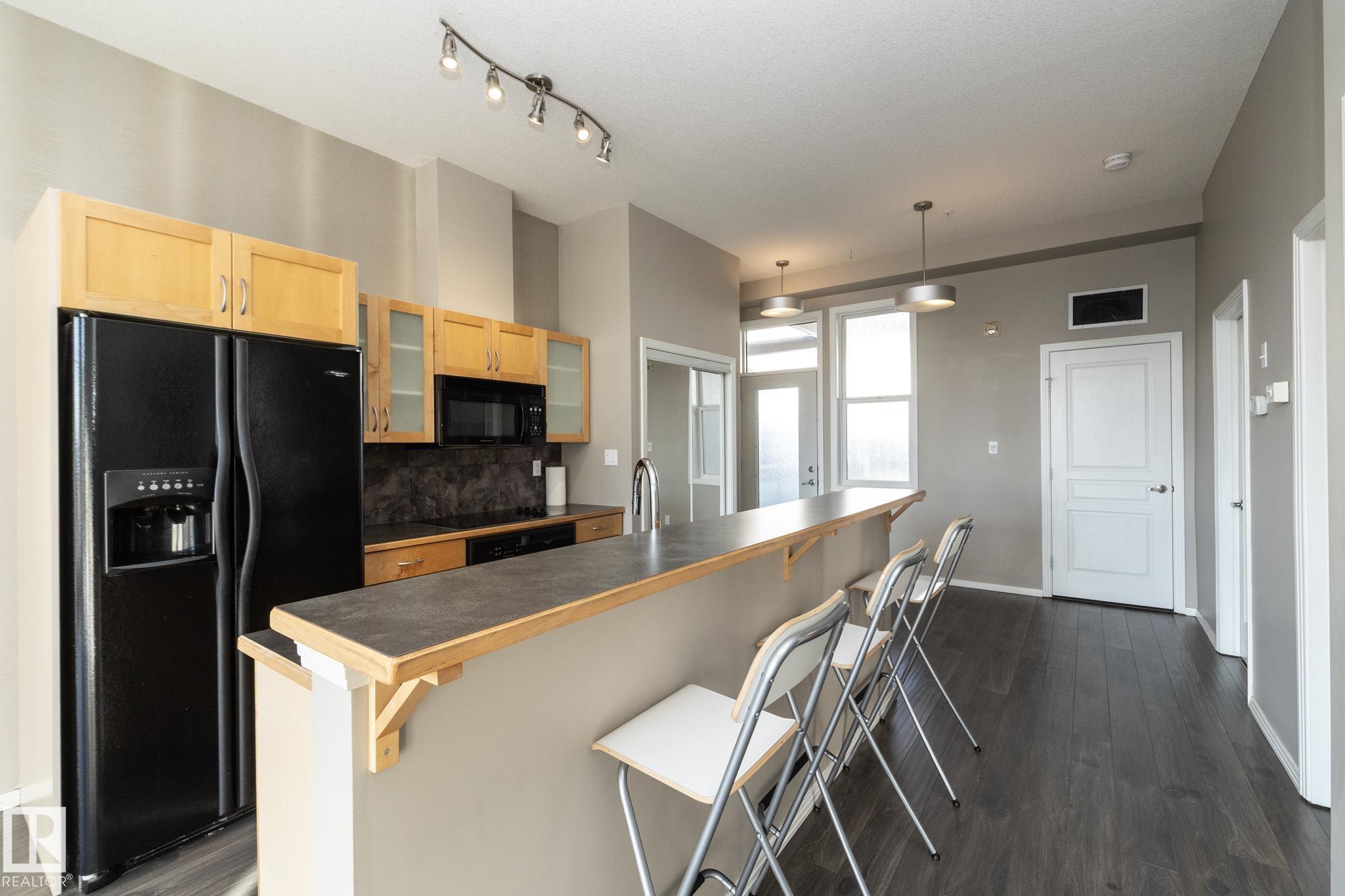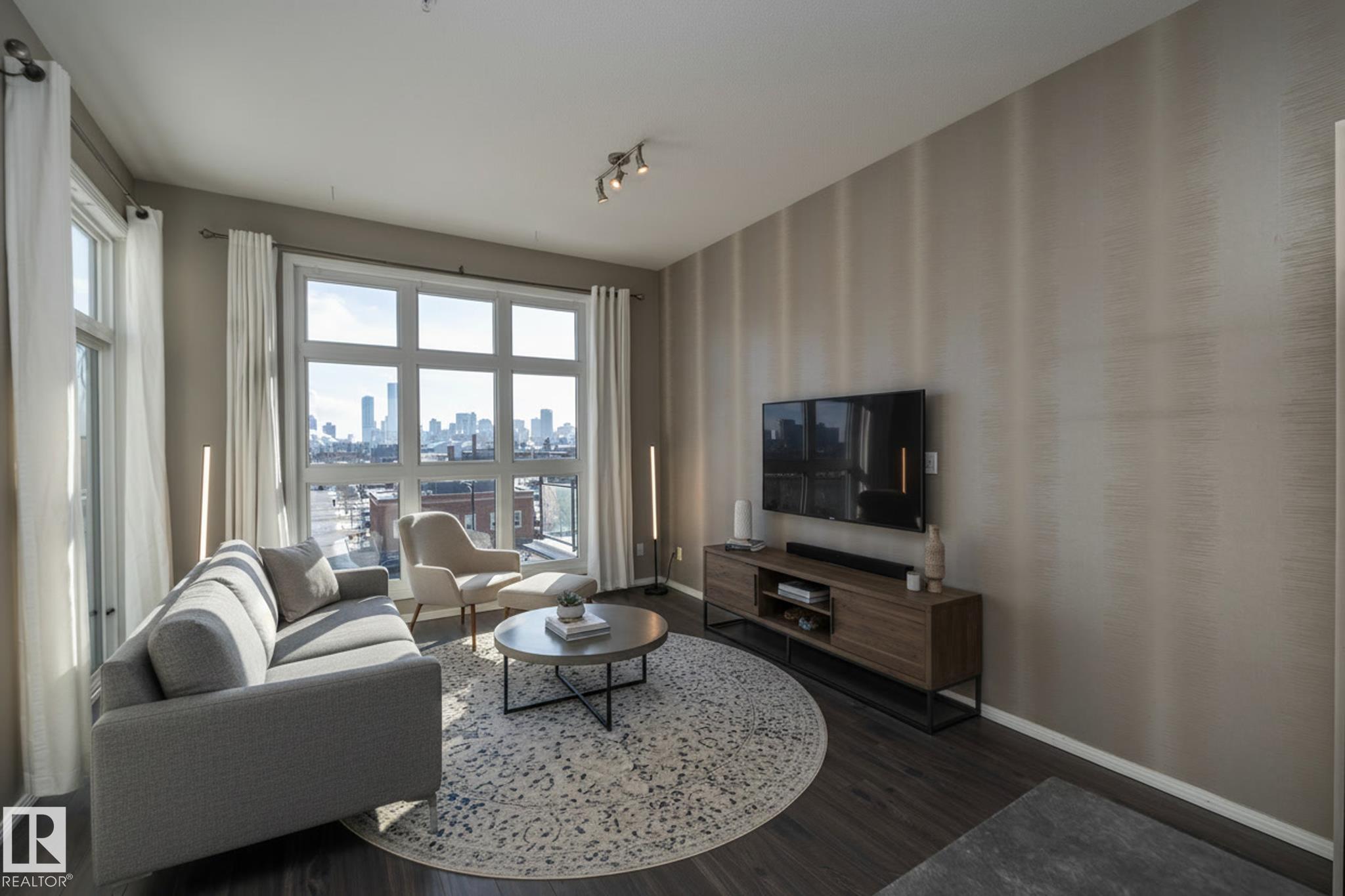 Beautiful TOP FLOOR condo in highly desirable Glenora Gates. This 2 bed 1 bath unit with SOARING 10FT CEILINGS is sure to impress! The spacious living room and kitchen/dining areas are filled with natural light from large windows showcasing STUNNING VIEWS OF DOWNTOWN. This home has laminate and tile flooring-no carpet! Stay cool with CENTRAL A/C and host company on the spacious balcony with a gas BBQ hookup. This unit also comes with in suite laundry, a huge 11 ft wide titled, heated, underground parking stall and an abundance of visitor parking. AMAZING LOCATION! Just steps from LRT, shopping and restaurants on 124th Street, and the iconic Brewery District. Minutes to Grant MacEwan, Rogers Place, Ice District and Edmonton's Beautiful River Valley trails. INCREDIBLE VALUE! This one wont last long!