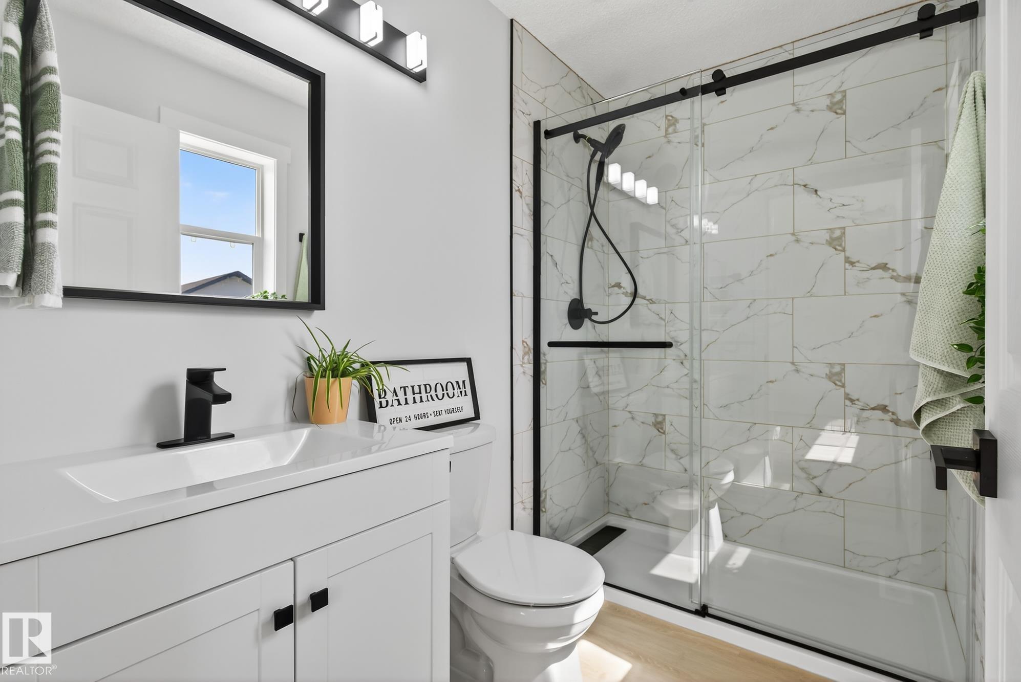 This beautifully renovated 1,500 sq ft home in Wildrose, Edmonton, features modern updates and a comfortable layout. New flooring throughout creates a sleek look, while the fully remodeled kitchen boasts contemporary cabinets, stylish countertops, and updated appliances--perfect for cooking and entertaining. The main floor includes a new bathroom, adding convenience and luxury. Upstairs, there are additional fully renovated bathrooms, offering extra comfort. The spacious bedrooms are filled with natural light, creating a bright living environment. The south-facing backyard is ideal for outdoor activities, gardening, or relaxing in the sun. Beautifully landscaped, it enhances curb appeal and provides a private outdoor oasis. The thoughtful upgrades and quality finishes make this home move-in-ready, blending functional living spaces with modern aesthetics. It offers a combination of comfort, style, and outdoor appeal, making it a highly desirable property.