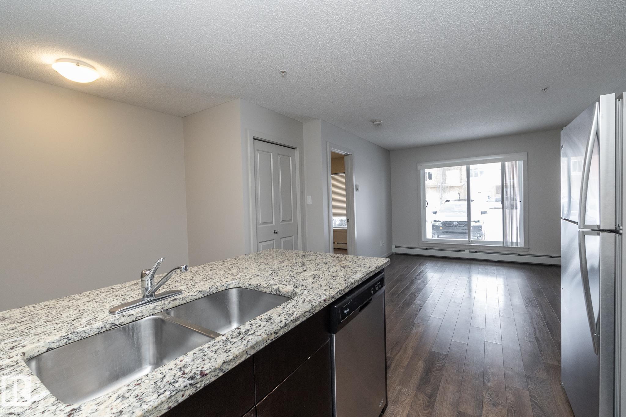 Welcome to this 2 BED, 2 BATH, 2 PARKING (1 UNDERGROUND & 1 SURFACE) main floor condo in the NEWEST BUILDING of Elements at Windermere!! This unit is in very good condition and has efficiently used the space it has with a terrific layout. Bedrooms are on either side of the unit, each with it's own bathroom and the kitchen and laundry room in the middle. Most of the unit has laminate flooring, and the kitchen has granite countertops. Also, the surface parking stall is right outside your walk out patio door. Windermere is one of Edmonton's most desirable neighbourhoos with all imaginable amenities right outside your door. Welcome home!!