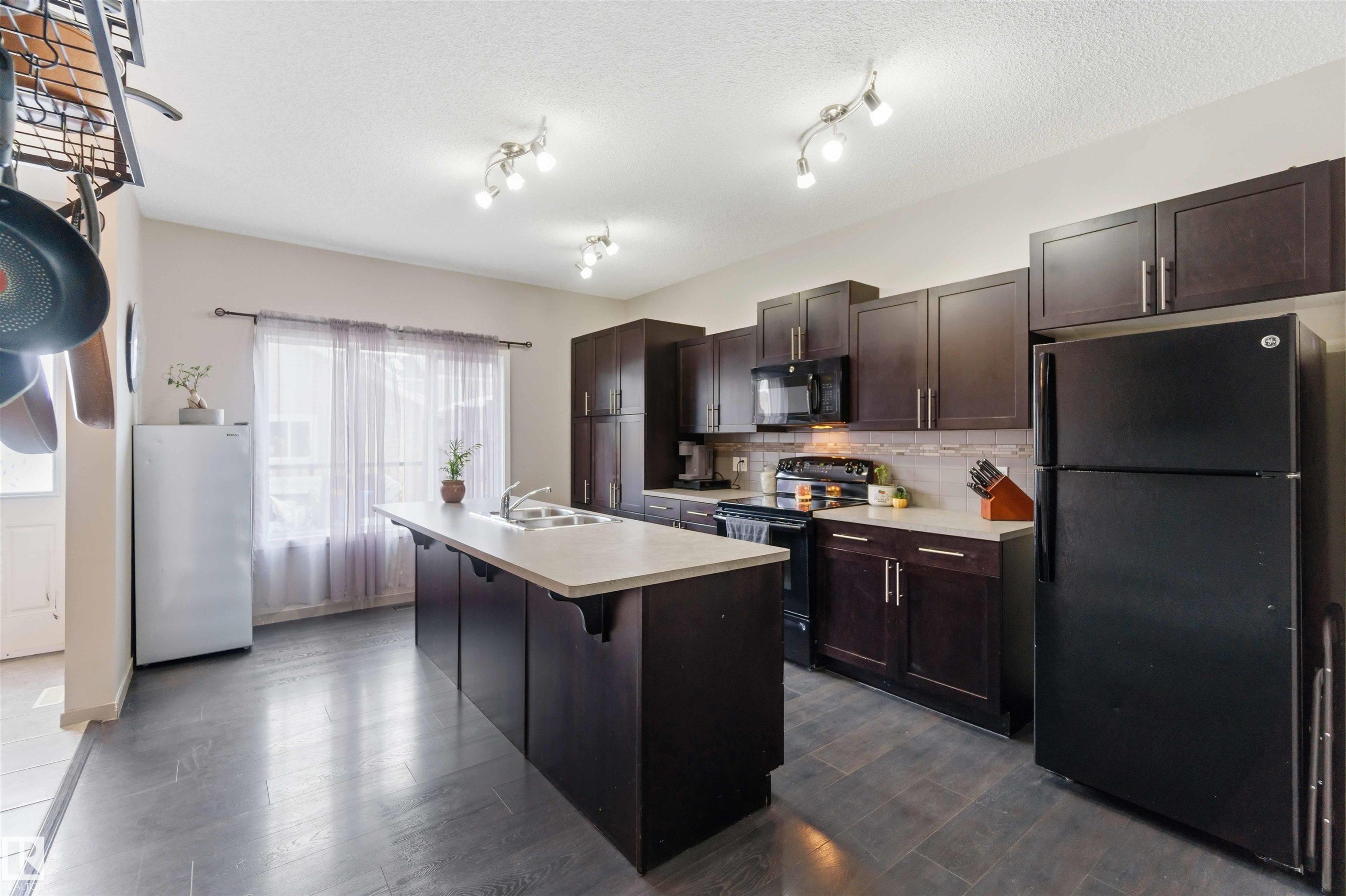 Welcome to Sienna, one of Fort Saskatchewan's most desirable family communities. This warm and welcoming 2-storey home offers the perfect blend of comfort and convenience starting with an inviting front porch to watch the sunset. The main floor features a bright living space that flows seamlessly into the dining area and spacious kitchen with island seating, generous storage, and backyard views ideal for everyday living and entertaining. Upstairs you'll find a naturally lit primary retreat with walk-in closet and full ensuite, plus two additional bedrooms, a full bath, and upper-floor laundry. Step outside to enjoy your new composite deck (2024) for morning coffee or evening BBQs with a convenient gas line. The oversized, heated double garage (2024) is perfect for Alberta winters, projects, or extra storage. There's even an enclosed dog run for your furry family members. Located just minutes to schools, parks, trails, shopping, restaurants, and the hospital. Everything your family needs is right here!