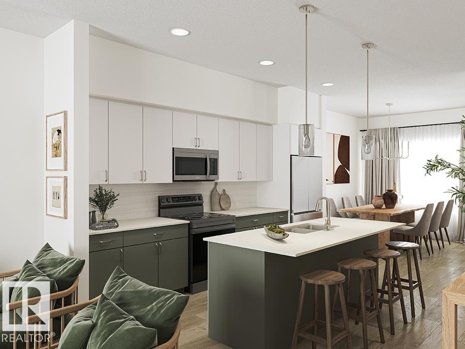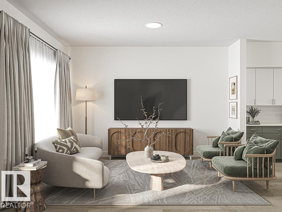 Beautifully crafted 2-storey home by Sterling Homes, blending modern style with practical living. The main floor features 9' ceilings, luxury vinyl plank flooring, and a bright open-concept layout connecting the great room, dining area, and kitchen. The kitchen offers quartz countertops, a central island with eating ledge, and generous pantry storage. Large front and rear windows bring in plenty of natural light, creating a warm and inviting space. A convenient 2-piece powder room and backyard access with parking pad complete the main level. Upstairs features a spacious loft, three bedrooms, and a primary suite with walk-in closet and private 3-piece ensuite. Upper-floor laundry adds everyday convenience. Basement rough-in plumbing and a separate side entrance provide excellent future development potential. Option to add a detached double garage for added parking and storage.