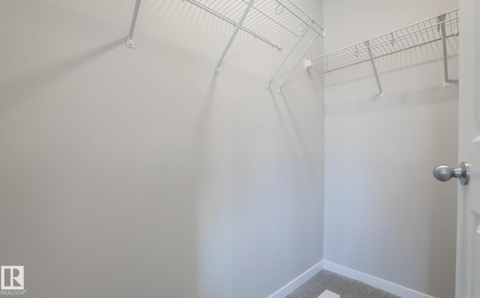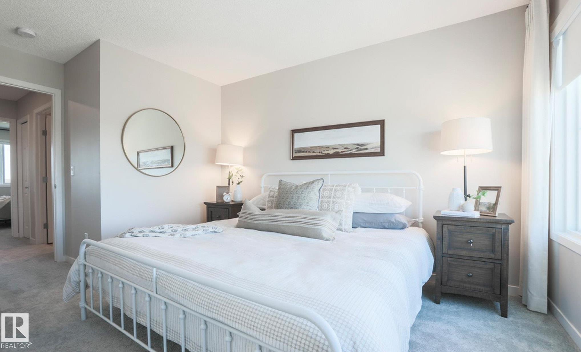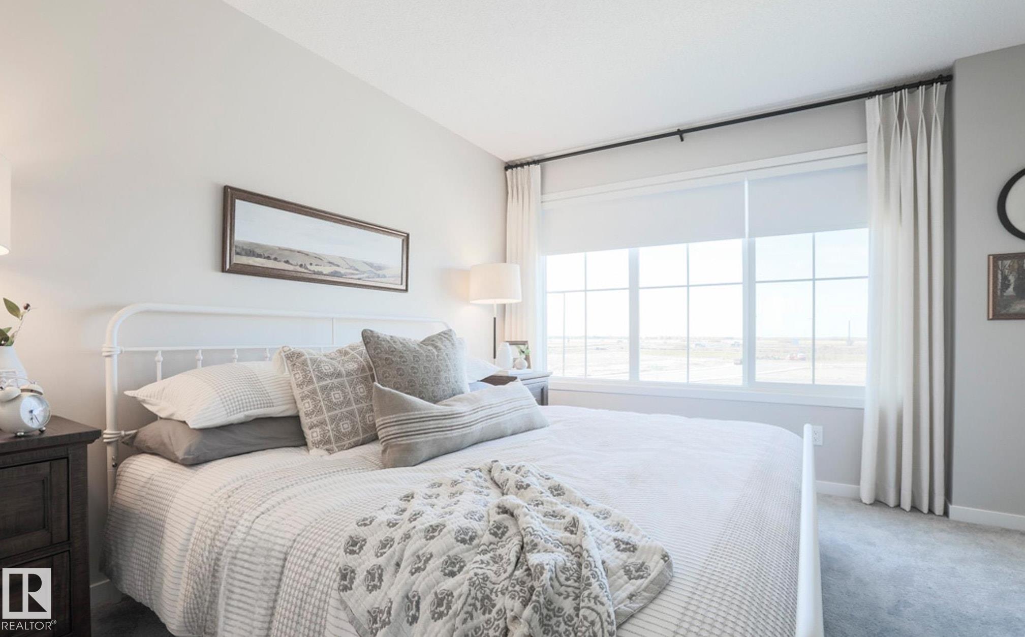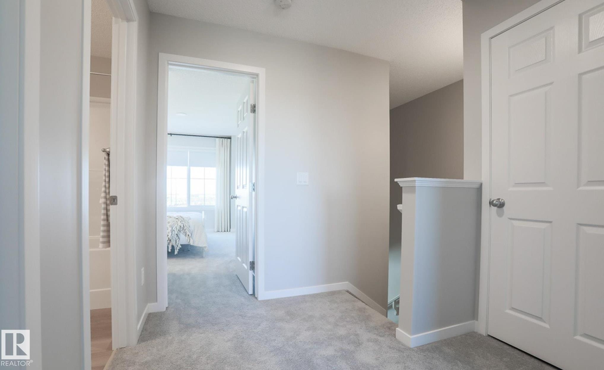 Built by Sterling Homes, this stellar home features Luxury Vinyl Plank flooring that creates a warm, inviting feel throughout the main floor. A welcoming foyer with a spacious walk-in coat closet leads into a bright great room, filled with natural light from a large front window. The open layout flows seamlessly into the dining area and into a well-designed U-shaped kitchen featuring a peninsula island with a flush eating ledge, pendant lighting, quartz countertops, a Silgranit undermount sink, and an over-the-range microwave. Ample Thermofoil cabinetry with soft-close doors and a generous pantry provide excellent storage. At the rear, you'll find an additional closet, a convenient half-bath, and access to the backyard with a parking pad and optional detached double garage. Upstairs offers a primary suite with a walk-in closet and a 3-piece ensuite, plus two bedrooms, a full bath, and a laundry closet. Includes brushed nickel fixtures, side entrance, and basement rough-ins.