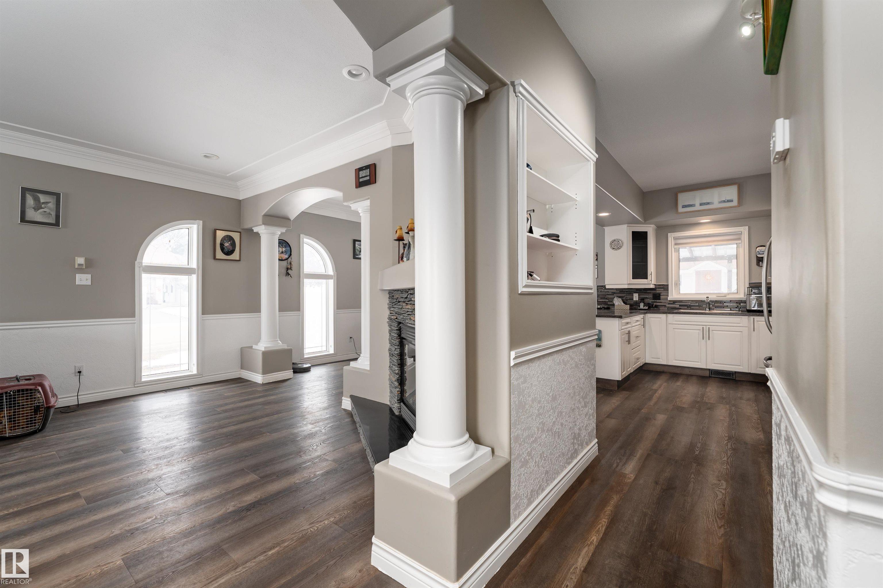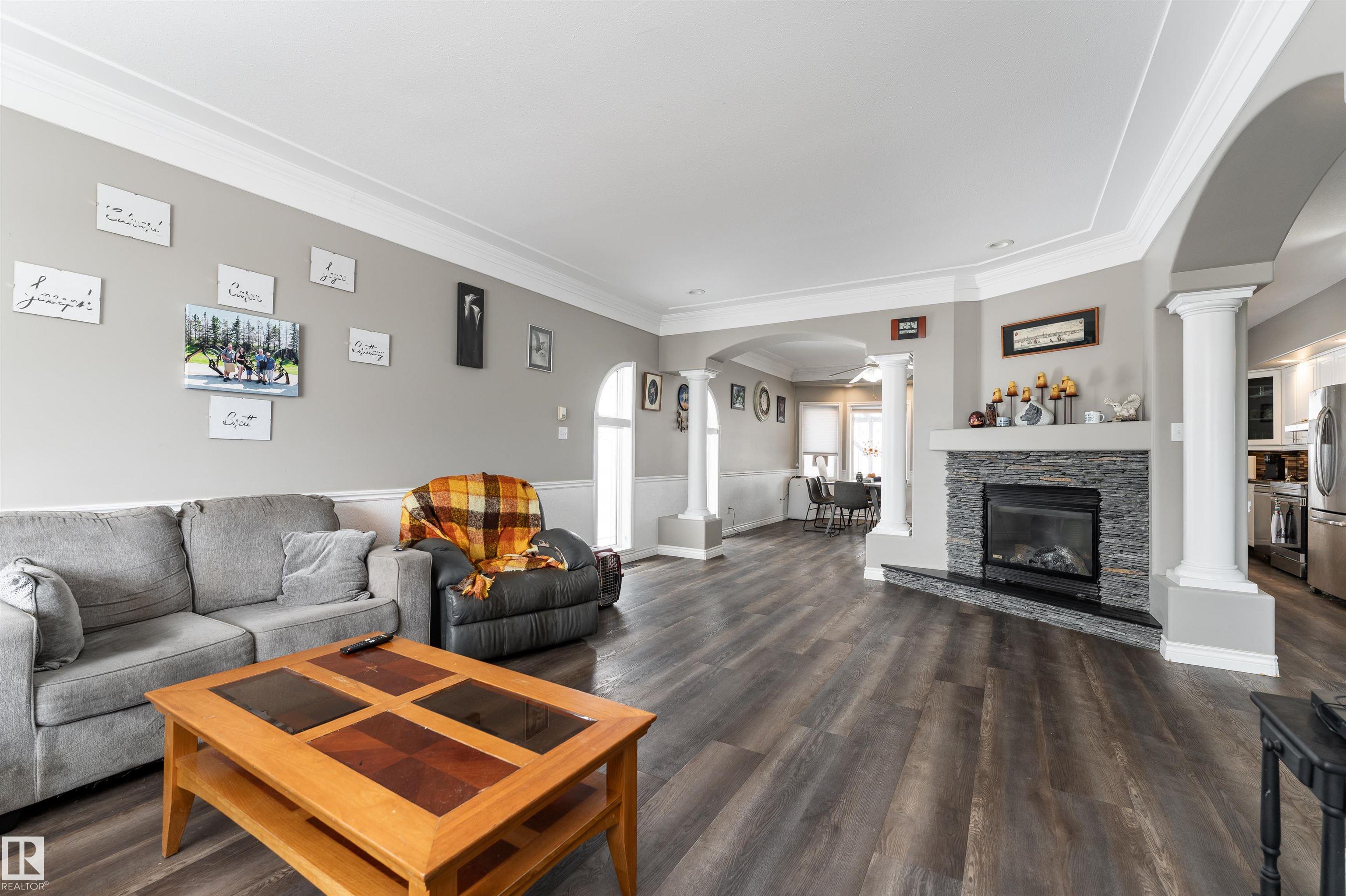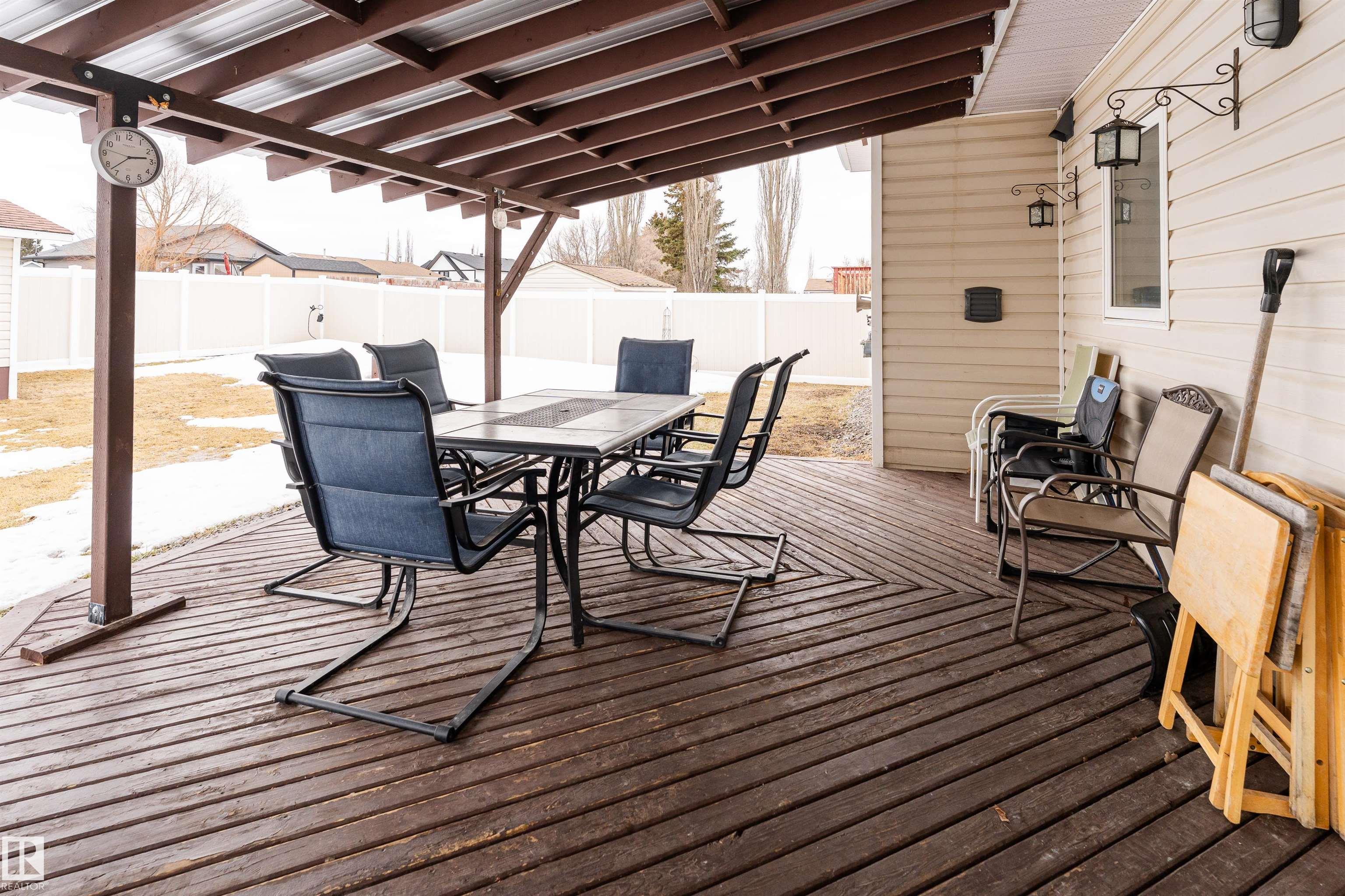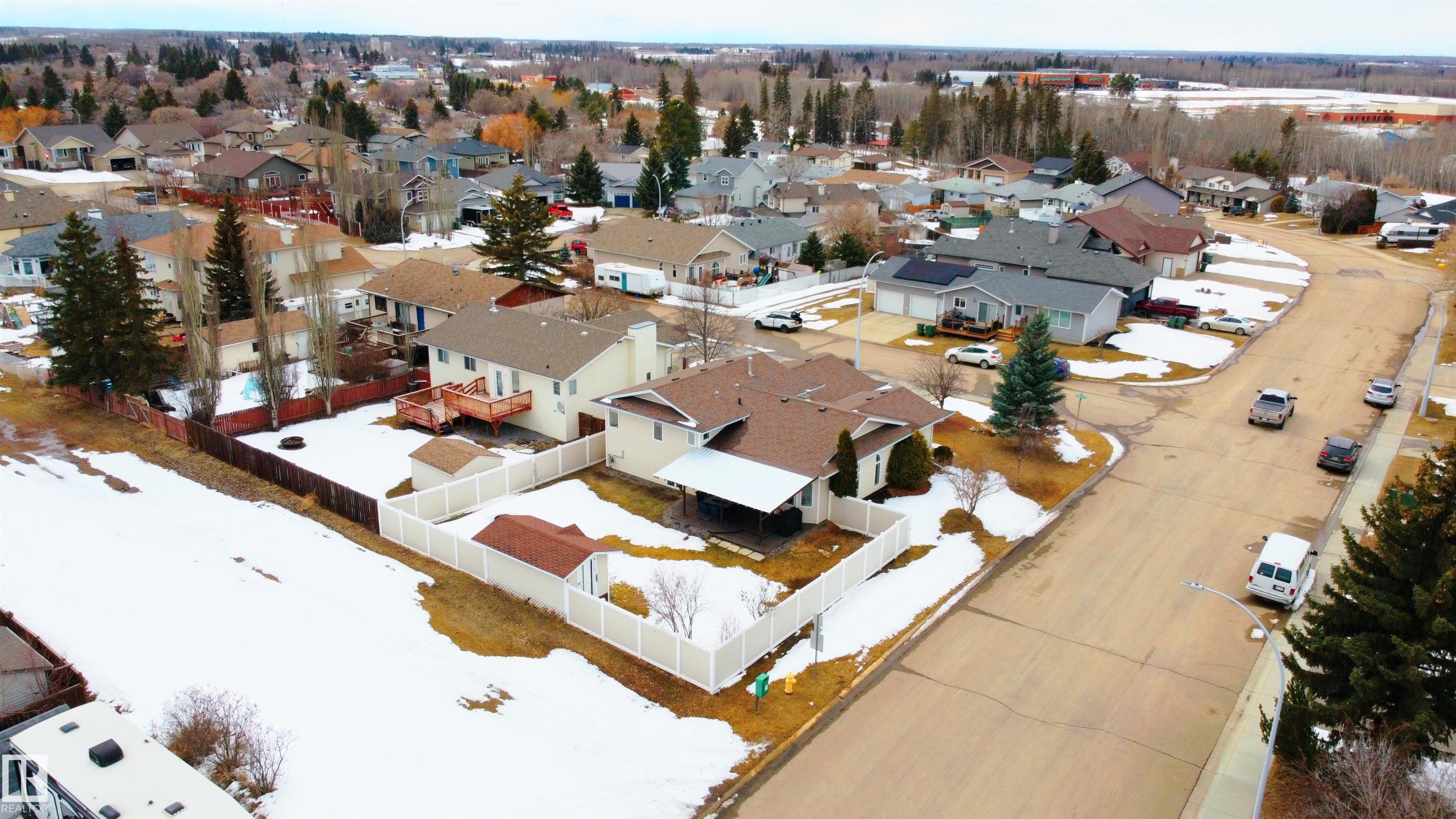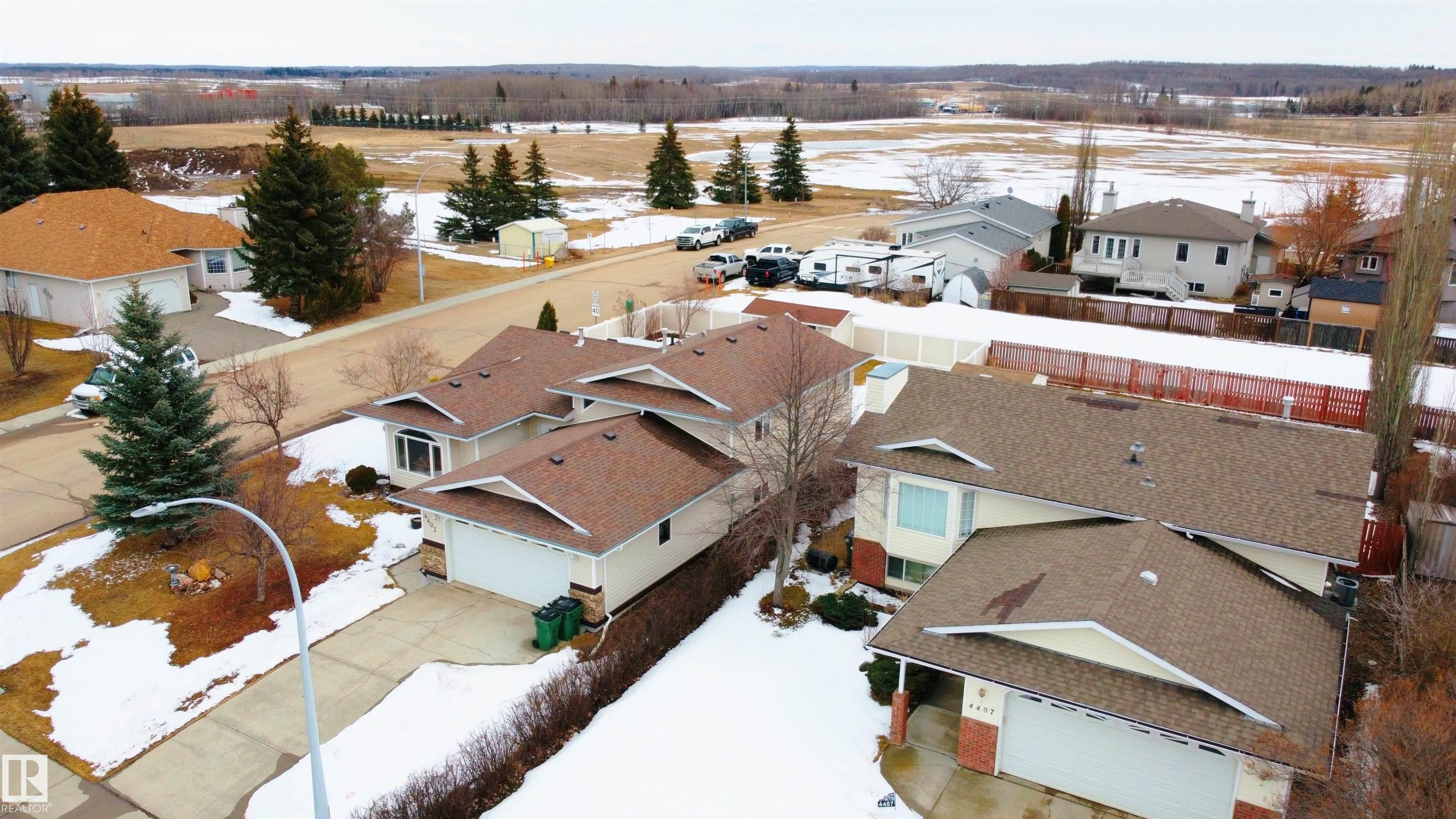 Beautifully maintained home in the quiet community of Onoway. This 3-Bed, 3-Bath property sits on a spacious corner lot and features a fully fenced and landscaped yard. The entry welcomes you into a bright living room complete with a cozy fireplace. The large dining area flows seamlessly into the kitchen, with a new dishwasher and stove (2025). Upstairs, you'll find two well-sized bedrooms, including the primary suite, which offers a 4pc ensuite with a jetted tub. The basement provides a comfortable additional living space, complete with a third bedroom and a 4pc bath. Enjoy the added comfort of in-floor heating in both the basement and the double attached garage. Step outside to your private backyard oasis featuring a deck, garden space, and a convenient storage shed--ideal for summer enjoyment. Located just 5mins from Salters Lake and 15mins from Alberta Beach, this home is also close to schools, shopping, and the arena, with an easy commute to Edmonton.