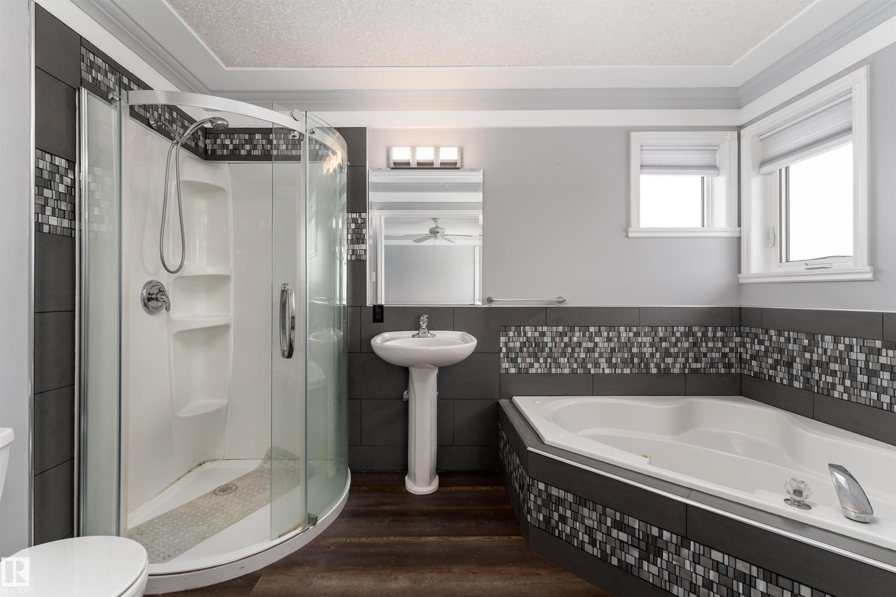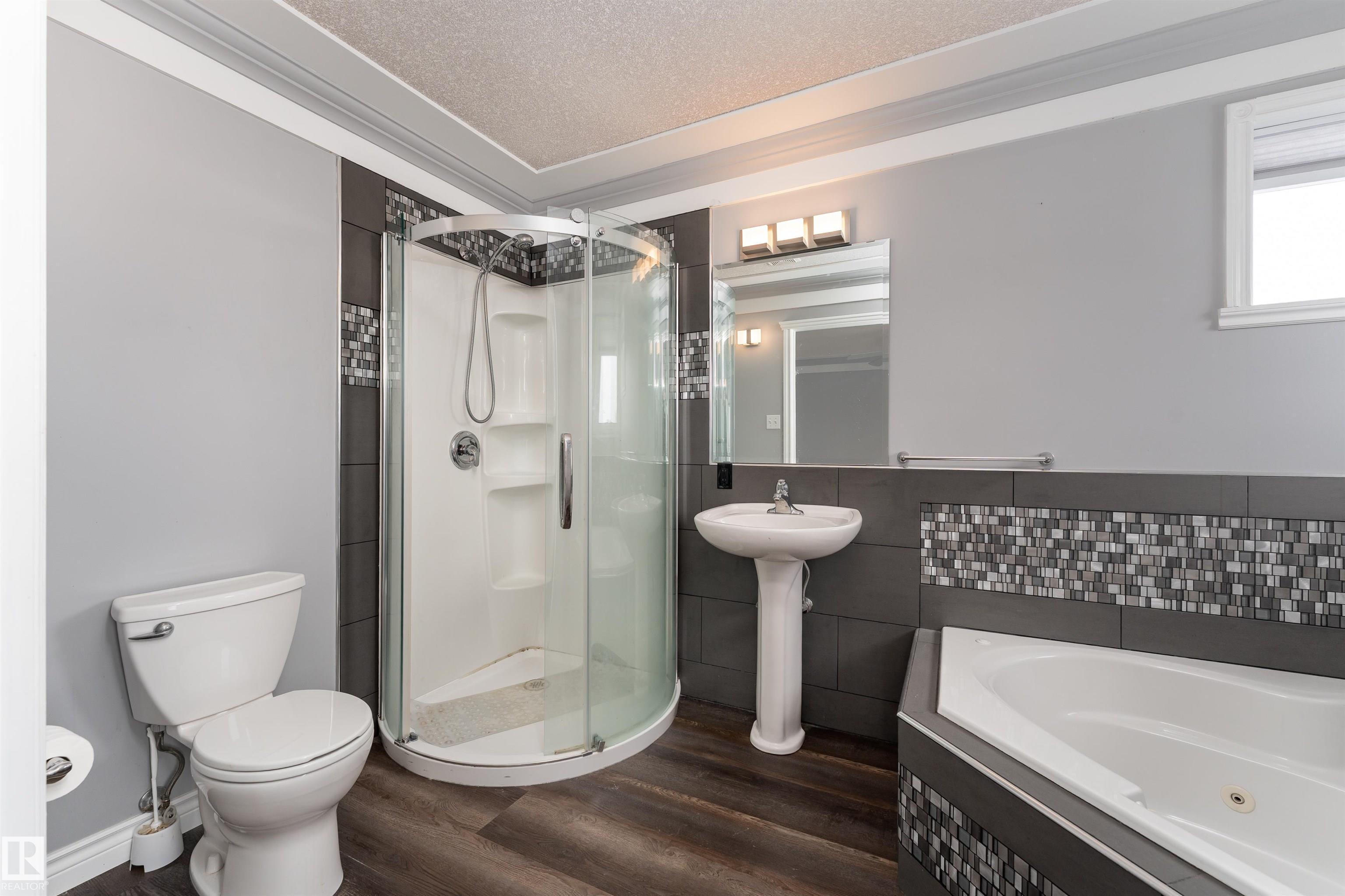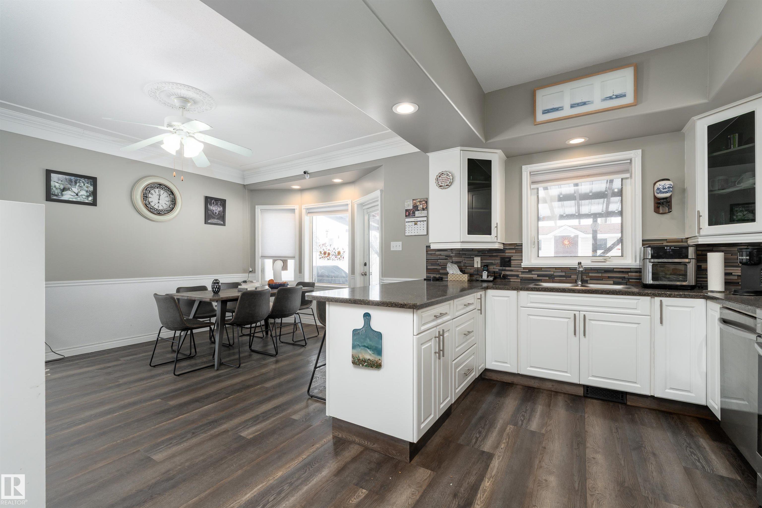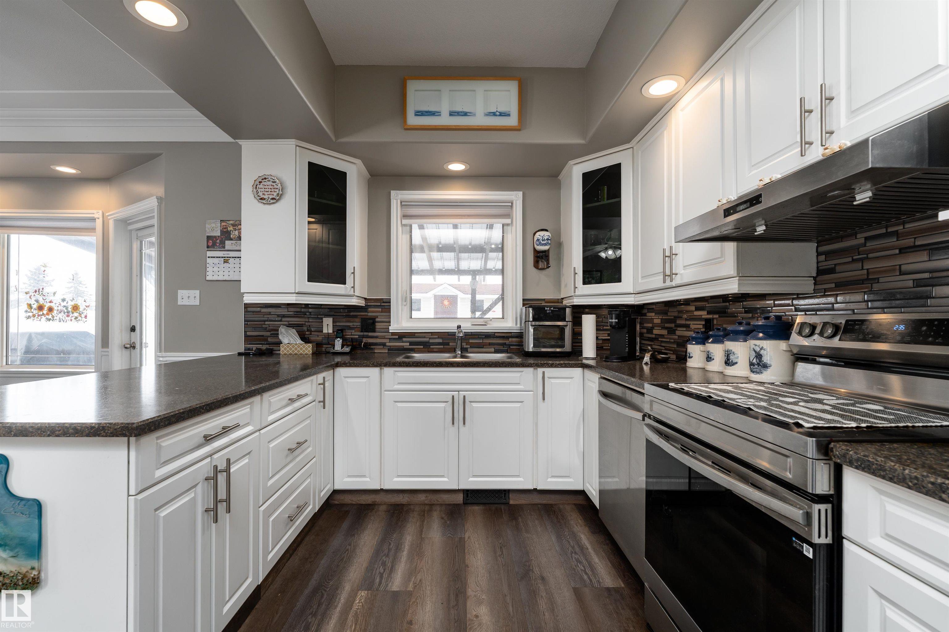 Beautifully maintained home in the quiet community of Onoway. This 3-Bed, 3-Bath property sits on a spacious corner lot and features a fully fenced and landscaped yard. The entry welcomes you into a bright living room complete with a cozy fireplace. The large dining area flows seamlessly into the kitchen, with a new dishwasher and stove (2025). Upstairs, you'll find two well-sized bedrooms, including the primary suite, which offers a 4pc ensuite with a jetted tub. The basement provides a comfortable additional living space, complete with a third bedroom and a 4pc bath. Enjoy the added comfort of in-floor heating in both the basement and the double attached garage. Step outside to your private backyard oasis featuring a deck, garden space, and a convenient storage shed--ideal for summer enjoyment. Located just 5mins from Salters Lake and 15mins from Alberta Beach, this home is also close to schools, shopping, and the arena, with an easy commute to Edmonton.