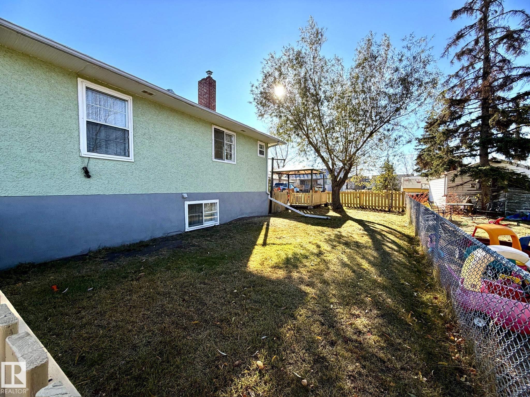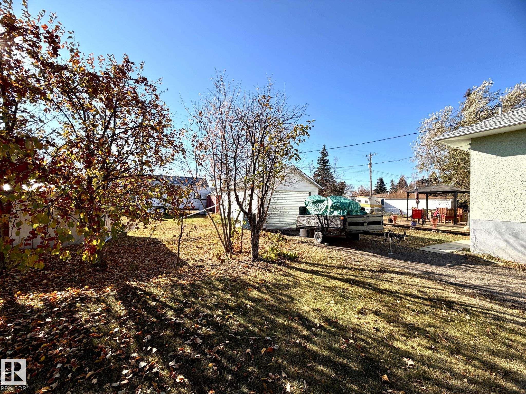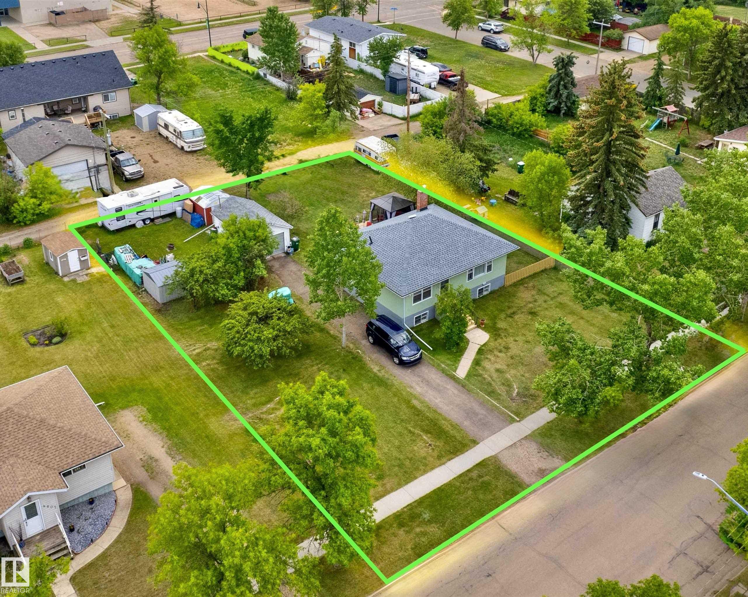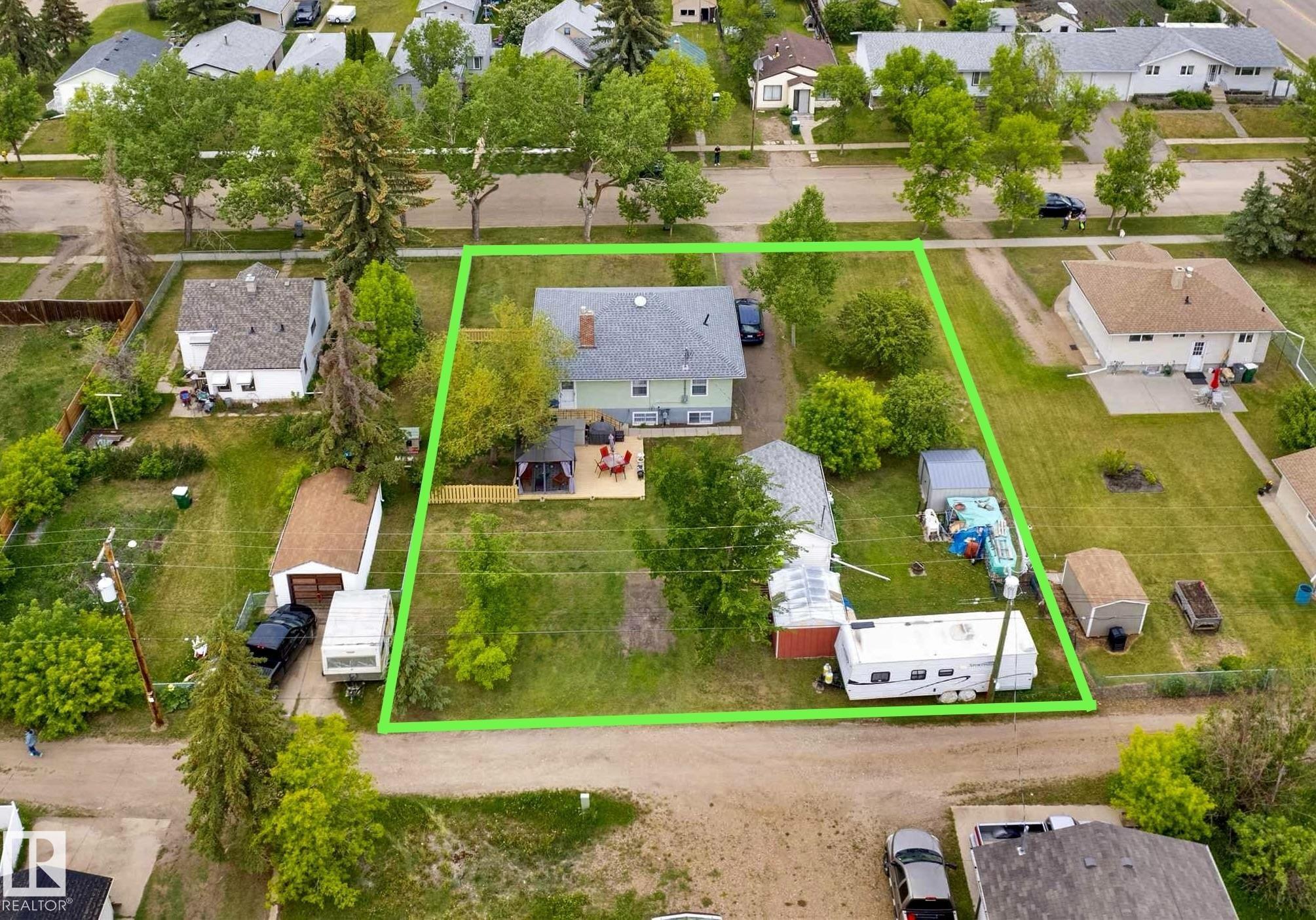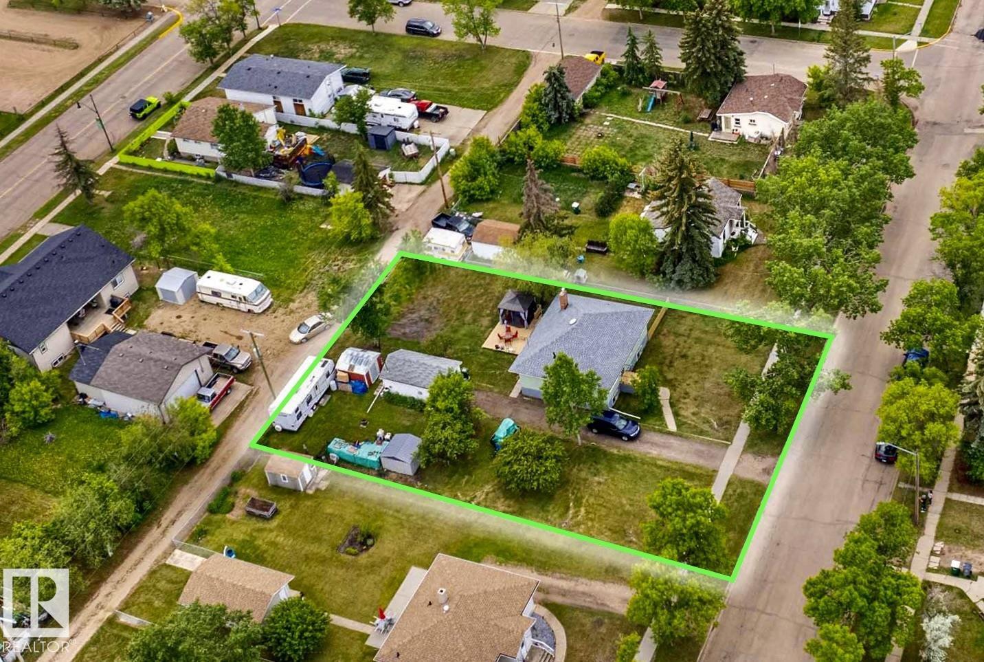 Welcome to this bright & character-filled raised bungalow in Lamont! Set on a MASSIVE TRIPLE LOT, this property offers incredible space & endless possibilities -- create your dream garden, expand the ultimate dog run, or unwind on the spacious back patio. A large driveway & convenient back lane access make parking & RV storage easy. Inside, you'll find beautiful hardwood floors, an inviting eat-in kitchen, a generous dining area & a sun-filled living room that feels warm & welcoming. The main floor features 3 bedrooms, a 4pc bath, a large linen closet & plenty of storage. Enjoy peace of mind with updates including newer appliances, roof, hot water tank, deck & an upgraded electrical panel with potential for 200-amp service. The fully finished basement adds fantastic flexibility with a large rec room, 2 additional bedrooms & a 3-piece bath. Located just 15 minutes from Elk Island National Park & close to schools, parks, hospital & amenities, this home offers small-town charm with an easy city commute.