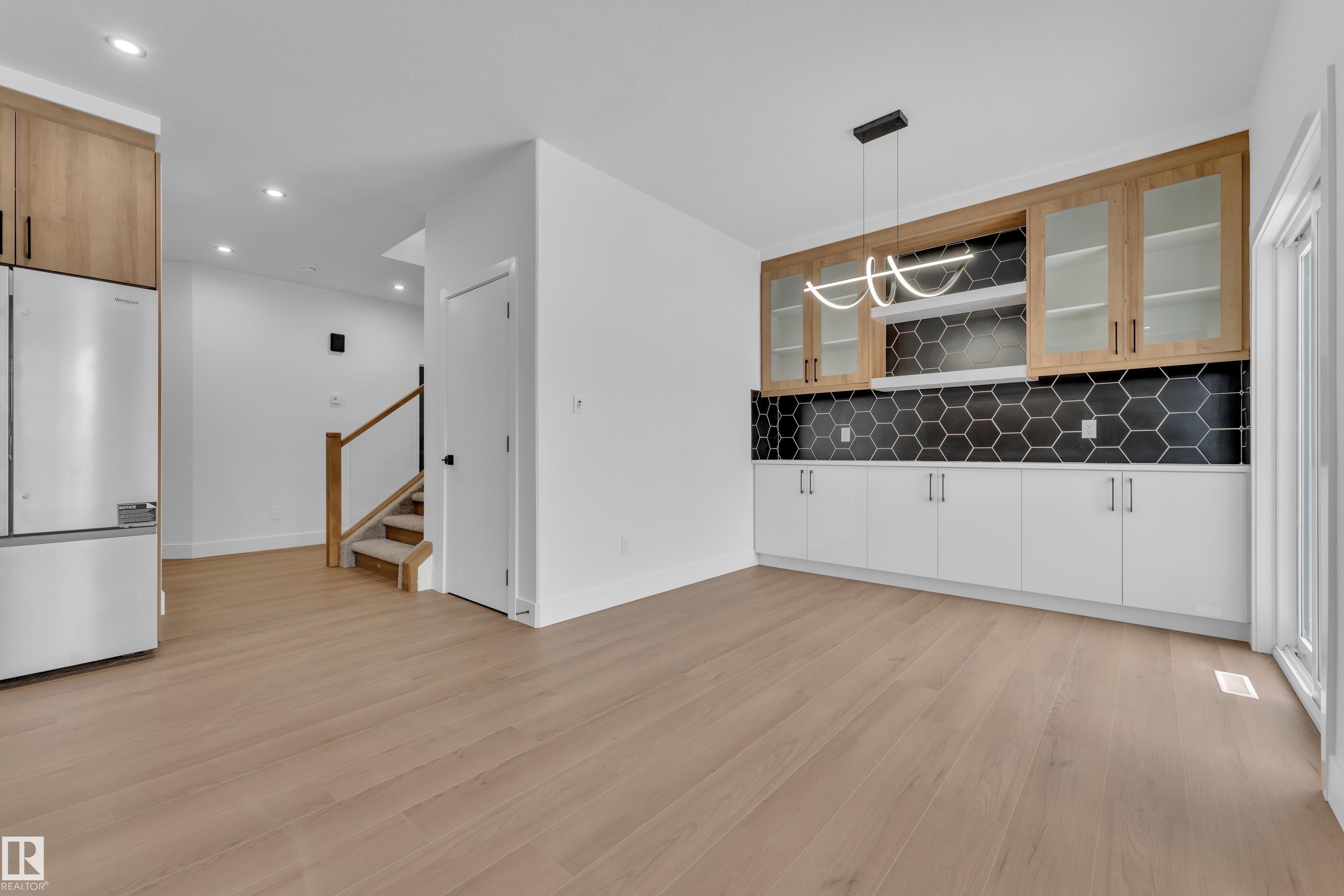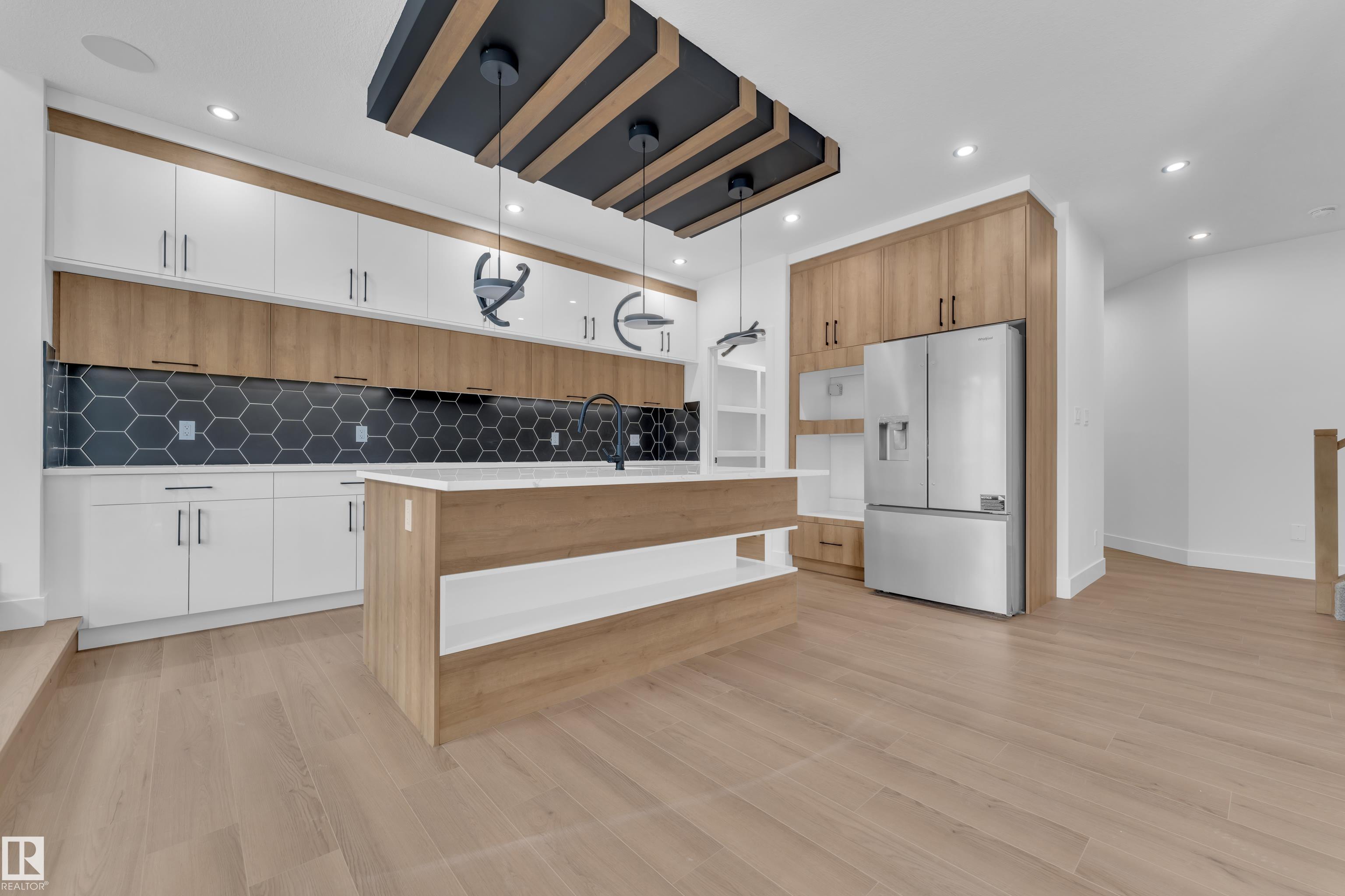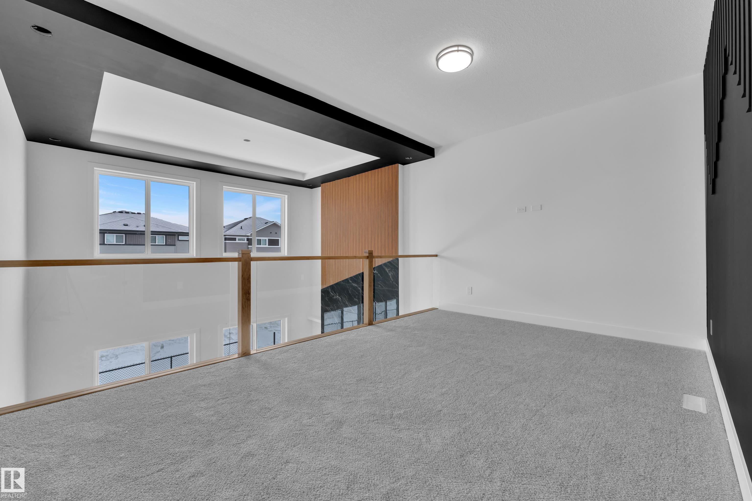 TRIPLE-CAR GARAGE | FULLY UPGRADED | Backing to walking trail | CUSTOM-BUILT SHOWSTOPPER. Step into a home that actually delivers. This stunning, fully upgraded custom residence features a versatile main-floor den/office that easily doubles as an extra bedroom, paired with a convenient half bath. The kitchen? Absolute art. A chef's dream with premium finishes, a sleek design, and a walk-in pantry for serious storage. The living room features a custom statement wall that anchors the entire space, while the dining area opens directly onto the deck--perfect for hosting or just vibing on a calm evening.Head upstairs to a bright bonus room, ideal for family hangouts or a cozy entertainment zone. The primary bedroom is massive, highlighted by a designer feature wall, a truly luxurious 5-piece custom ensuite, and a walk-in closet made for someone who loves organization. Two additional generous bedrooms share a well-appointed full bath, and the second-floor laundry adds next-level convenience.