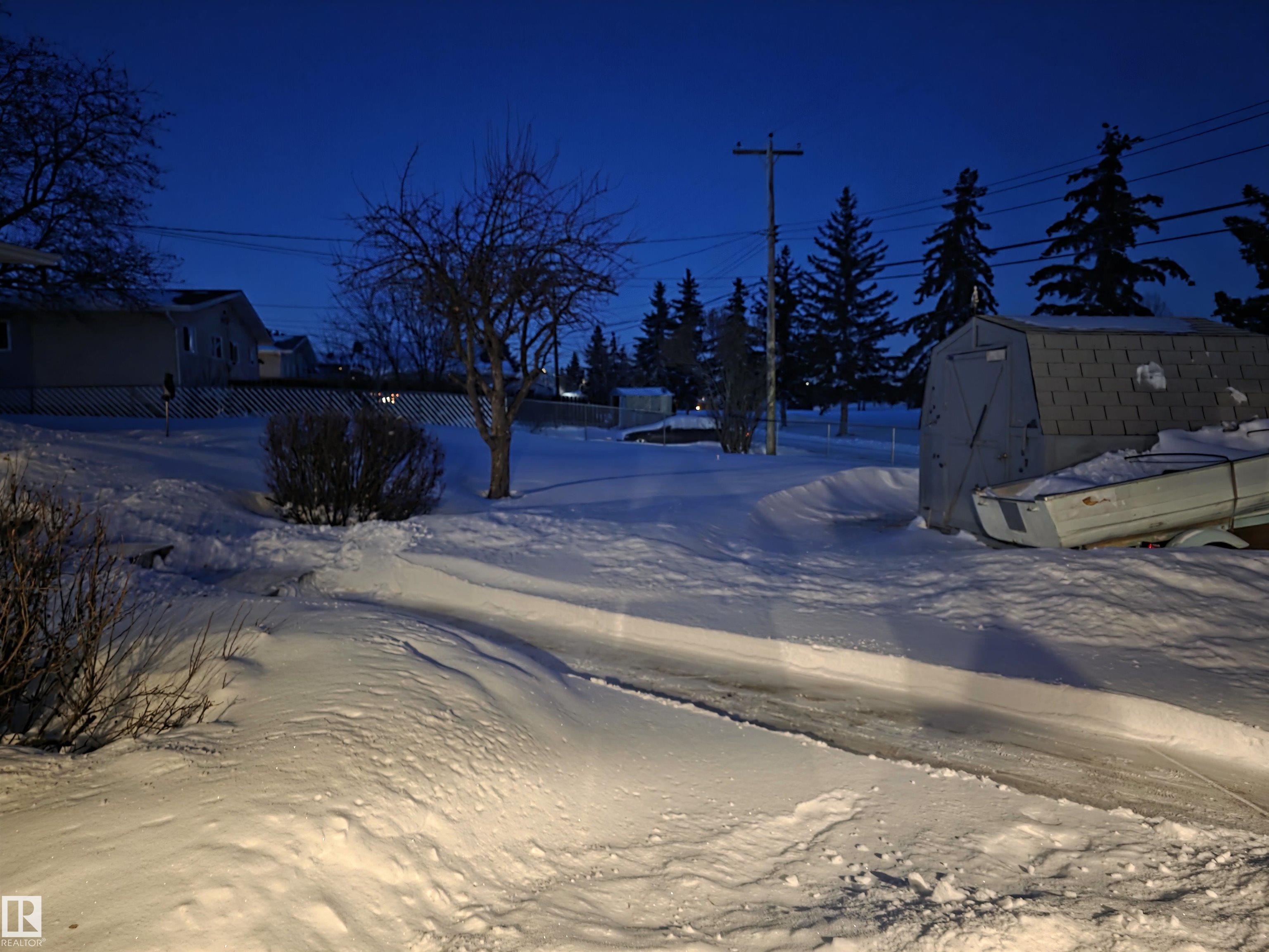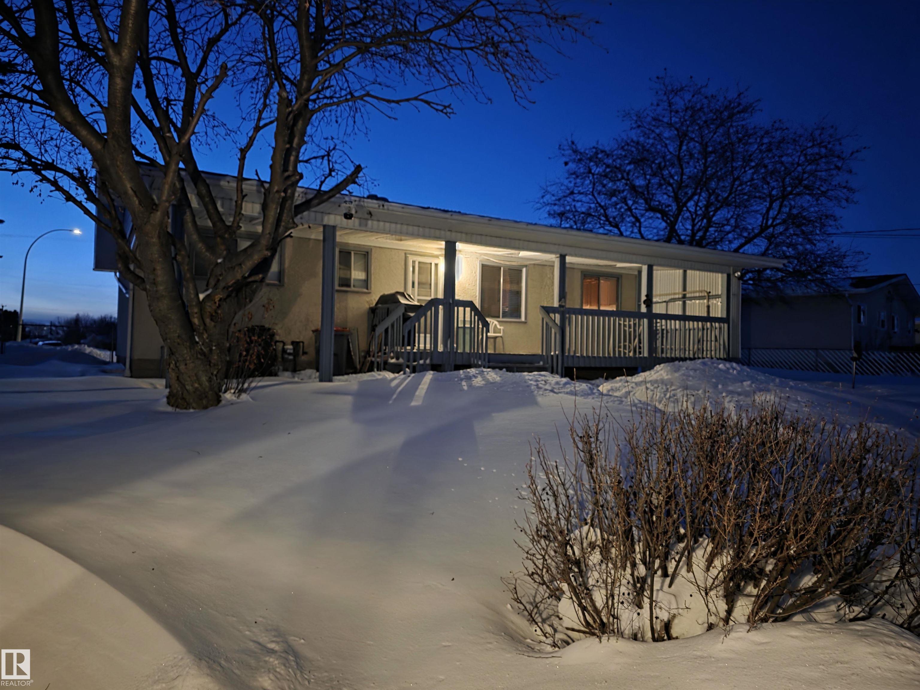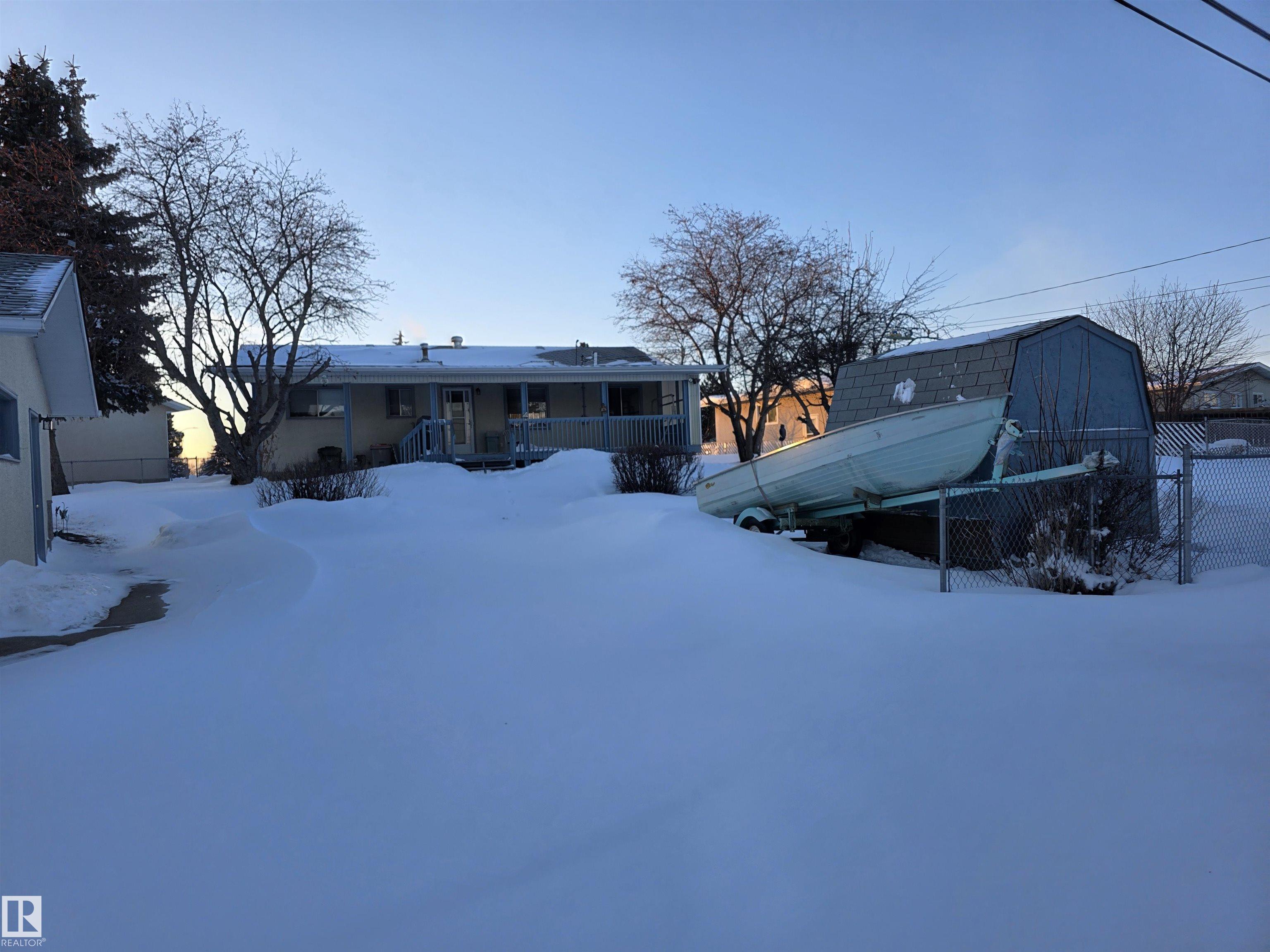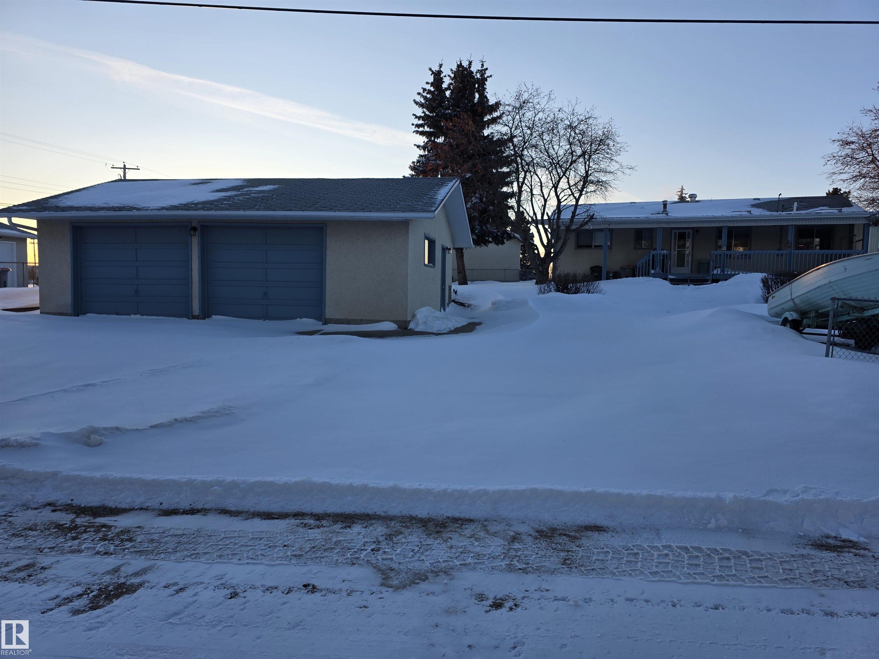 With only one owner, this bungalow home backs onto Whispering Creek which is Stony Plain's main paved trail walkway which runs thruout the whole town. It has many nice features which include: 3 bedrooms up, 1 down, 2 and half baths, open floor plan, a very functional kitchen with plenty of nice oak cabinets, tiled backsplash, updated countertops, raised eating bar and more. The basement is fully finished with a huge family room, rec room, 4th bedroom, 3 pc bath, laundry room and cold room. There is a 26' x 10' covered deck off the back door, overlooking the very private back yard. Everyone will love the huge 24' x 28' detached garage with back alley access. Adjacent to the driveway there is also extra parking for RV or boat and a storage shed. This .25 acre lot is huge and is beautifully landscaped. There are two gardens to grow your own vegetables. There is also a driveway in the front of the home for additional parking. The location is excellent close to schools, shopping and all amenities.