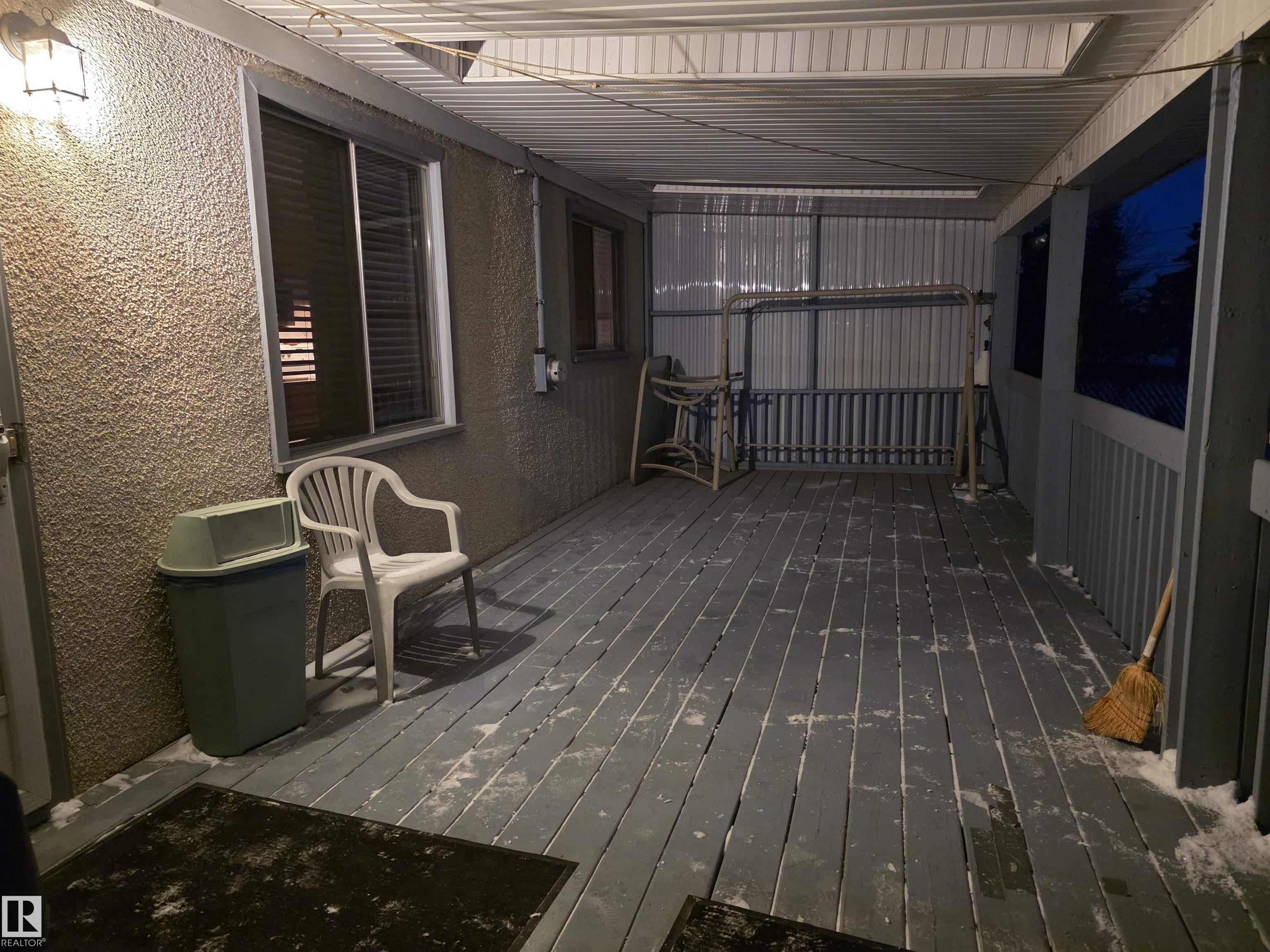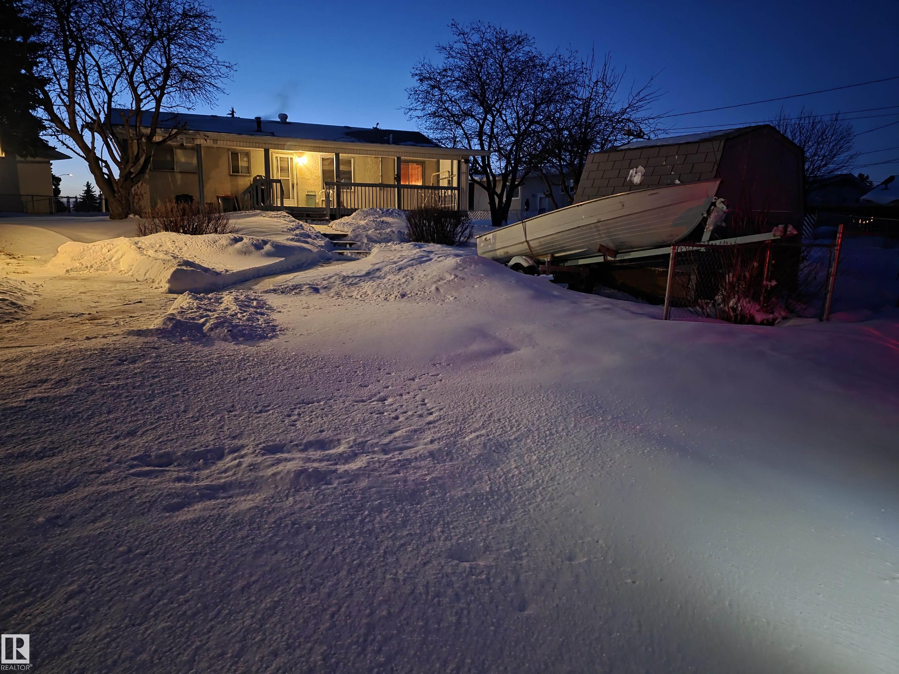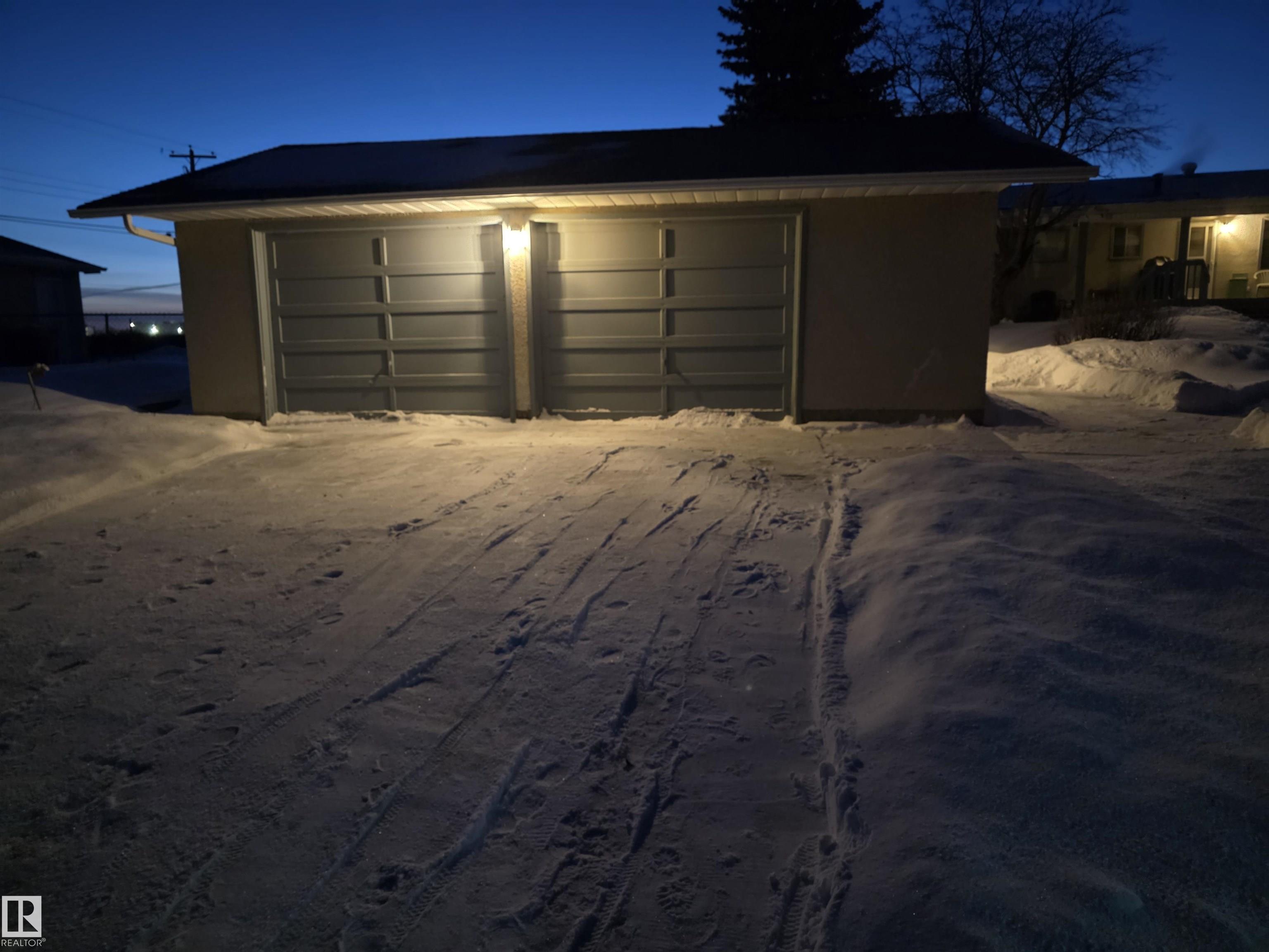 With only one owner, this bungalow home backs onto Whispering Creek which is Stony Plain's main paved trail walkway which runs thruout the whole town. It has many nice features which include: 3 bedrooms up, 1 down, 2 and half baths, open floor plan, a very functional kitchen with plenty of nice oak cabinets, tiled backsplash, updated countertops, raised eating bar and more. The basement is fully finished with a huge family room, rec room, 4th bedroom, 3 pc bath, laundry room and cold room. There is a 26' x 10' covered deck off the back door, overlooking the very private back yard. Everyone will love the huge 24' x 28' detached garage with back alley access. Adjacent to the driveway there is also extra parking for RV or boat and a storage shed. This .25 acre lot is huge and is beautifully landscaped. There are two gardens to grow your own vegetables. There is also a driveway in the front of the home for additional parking. The location is excellent close to schools, shopping and all amenities.