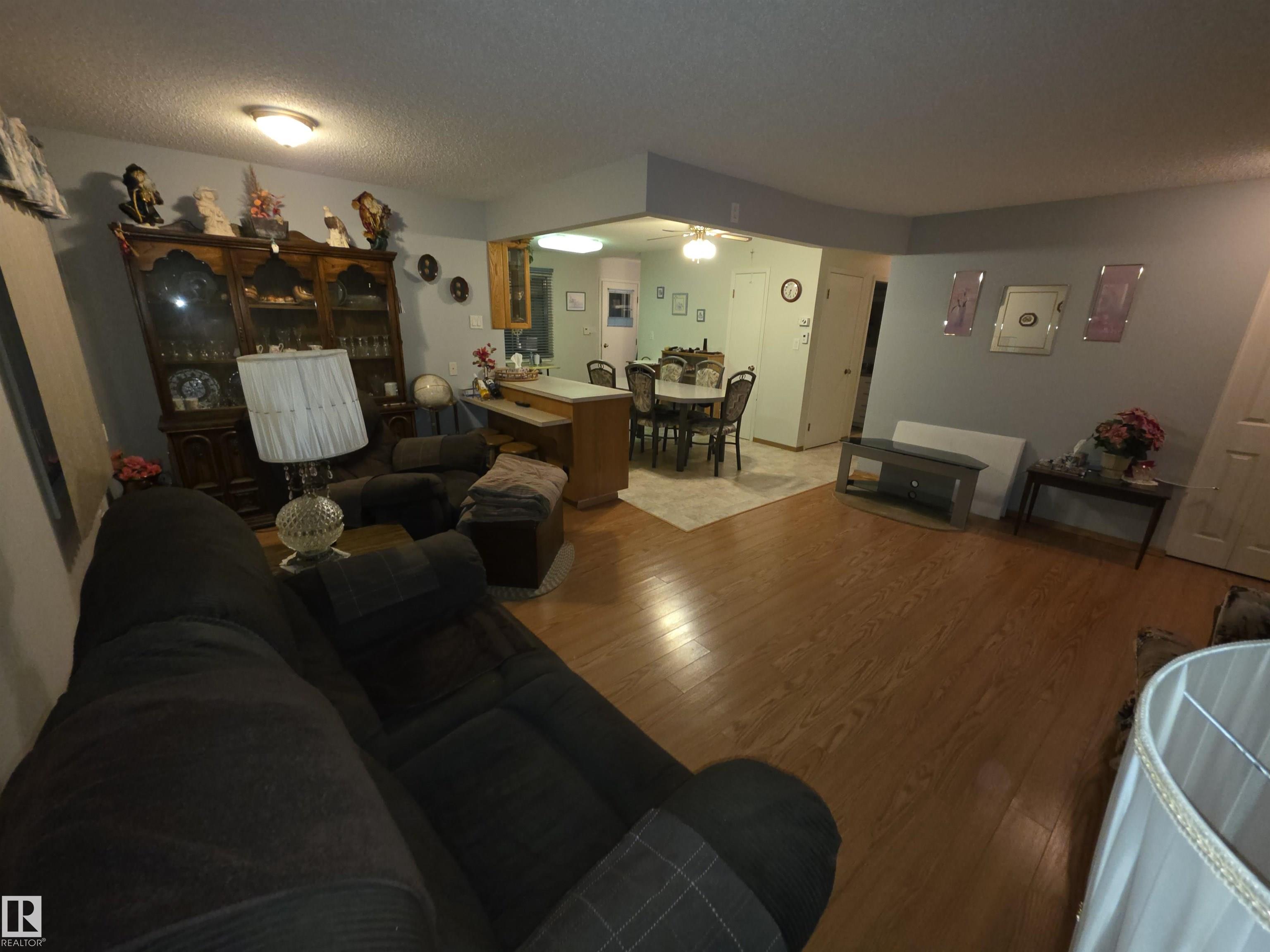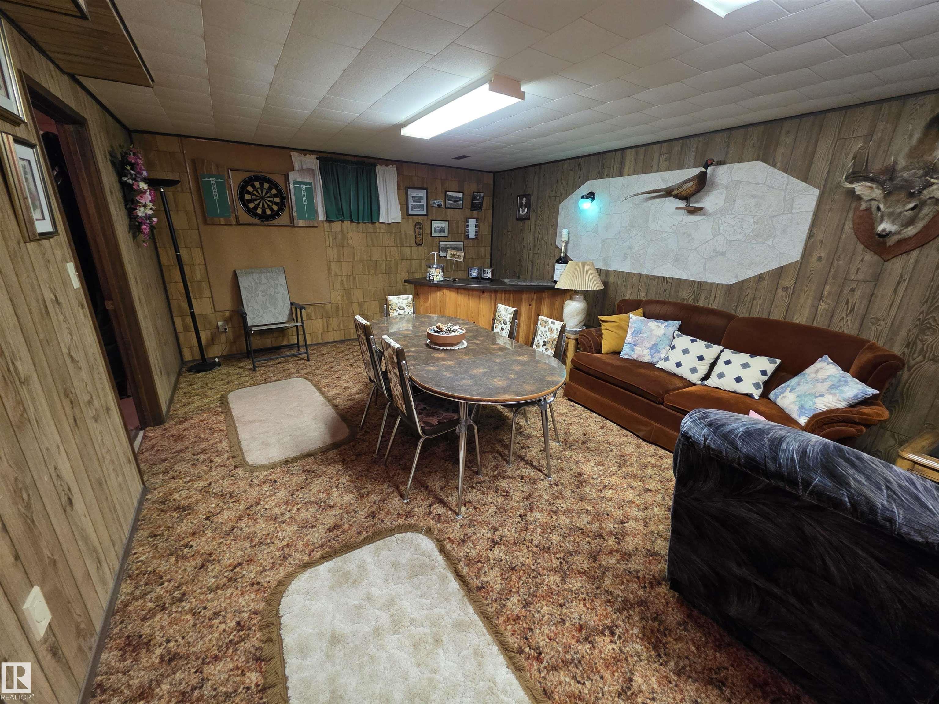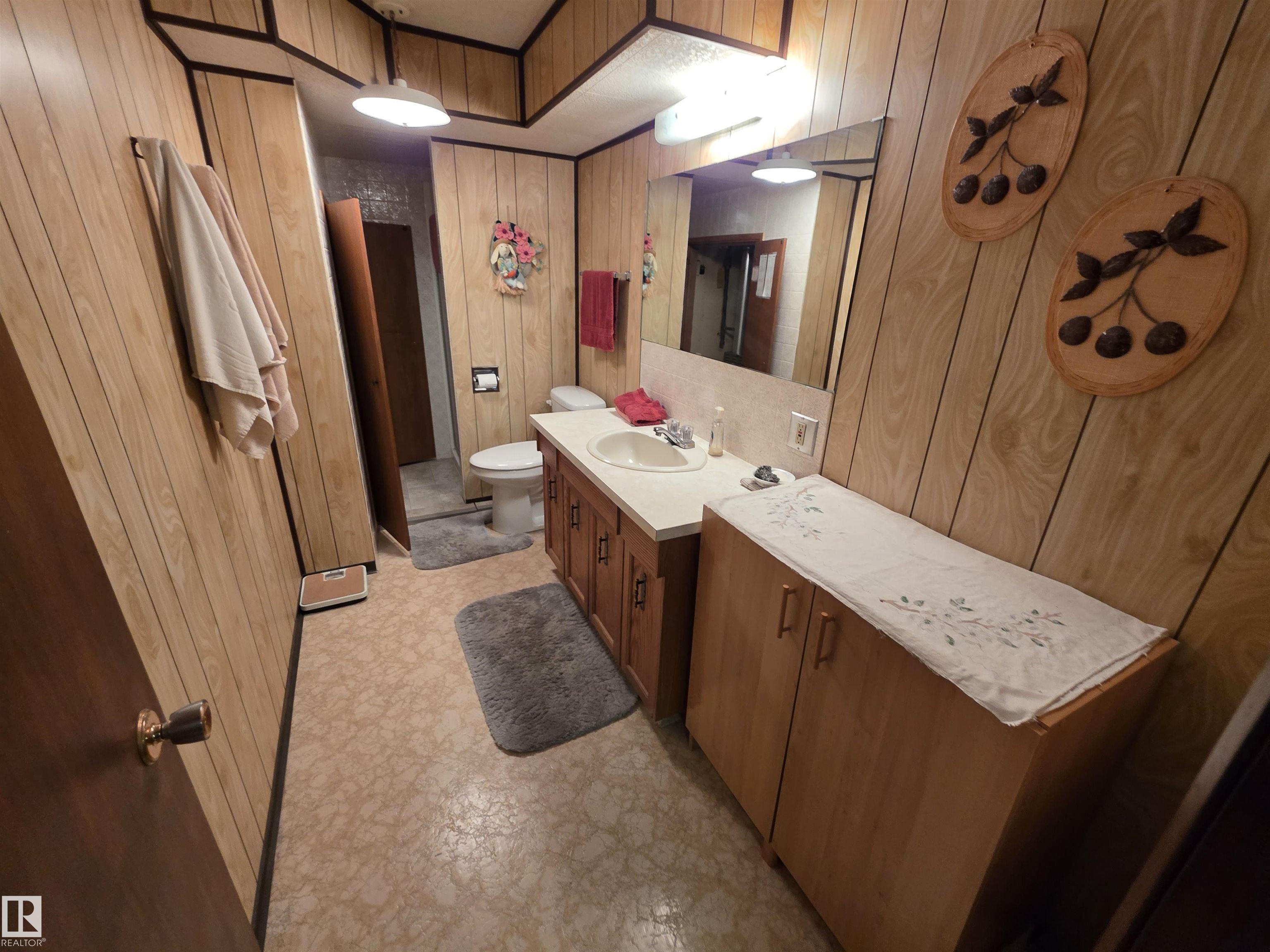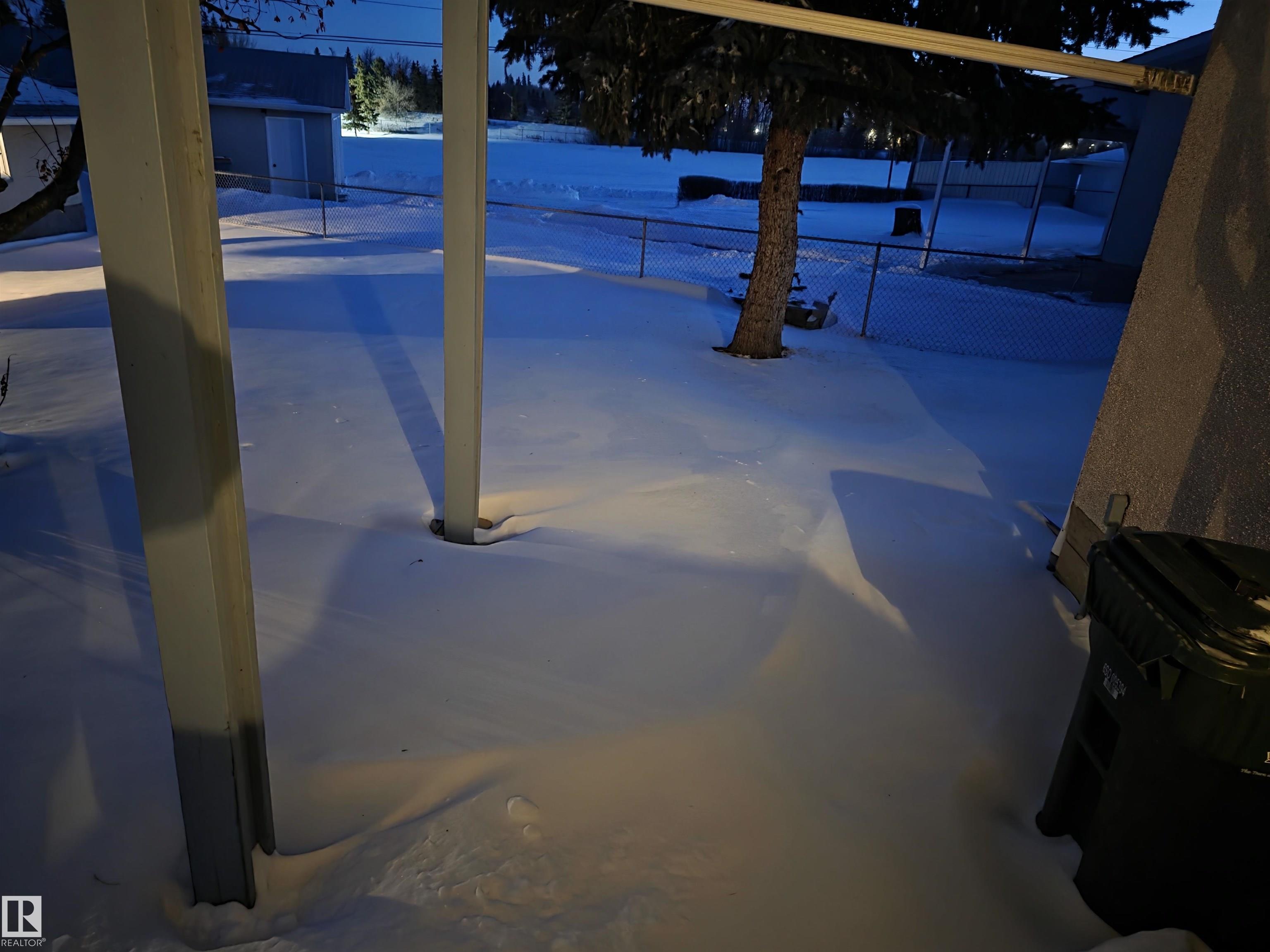 With only one owner, this bungalow home backs onto Whispering Creek which is Stony Plain's main paved trail walkway which runs thruout the whole town. It has many nice features which include: 3 bedrooms up, 1 down, 2 and half baths, open floor plan, a very functional kitchen with plenty of nice oak cabinets, tiled backsplash, updated countertops, raised eating bar and more. The basement is fully finished with a huge family room, rec room, 4th bedroom, 3 pc bath, laundry room and cold room. There is a 26' x 10' covered deck off the back door, overlooking the very private back yard. Everyone will love the huge 24' x 28' detached garage with back alley access. Adjacent to the driveway there is also extra parking for RV or boat and a storage shed. This .25 acre lot is huge and is beautifully landscaped. There are two gardens to grow your own vegetables. There is also a driveway in the front of the home for additional parking. The location is excellent close to schools, shopping and all amenities.