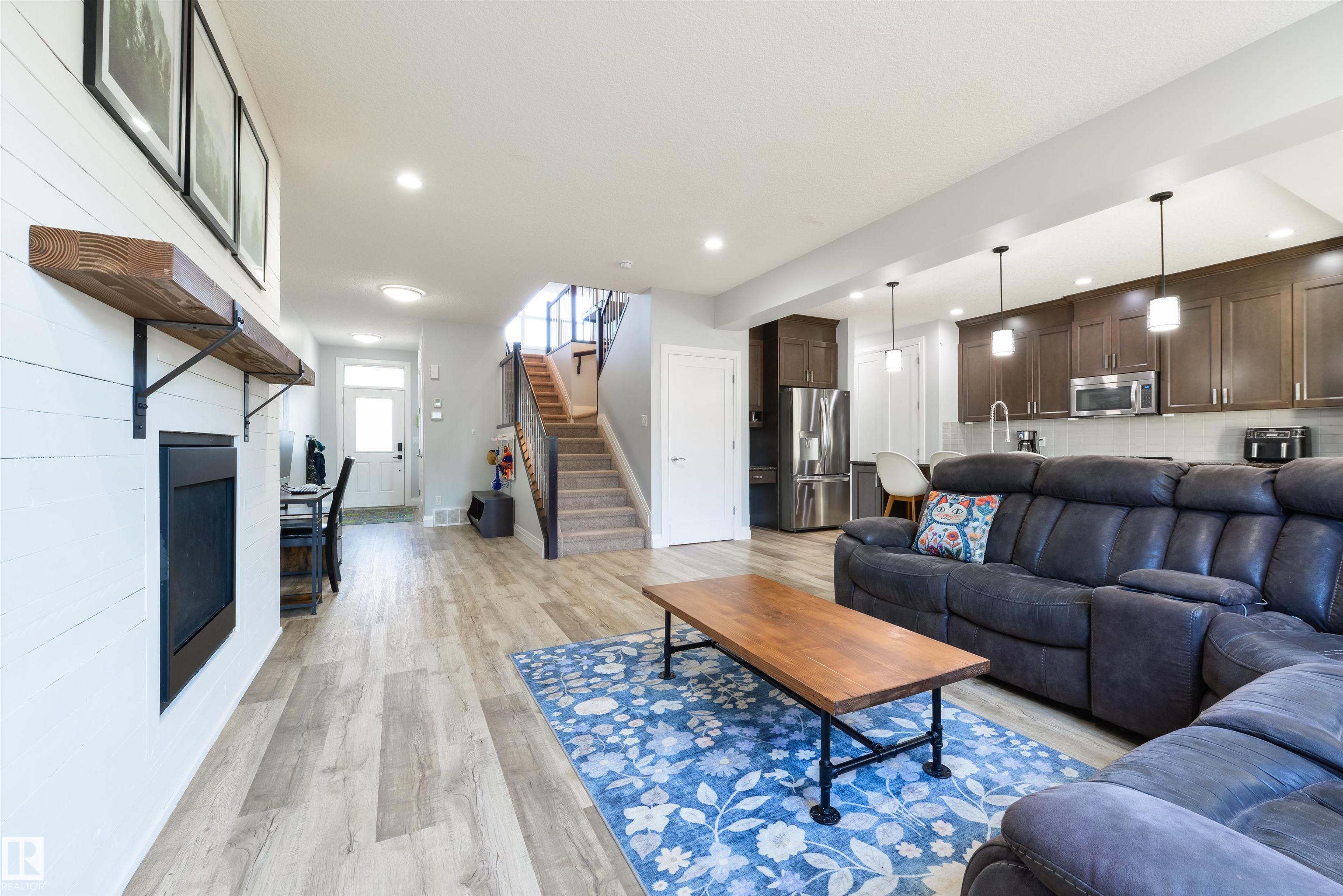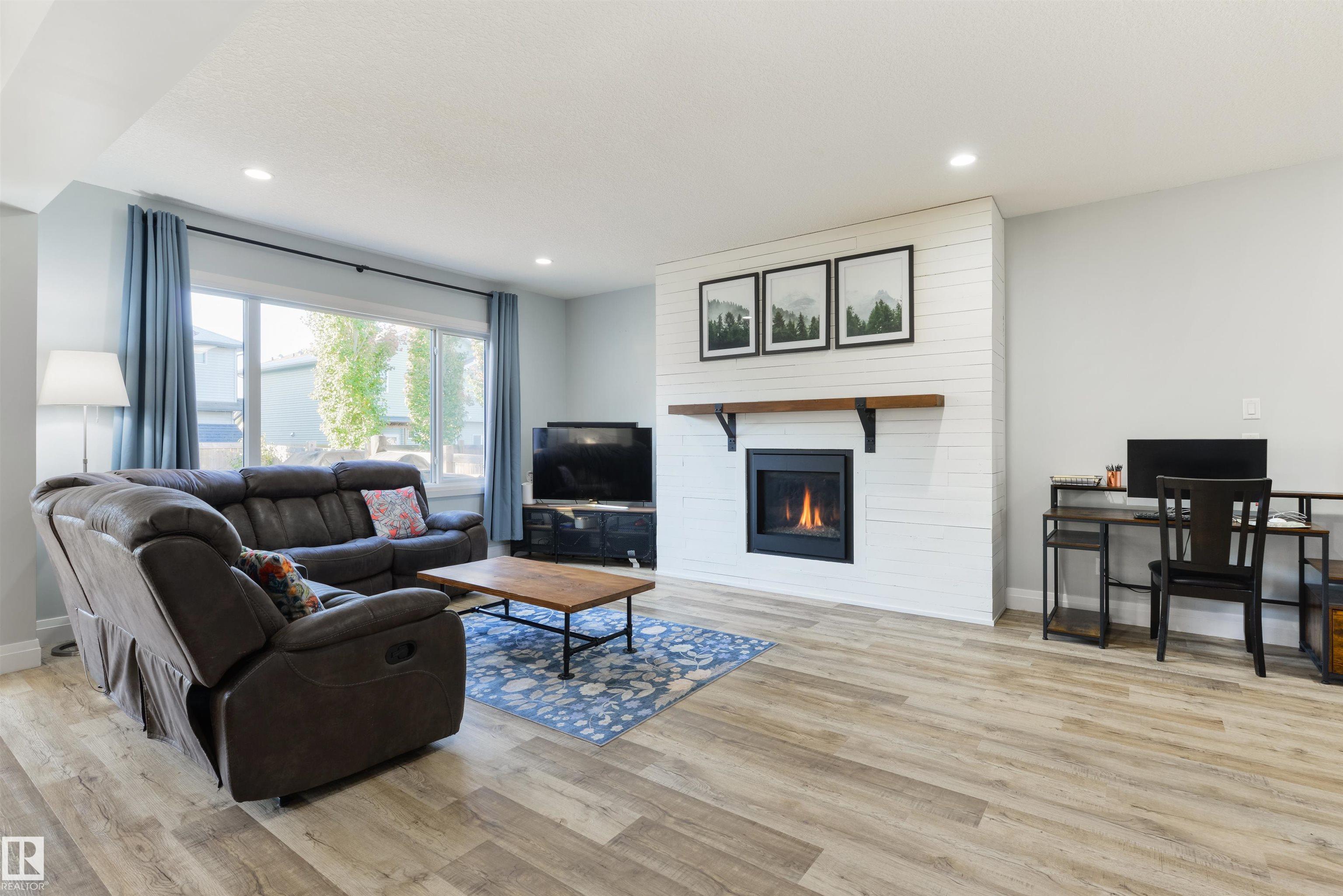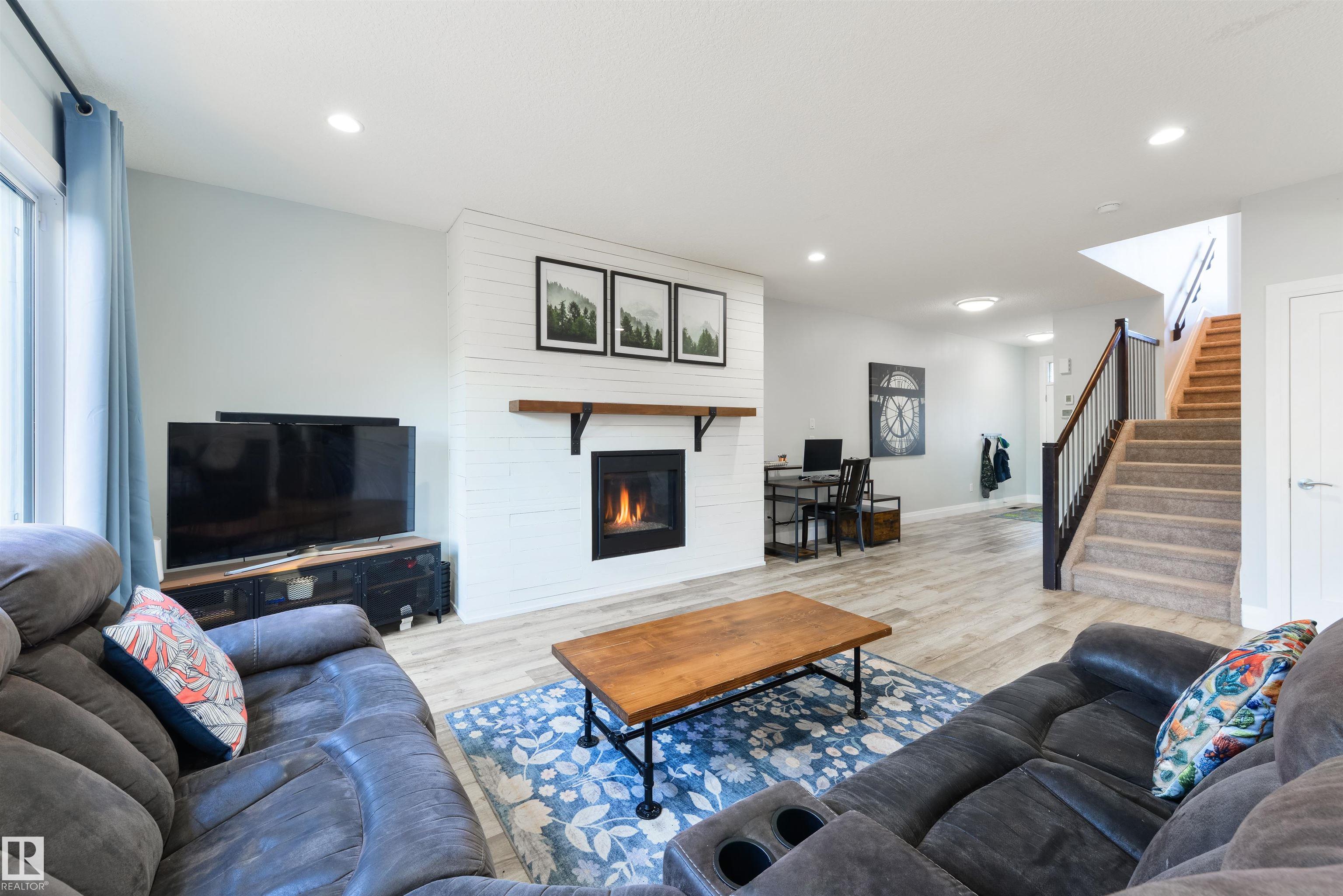 Fully-finished with FIVE bedrooms & ready for your family! Featuring over 3,000 sqft of finished space, this 2-storey home showcases central A/C, an open-concept layout, 9' ceilings, luxury vinyl plank flooring, a large entryway to welcome your guests, a great living room with cozy gas fireplace, gorgeous kitchen with full-height soft-close cabinetry, stainless steel appliances, QUARTZ countertops, center island, & separate dining area, top floor bonus room with vaulted ceilings, upstairs laundry, 5pc guest bath, 5 total bedrooms including a king-sized owner's suite with generous walk-in closet and adjoining 5pc ensuite, and a fully-finished basement. Complete with an exterior deck, SOUTH-FACING backyard, and a HEATED double-attached garage, this home is close to schools, walking trails, shopping, and The Stony Plain Golf Course, and has quick & easy highway access.