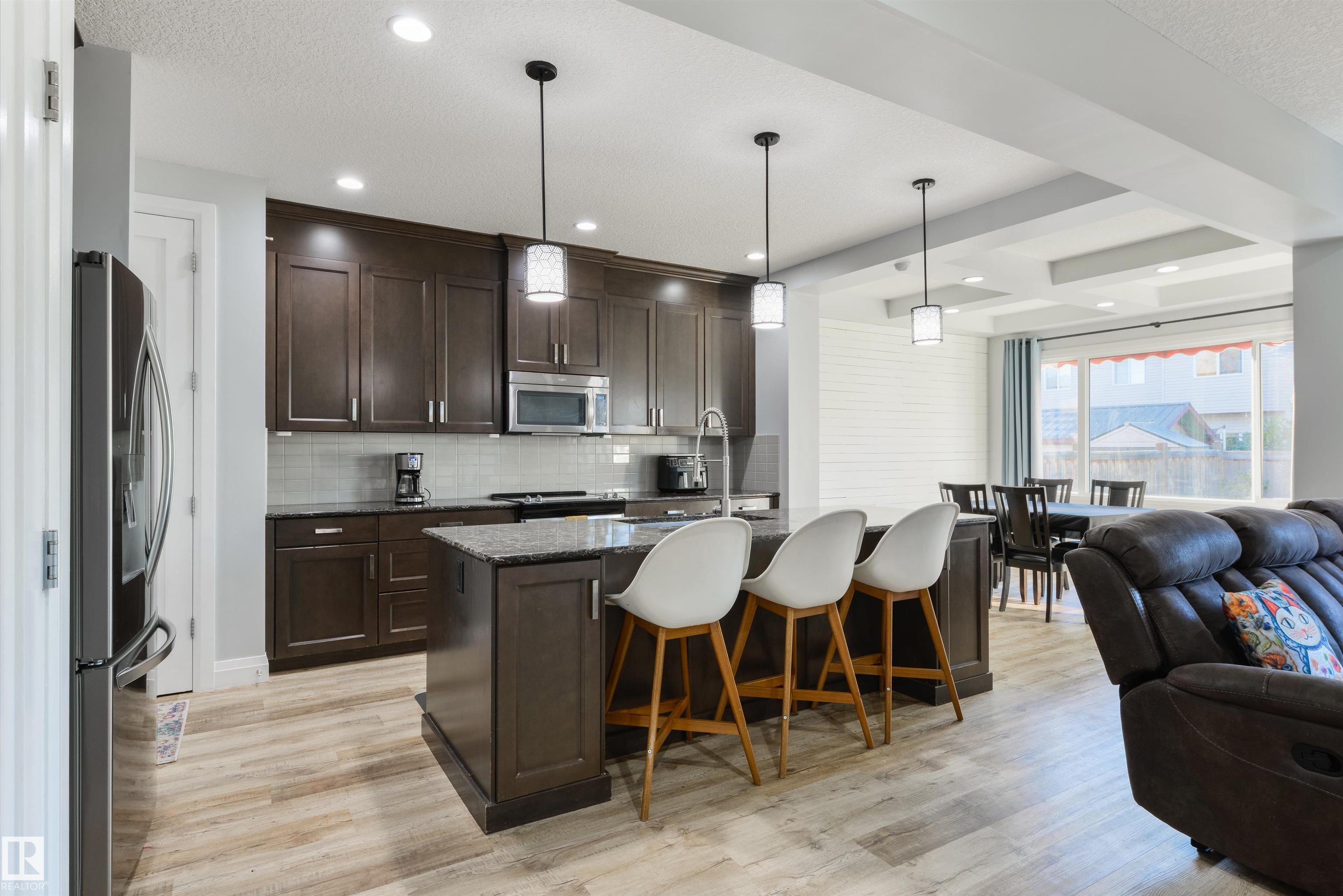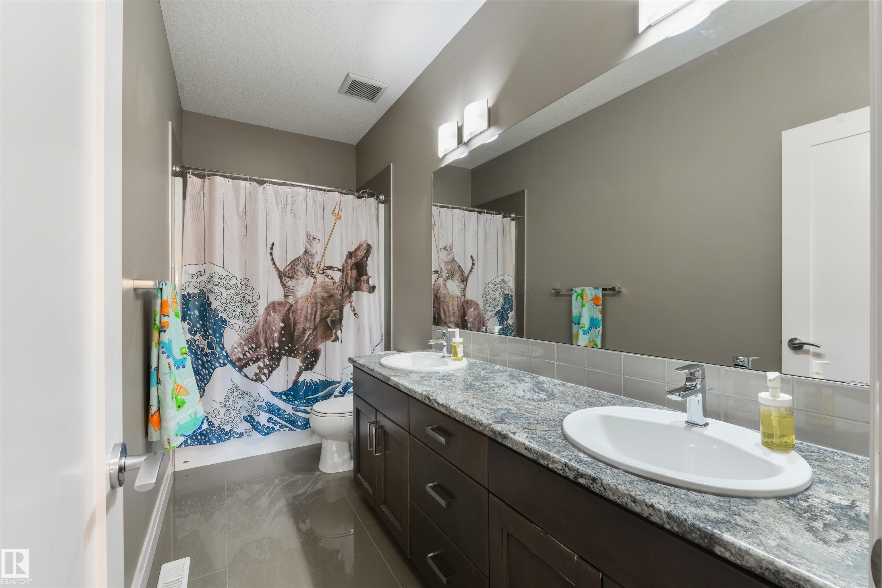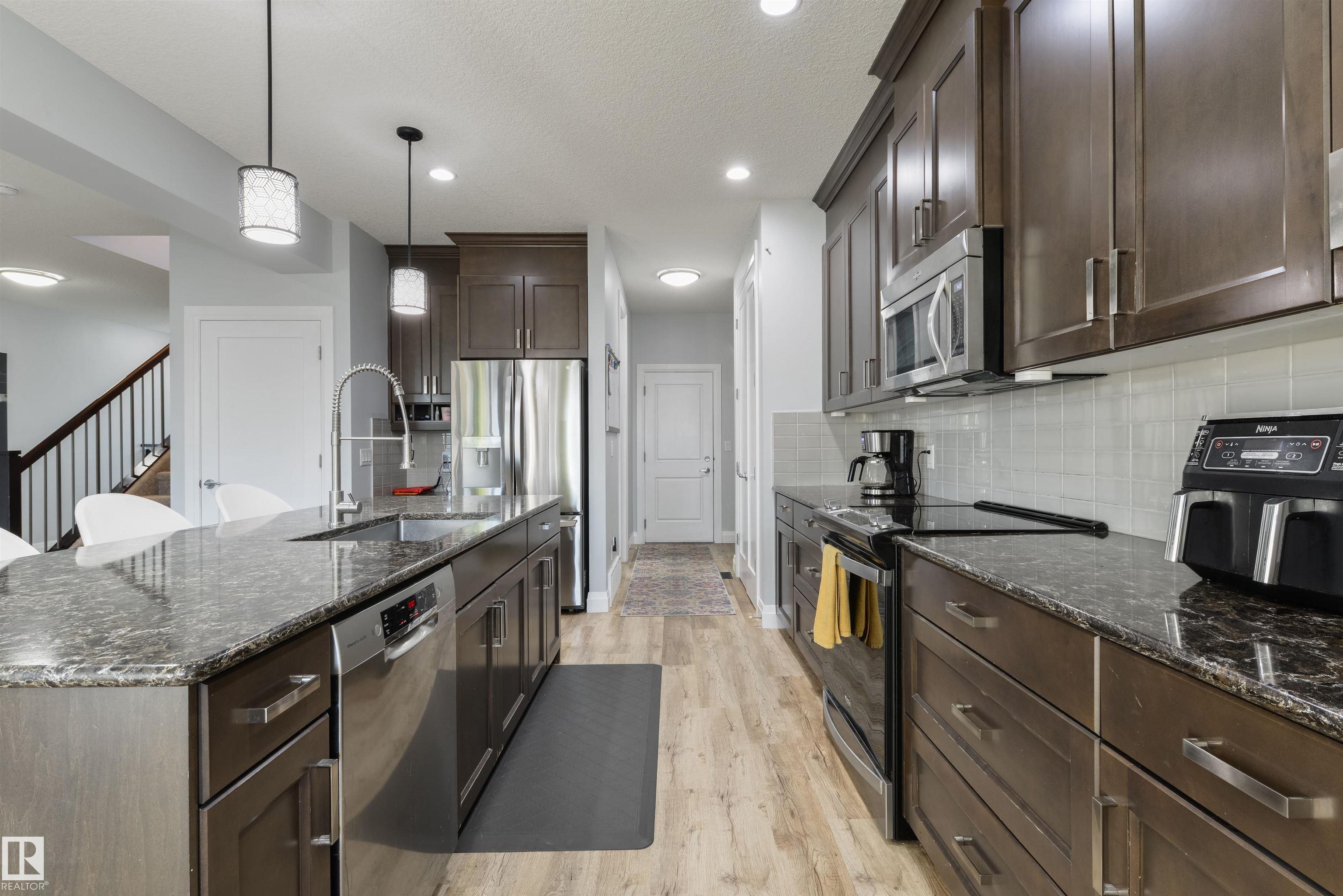 Fully-finished with FIVE bedrooms & ready for your family! Featuring over 3,000 sqft of finished space, this 2-storey home showcases central A/C, an open-concept layout, 9' ceilings, luxury vinyl plank flooring, a large entryway to welcome your guests, a great living room with cozy gas fireplace, gorgeous kitchen with full-height soft-close cabinetry, stainless steel appliances, QUARTZ countertops, center island, & separate dining area, top floor bonus room with vaulted ceilings, upstairs laundry, 5pc guest bath, 5 total bedrooms including a king-sized owner's suite with generous walk-in closet and adjoining 5pc ensuite, and a fully-finished basement. Complete with an exterior deck, SOUTH-FACING backyard, and a HEATED double-attached garage, this home is close to schools, walking trails, shopping, and The Stony Plain Golf Course, and has quick & easy highway access.
