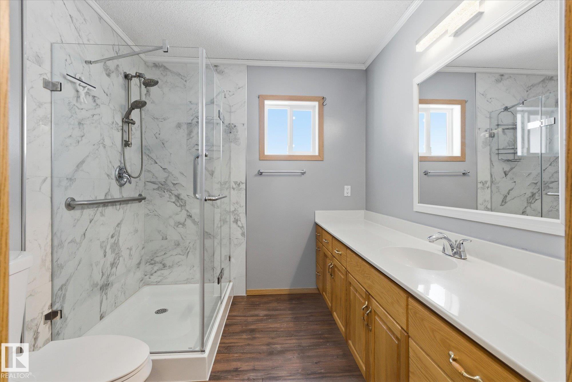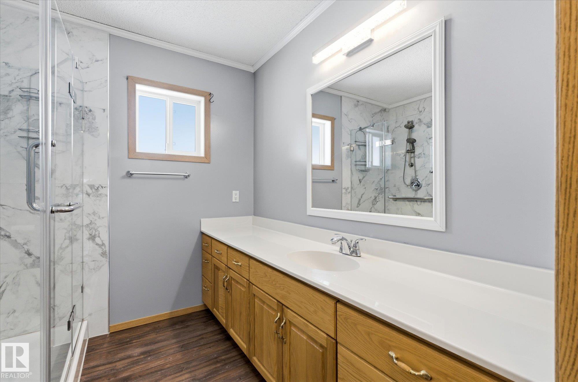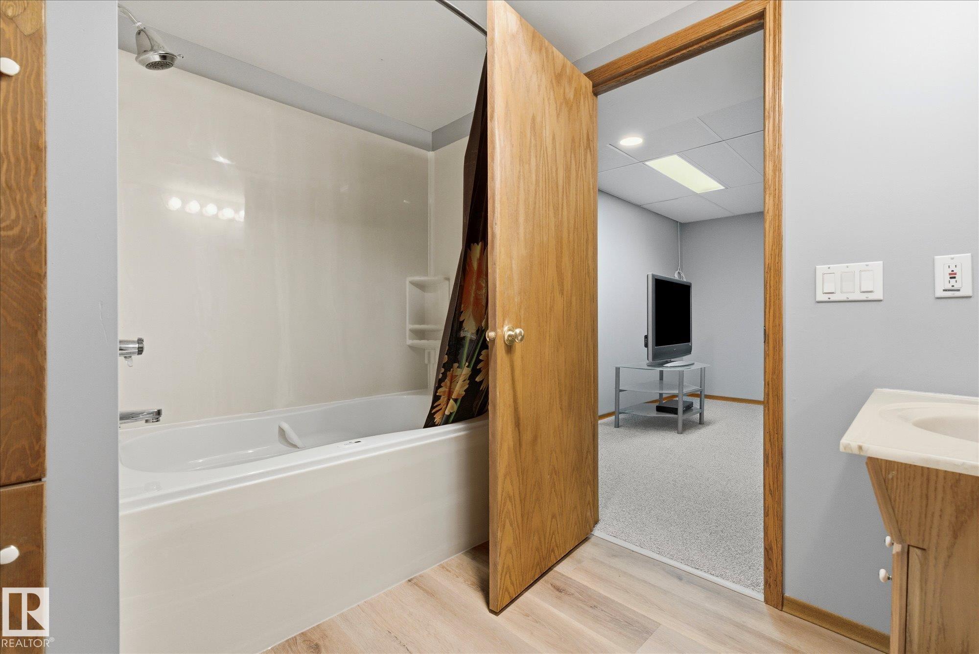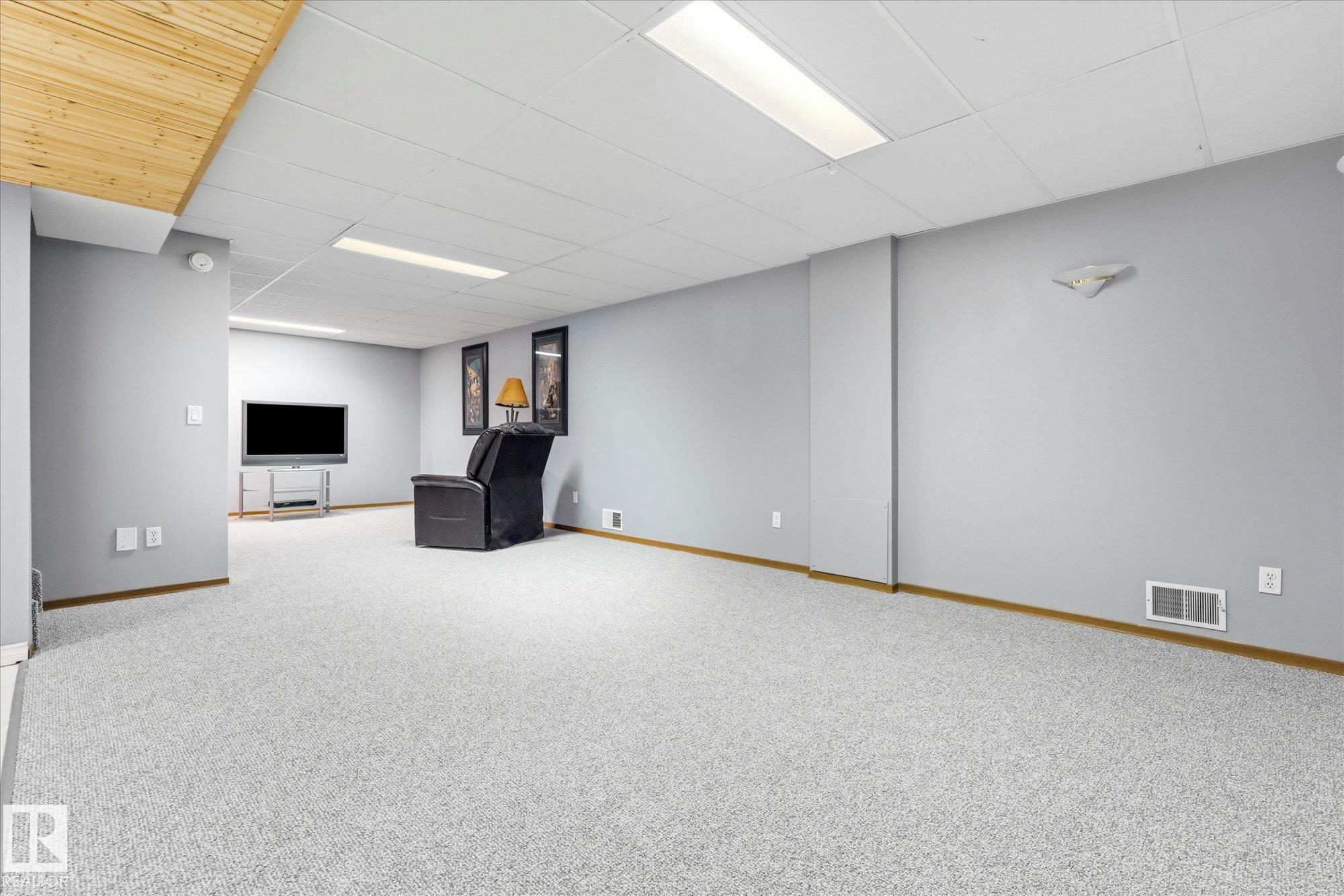 Welcome to this move-in ready 4 bedroom plus den, 2.5 bath bungalow in the vibrant lakeside community of Wabamun! Featuring vaulted ceilings, updated kitchen, stainless steel appliances, new carpet up and down, fresh paint, main floor laundry, and a Sauna. this home offers both style and convenience. The spacious layout includes four bedrooms plus a den--ideal for family, guests, or a home office. Relax or entertain year-round on the covered, screened-in deck, overlooking the fully fenced yard. The oversized double detached heated garage provides plenty of space for vehicles, tools, and lake toys and has 220 wiring. Just minutes from the water and downtown, enjoy all Wabamun has to offer--boating, fishing, beaches, swimming, markets, and community events. Nothing to do but move in and start living the lake life.