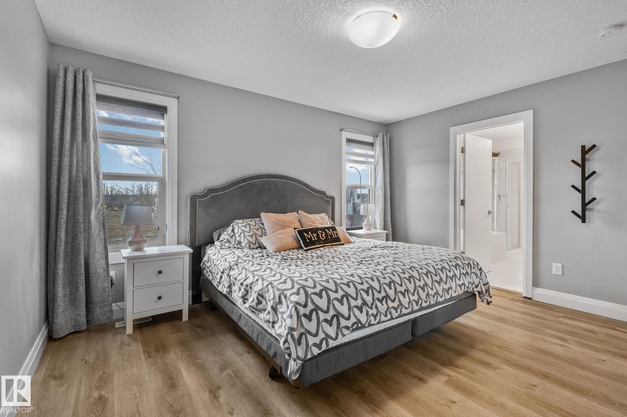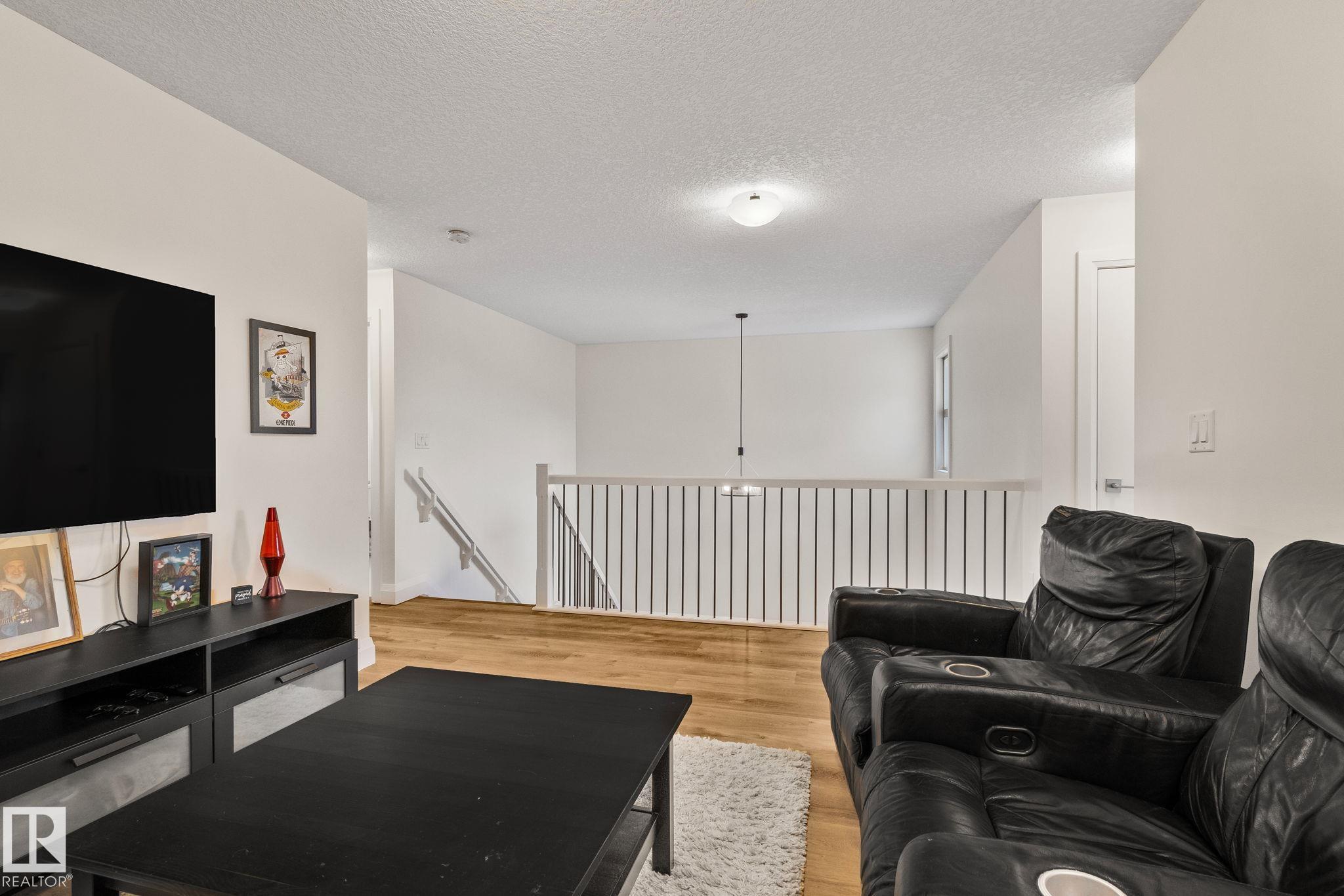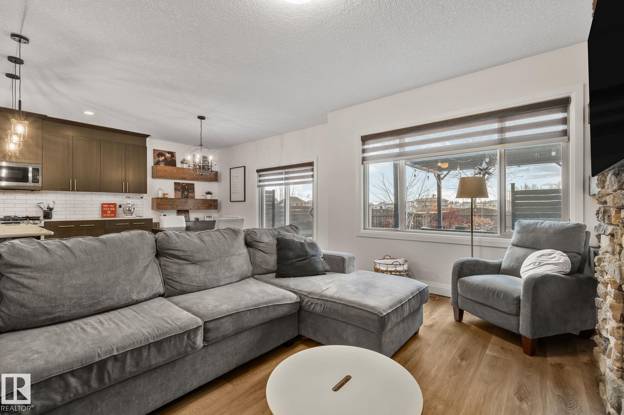 Welcome to Greenbury, one of Spruce Grove's most desirable communities! This beautiful Brownstone style 5 bedroom & 4 bathroom home offers a perfect blend of modern comfort and farmhouse charm. The stylish kitchen features warm finishes and plenty of space for family gatherings, while the cozy living room showcases a stunning stone fireplace with built in shelving. Enjoy year round ease & comfort with air conditioning, a heated garage, air humidifyer, central vac and HRV system. Fresh paint in 2023. Upstairs includes a spacious bonus room and convenient laundry, while the fully finished basement offers extra living space that's ideal for guests or teens. Outside, relax on the large deck, perfect for summer entertaining with room for a full patio setup and outdoor dining. Set on a massive pie-shaped lot just steps from Jubilee Park, schools, and trails, this home delivers both style and location in one exceptional package.