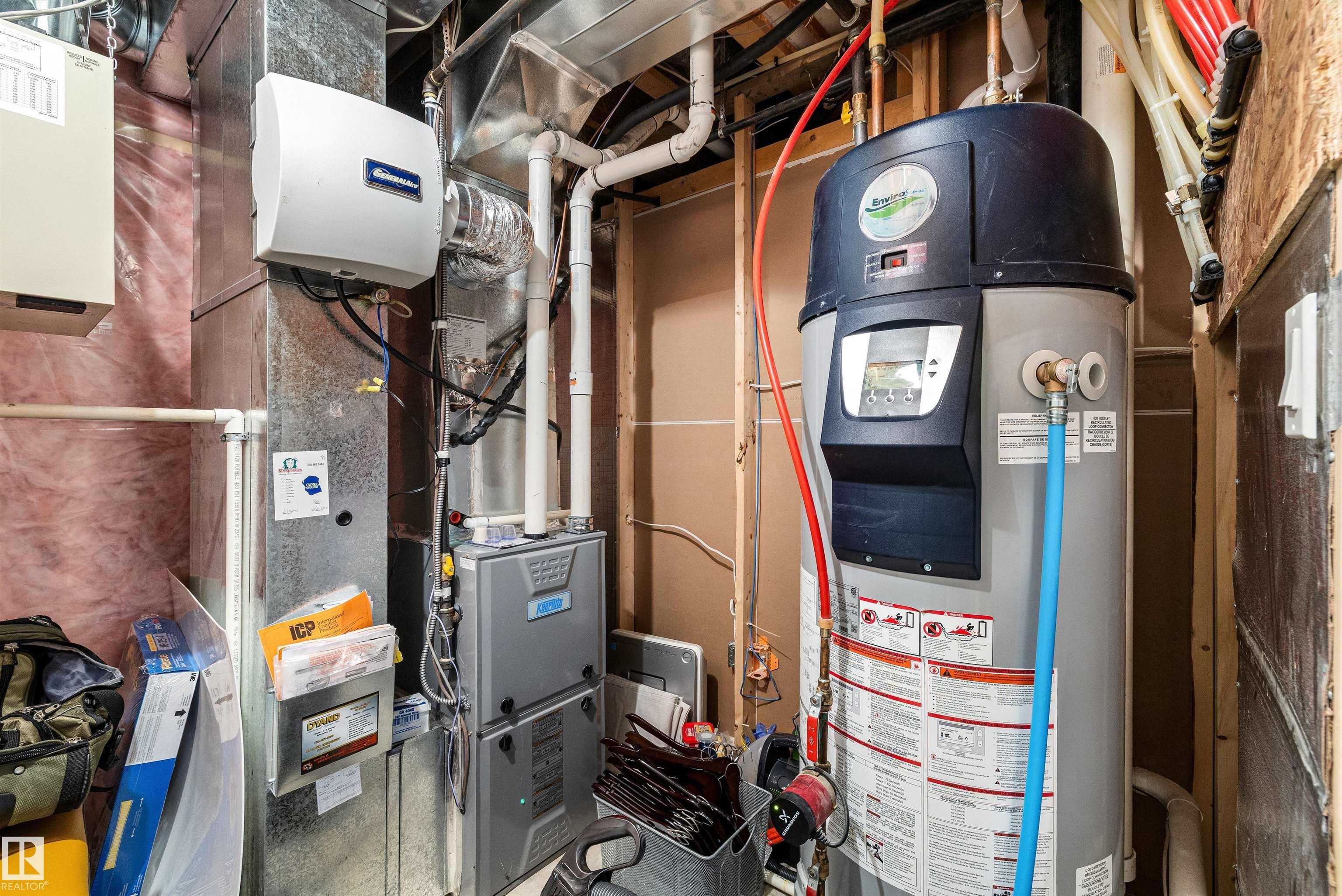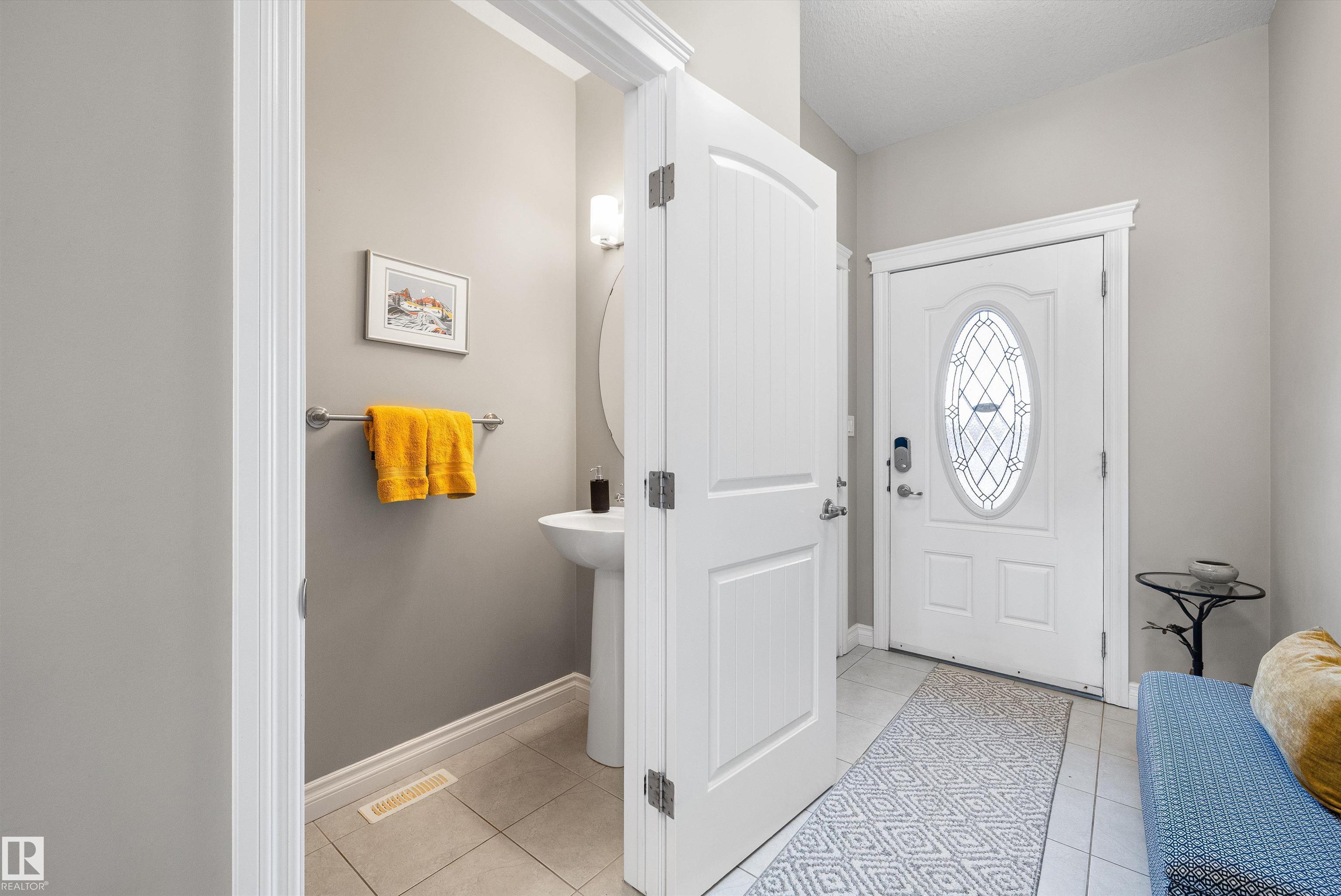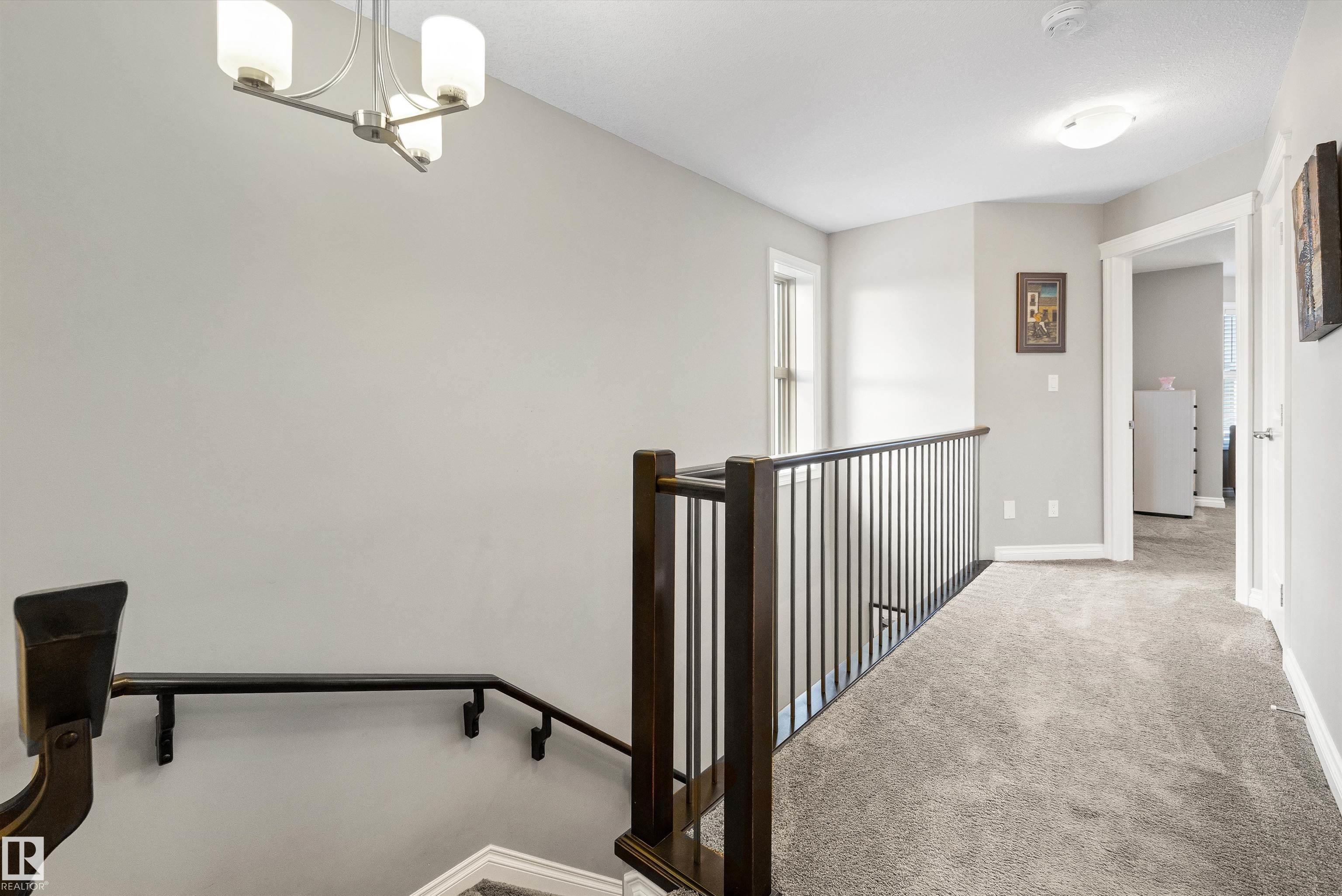 Fully finished, move in ready home backs onto walking trails and greenspace that lead DIRECTLY to Prescott k-9 school; YES you can watch your kids walk to school from the comfort of your home. This stylish duplex is finished beautifully with 9'ceilings, a gas fireplace, quartz countertops, hardwood floors and A/C! Main floor is open concept and functional with a corner pantry, gas stove and ample counterspace in kitchen. Upper floor boasts large laundry room and 2 large suites each with their own 4 piece bathrooms and large walk-in closets. The front bedroom suite has bay window feature giving a cozy spot to curl up with a cup of coffee and a good book. The rear suite has extra windows and the ensuite has a jetted tub! The basement was finished by the builder and has a family room, 3rd good sized bedroom and full 4 piece bathroom with tub & shower. The home is located next to walking trails so no neighbor on once side! Located steps to Jubilee park in family community; don't miss this one!