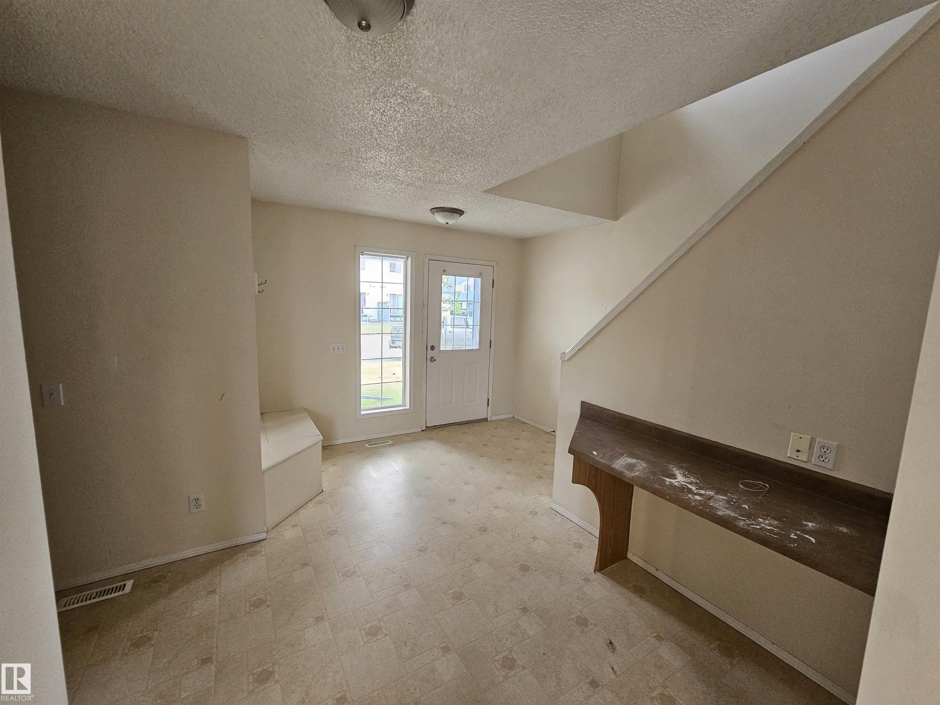 This 3 bedroom duplex in the quiet complex of Grove Park is in the process of being renovated with new flooring and paint. Note: Pictures were taken from before the renos were started and do not reflect the current state. The unit has a nice floorplan with an open living room/kitchen and patio doors leading to a cement pad in the back yard. The front entrance is spacious featuring a large bench seat. The basement is partially finished with a large family room and the bathroom is roughed in. Closed to shopping and all amenities.