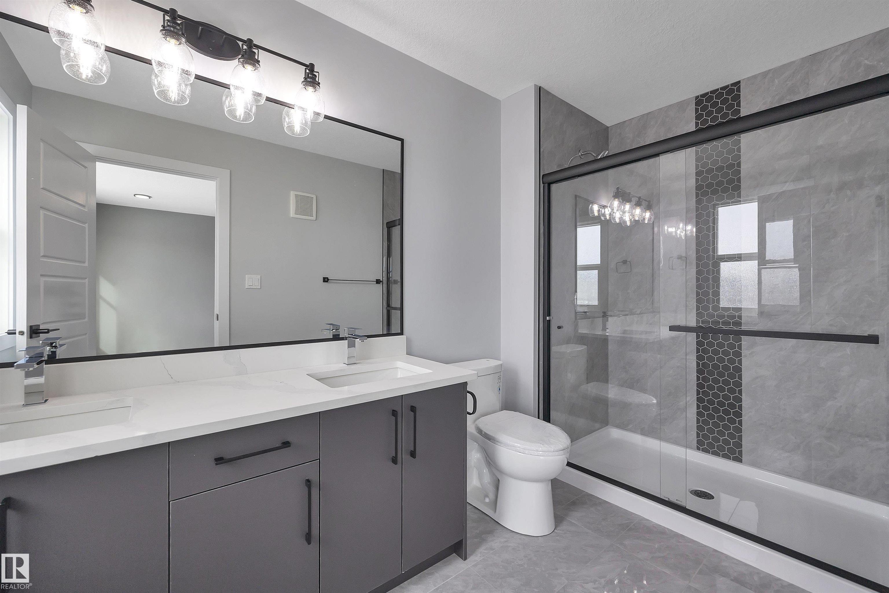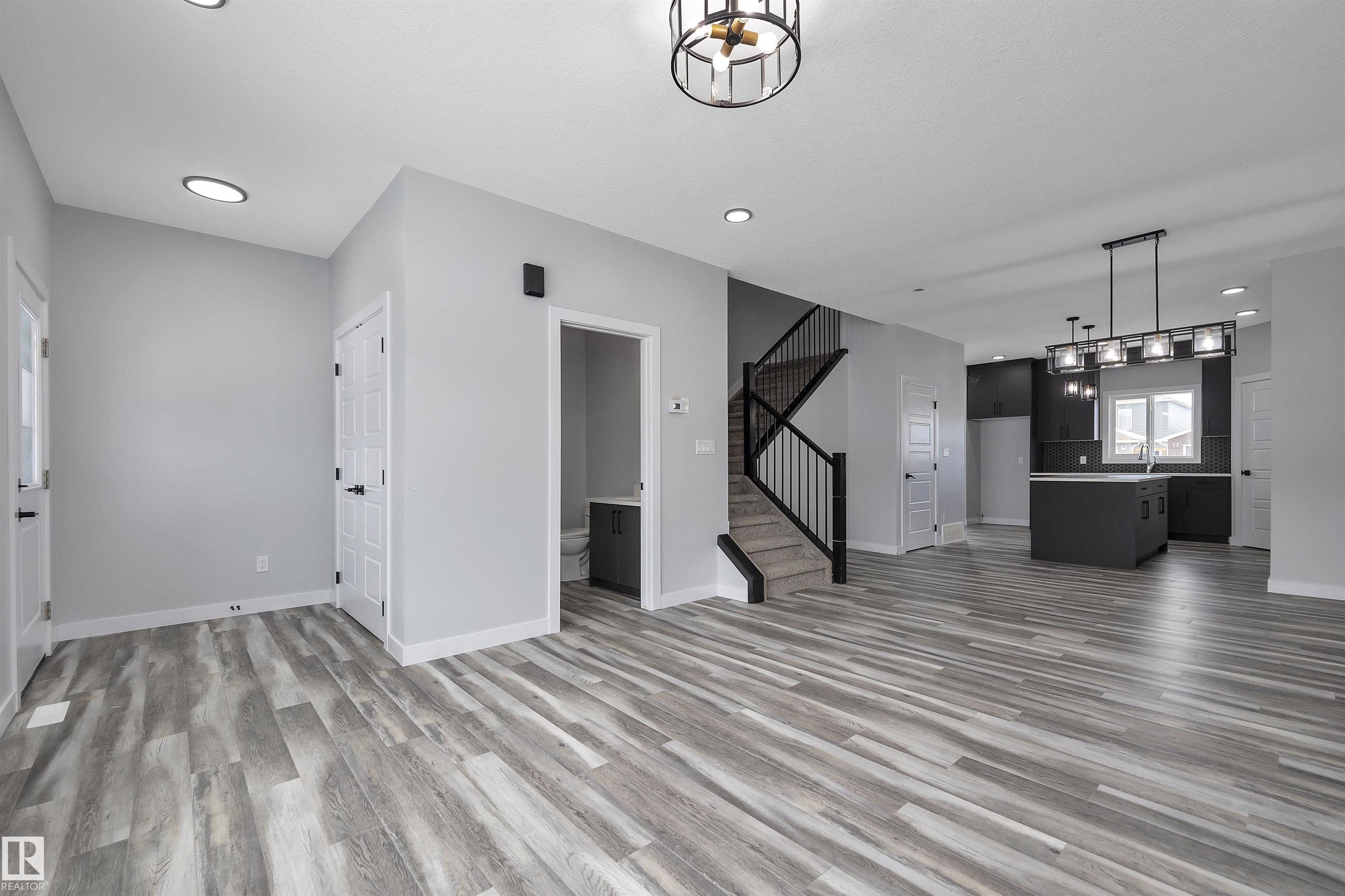 (Photos are of another home, No Appliances, Under Construction with completion May) Welcome to this stunning new build in the Prescott community of Spruce Grove, offering modern design, high-end finishing. Step inside to an inviting open-concept main floor featuring a bright living room with sleek finishes, a spacious dining area, and a beautifully designed kitchen complete with premium cabinetry, quartz counters, and a walk-in pantry. A convenient 2-piece bath and a side entrance with excellent suite potential add flexibility and value. Upstairs, you'll find three well-appointed bedrooms and two full bathrooms, including a luxurious primary suite with a walk-in closet and 4-piece ensuite. The second floor also includes dedicated laundry for added convenience. The basement offers a large unfinished space with endless possibilities. Take advantage of the private side entrance to create a future suite. Located just minutes from shopping, restaurants, parks, and schools this home blends style and comfort.