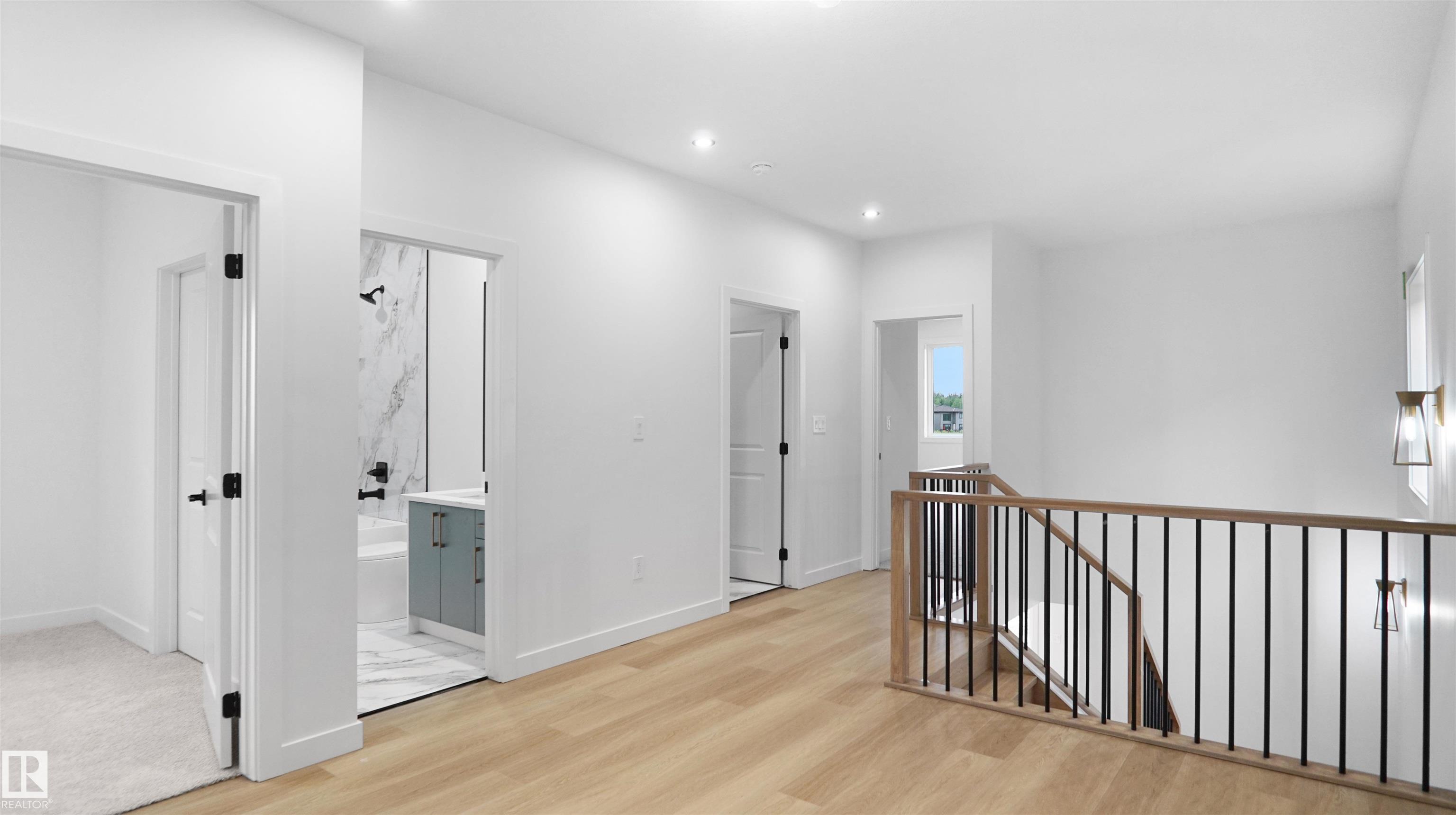 UPGRADED HOME IN THE COMMUNITY OF TONEWOOD! This home boasts 4 bedrooms, 2.5 full baths, bonus room & 9ft ceilings on all three levels. Main floor offers vinyl plank flooring, bedroom/den, family room with 9ft ceiling, fireplace. Kitchen, with modern high cabinetry, quartz countertops, island, wet bar, stainless steel appliances & walk-through pantry, is made for cooking family meals and entertaining. Spacious dinning area with ample sunlight is perfect for get togethers. The half bath finishes the main level. Walk up stairs to master bedroom with 5 piece ensuite/spacious walk in closet, 2 bedrooms, full bath, laundry and bonus room. Unfinished basement with separate entrance and roughed in bathroom is waiting for creative ideas. Public transit to Edmonton, & more than 40 km of trails, your dream home home awaits. House will be ready in 3 month.DECK/TRIPLE PANE WINDOWS/ GAS HOOKUP ON DECK/ GAS HOOK UP IN GARAGE.