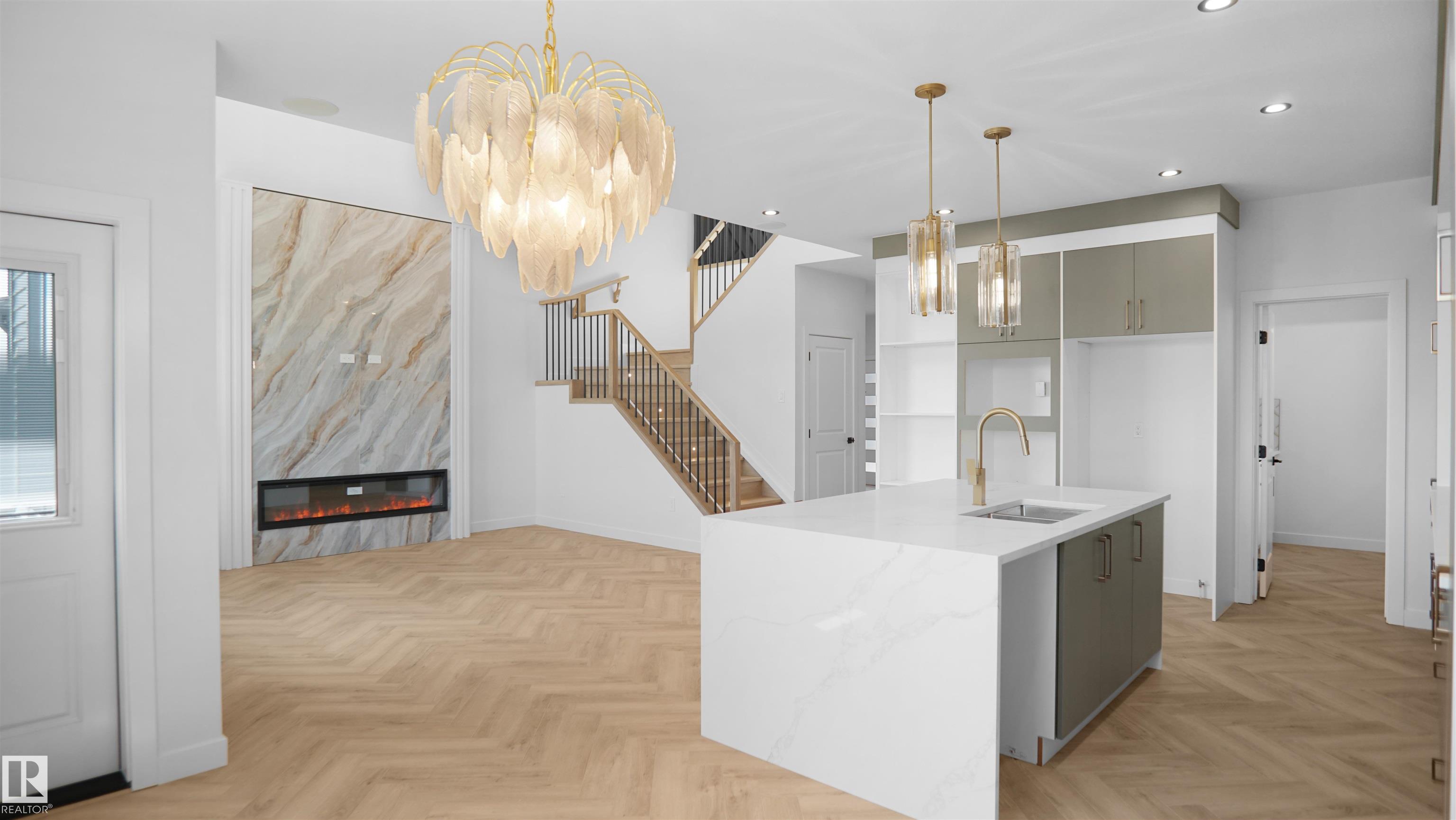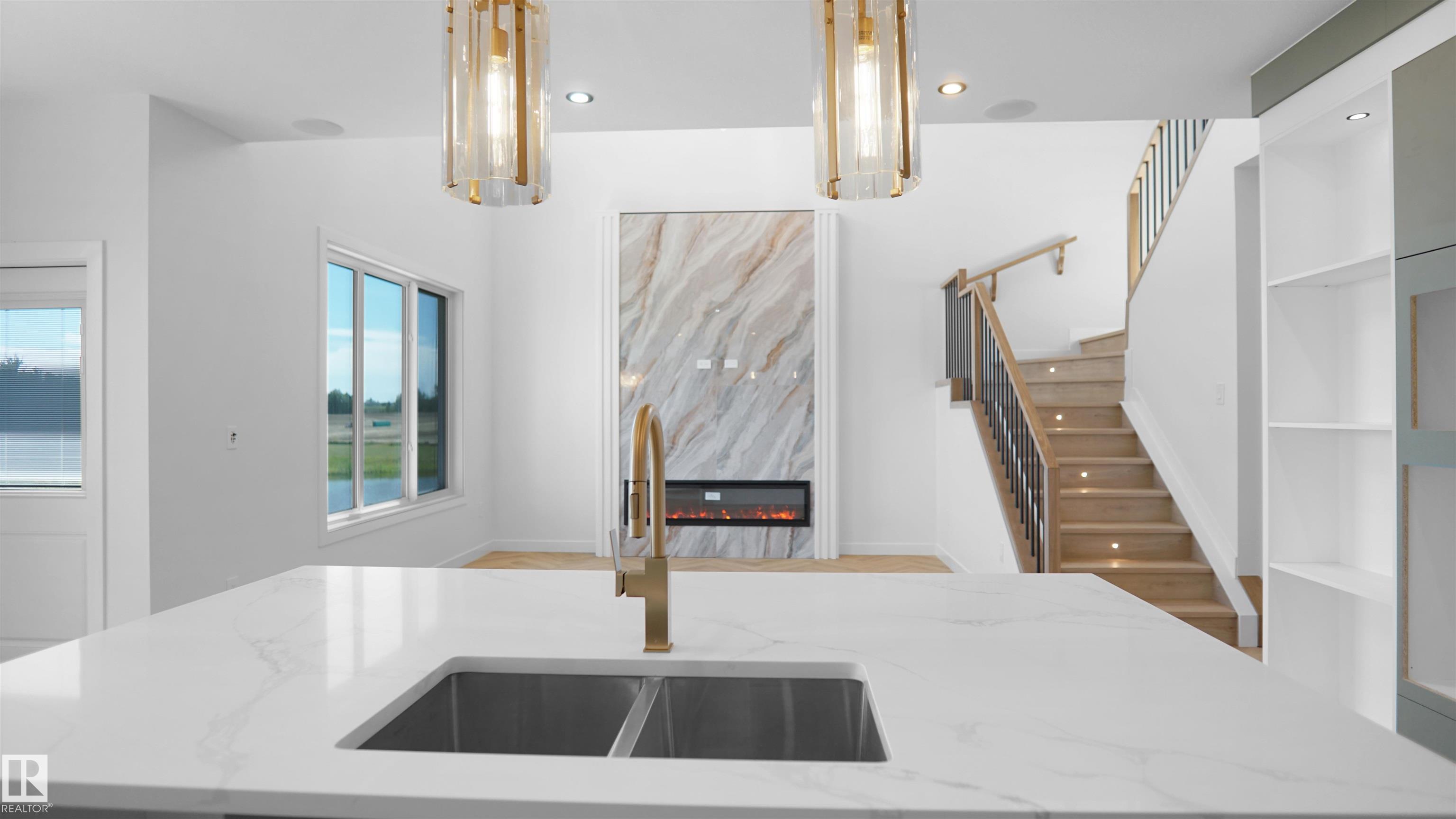 This backing TO GREEN SPACE & POND,open to above, WALK OUT home features 4 bedrooms, 3 baths , SPICE KITCHEN,a bonus room & study nook. The main floor boasts luxury vinyl plank flooring, a versatile bedroom/den,a Full Washroom, a spacious family room and cozy fireplace. The modern kitchen and a SPICE KITCHEN are designed for both cooking and entertaining, complete with high-end cabinetry, quartz countertops, a large island, and a pantry. A bright dining area with ample natural light is perfect for gatherings, while a convenient full bath completes this level. Upstairs, the primary suite offers a 5-piece ensuite and a spacious walk-in closet. Two additional bedrooms,a full bath,study table, a bonus room, and a laundry room provide plenty of space for the whole family. The unfinished WALK OUT basement comes with a separate entrance, offering endless possibilities for customization. Add. Features:Deck,Wireless Bluetooth Speakers,Gas Hookup for BBQ