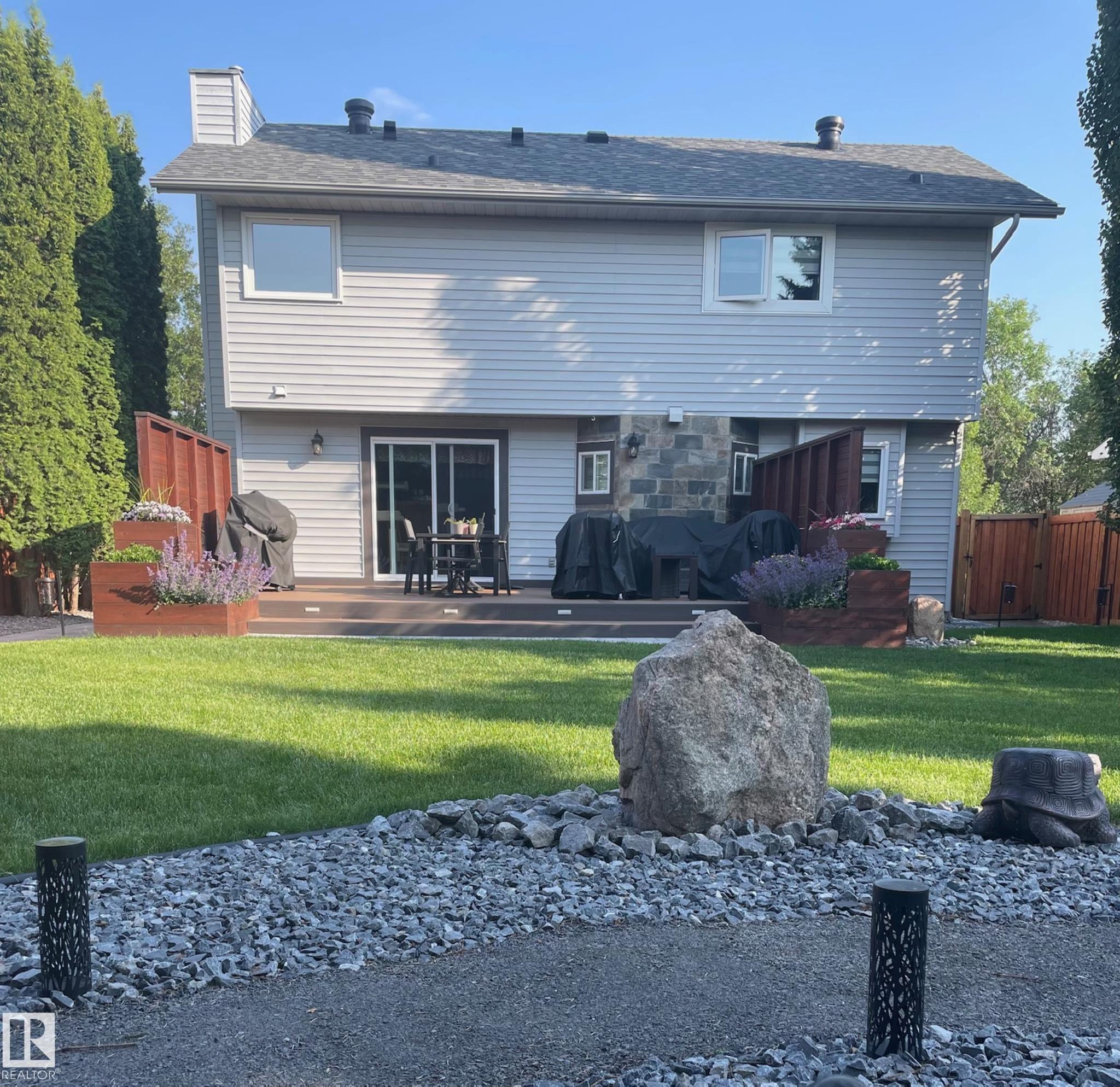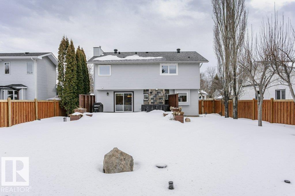 Welcome to this beautifully updated 2-story home in Deer Ridge, St. Albert. Offering 4 bedrooms, and a double attached garage, this stunning home has been meticulously maintained and thoughtfully upgraded throughout. Step inside to vaulted ceilings and an inviting, open concept layout that seamlessly connects the cozy living room, complete with a gas fireplace, to the kitchen and dining area. The kitchen is a true showstopper featuring a large island, stainless steel appliances and gorgeous concrete countertops. Upstairs you'll find the spacious primary retreat with amazing full ensuite, plus 3 additional bedrooms, as well as convenient laundry space. The basement provides extra living space and abundant storage. Professionally landscaped in 2024, maintenance free deck, new concrete driveway, new privacy fence, newer furnace and A/C (2020), shingles (2019), and professionally installed Christmas lights--move in and enjoy warm, turnkey living in one of St. Albert's most desirable communities!