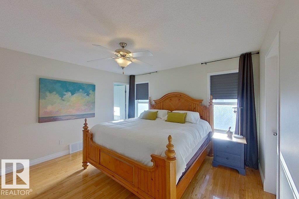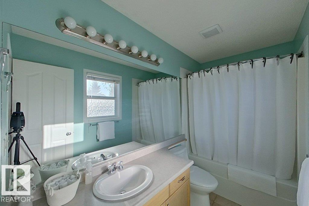 Wonderful Family Home located in a quiet cul-de-sac in Erin Ridge. Entrance leads to open living space. Large kitchen with center island, ample cupboards and corner pantry with wooden shelving. Bright and open living room with spacious windows streaming in natural light. Dining area with patio doors leading to outside deck area. Fully fenced and landscaped. Great Play area for the kids. Main floor laundry and powder room. Three bedrooms upstairs. Ma ster has walk in closet and full bathroom. HUGE BONUS ROOM. Basement is unfinished, but has rough in for future bathroom. Double attached garage. Hardwood Flooring on the main level. Priced well. Shingles and Gutters replaced in 2023. Air Conditioning. New garage door and opener. Upgraded and New Kitchen appliances.