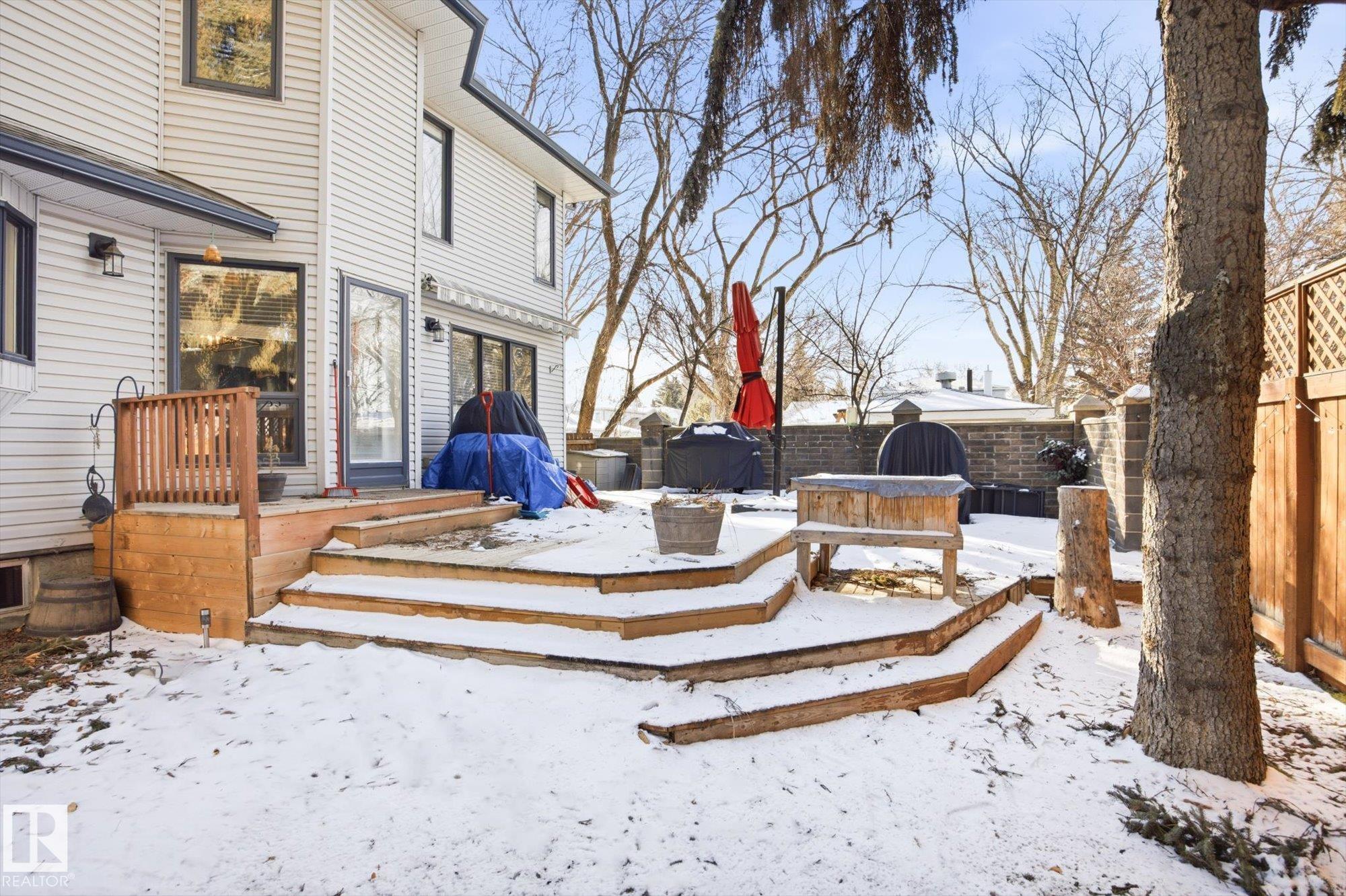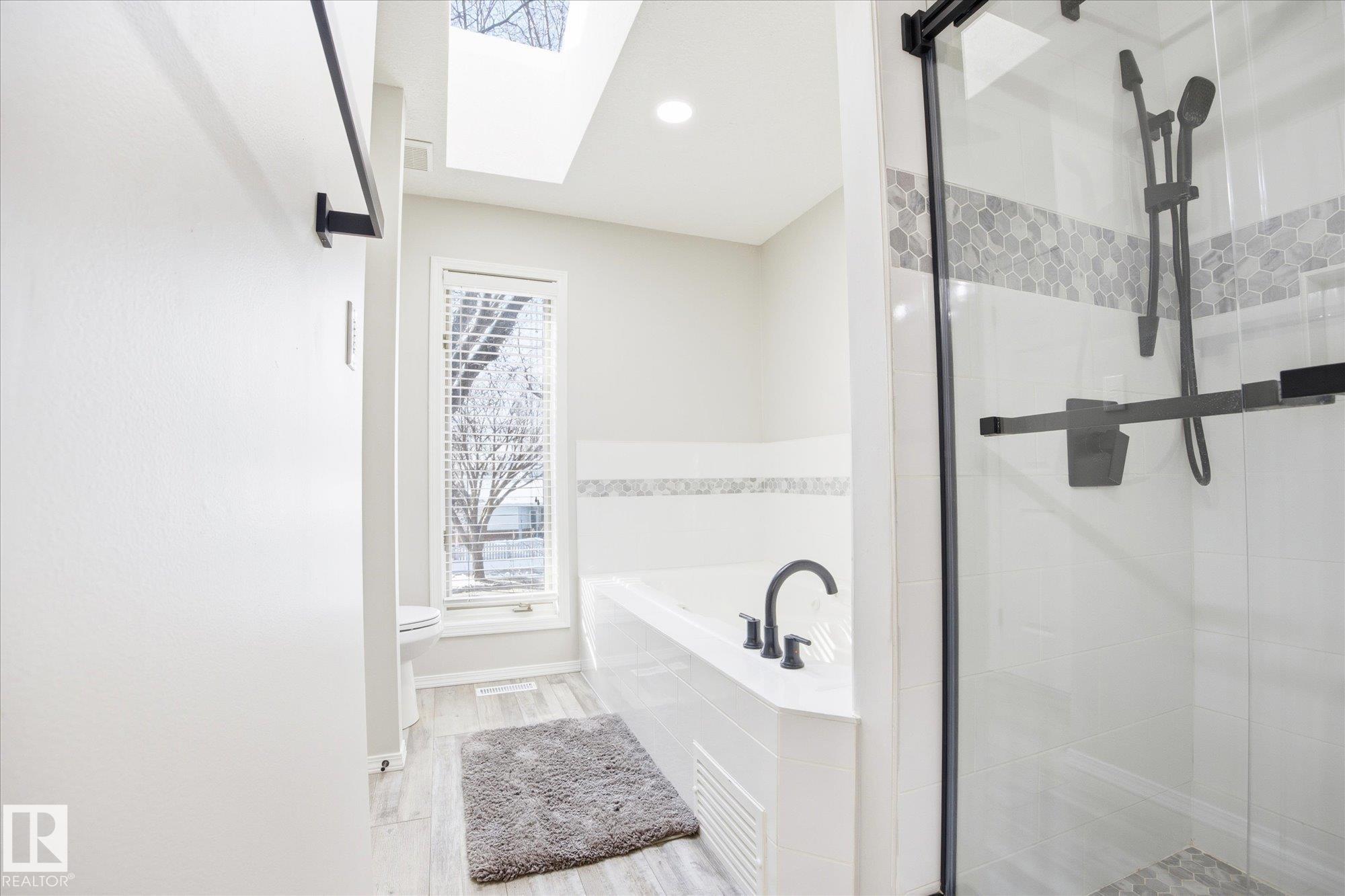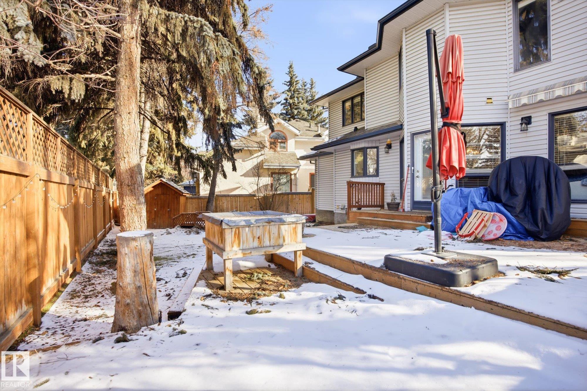 Welcome to this beautifully maintained home in the desirable community of Grandin in St. Albert! From the moment you step into the inviting front entrance, you're greeted by a warm and cozy family room featuring large windows and a charming fireplace. A separate formal dining room offers the ideal space to host family dinners and special occasions. The spacious kitchen is well-appointed with ample cabinetry and counter space, along with a breakfast nook for casual dining. The main floor also boasts a comfortable living room with a second fireplace and access to the large deck and beautifully landscaped backyard. Upstairs, you'll find 4 generous bedrooms and 2 bathrooms, including a primary suite with a stunning ensuite featuring a skylight. The basement offers a INFLOOR HEATING, two more rooms, flex space, a HOT TUB ROOM and an additional bathroom. An oversized double attached garage adds convenience. Close to schools, walking trails, and shopping!