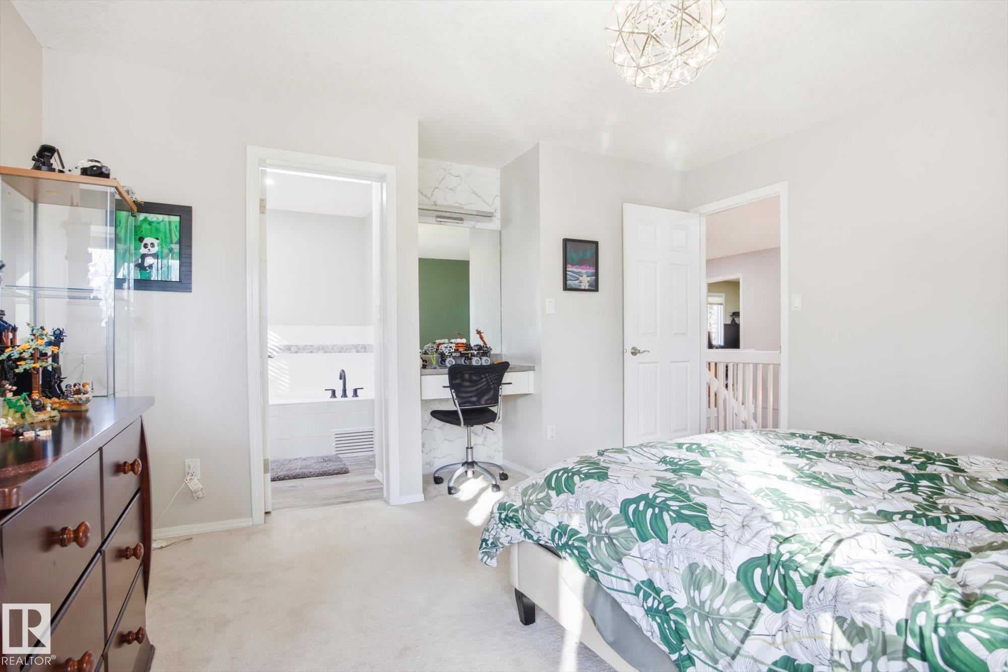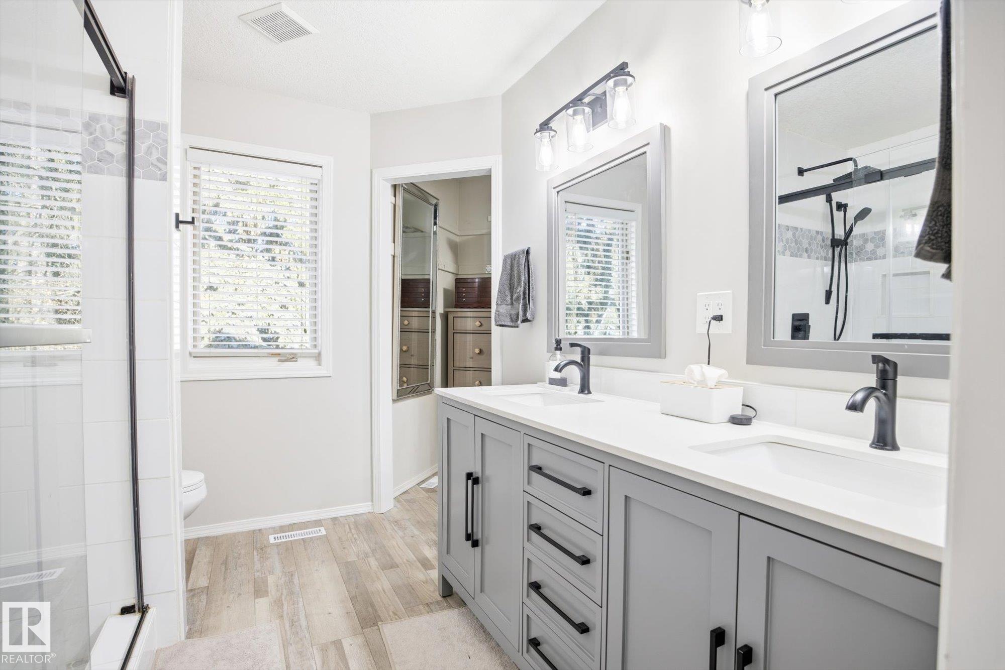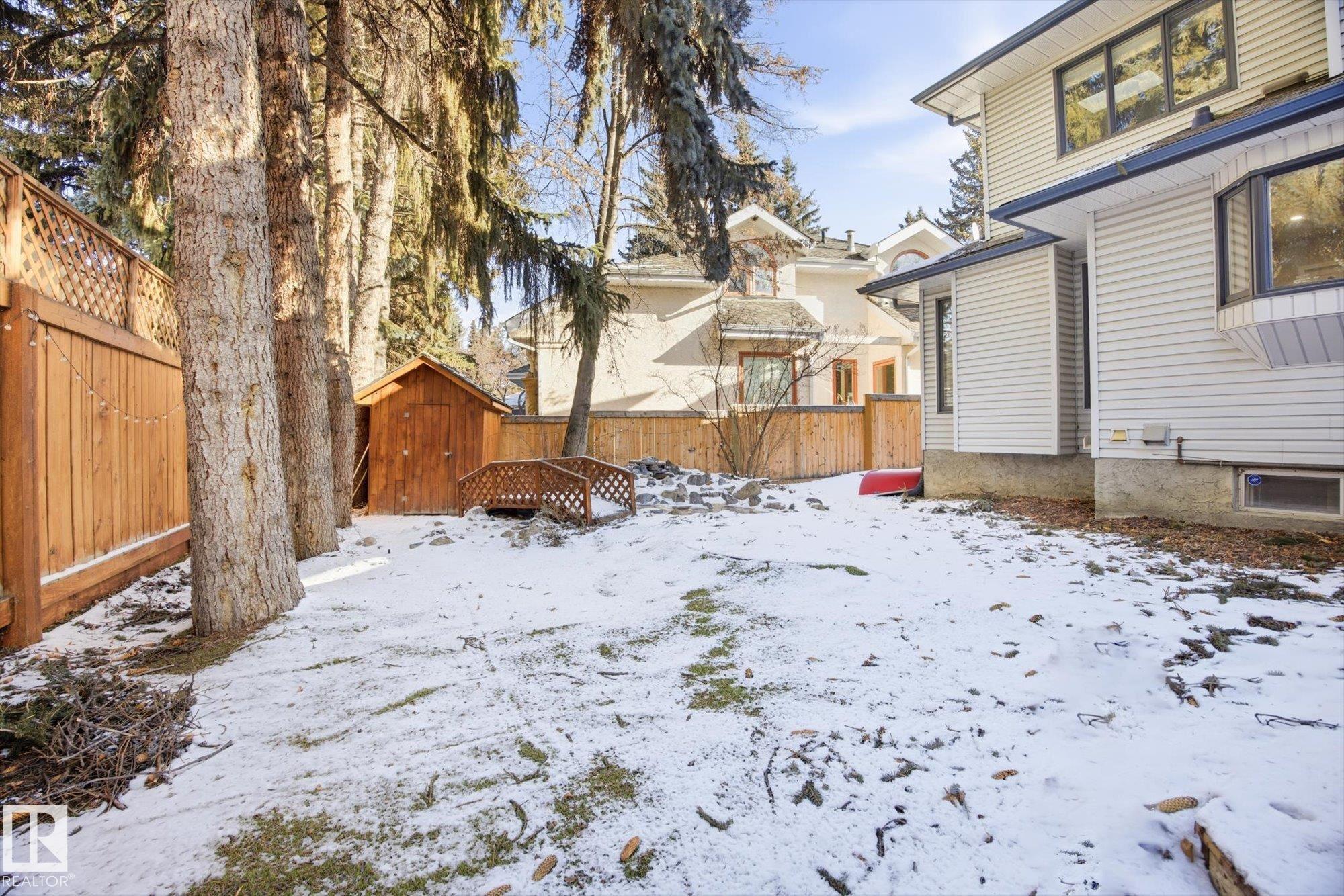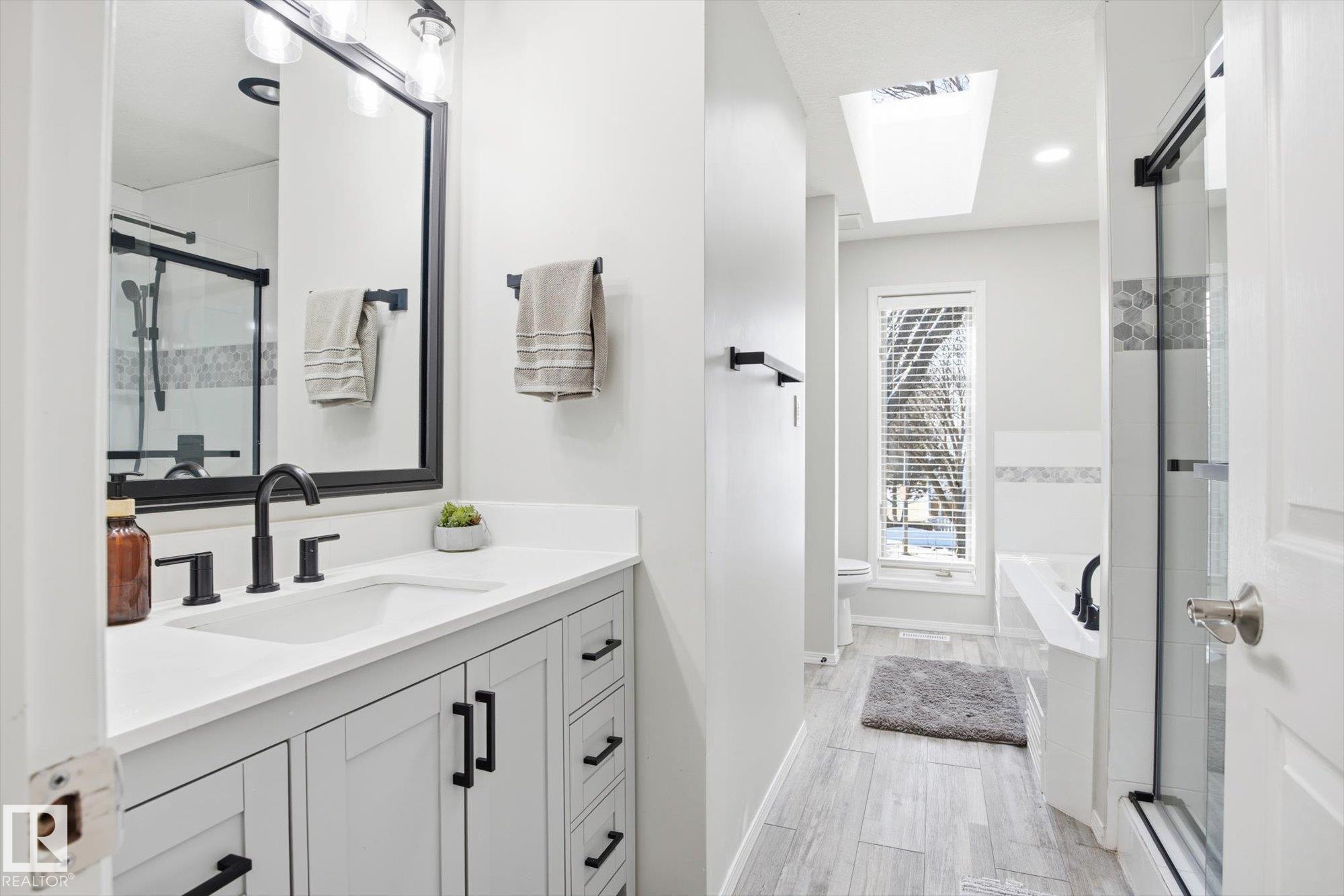 Welcome to this beautifully maintained home in the desirable community of Grandin in St. Albert! From the moment you step into the inviting front entrance, you're greeted by a warm and cozy family room featuring large windows and a charming fireplace. A separate formal dining room offers the ideal space to host family dinners and special occasions. The spacious kitchen is well-appointed with ample cabinetry and counter space, along with a breakfast nook for casual dining. The main floor also boasts a comfortable living room with a second fireplace and access to the large deck and beautifully landscaped backyard. Upstairs, you'll find 4 generous bedrooms and 2 bathrooms, including a primary suite with a stunning ensuite featuring a skylight. The basement offers a INFLOOR HEATING, two more rooms, flex space, a HOT TUB ROOM and an additional bathroom. An oversized double attached garage adds convenience. Close to schools, walking trails, and shopping!