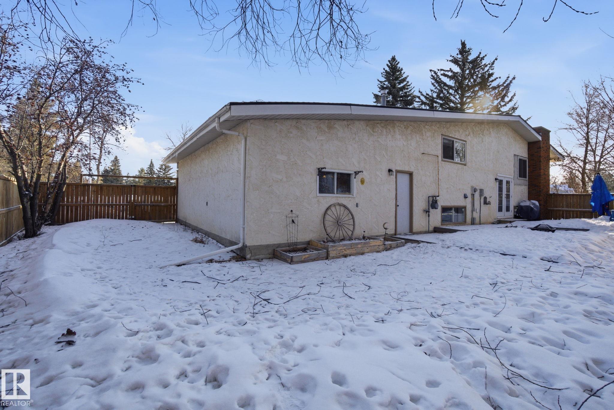 Welcome to the highly desirable community of Lacombe Park! This spacious and updated home boasts a prime location, directly across from a beautiful park and with direct access to St. Albert's extensive trail network. The interior is bathed in natural light, thanks to an abundance of windows throughout. The kitchen has been beautifully upgraded with granite countertops, a glass tile backsplash, stainless steel appliances, and a walk-in corner pantry. The adjacent dining room is generously sized, perfect for hosting large gatherings. On the main floor you'll find three spacious bedrooms, including a renovated five-piece main bathroom and a large master suite with its own two-piece ensuite. The lower level is fully finished and offers a huge recreation room, an additional full bathroom, a large fourth bedroom, and a spacious mudroom with convenient access to the garage. Completing this exceptional property is a rare attached, oversized, heated double garage and a paved exterior pad for RV or Boat storage
