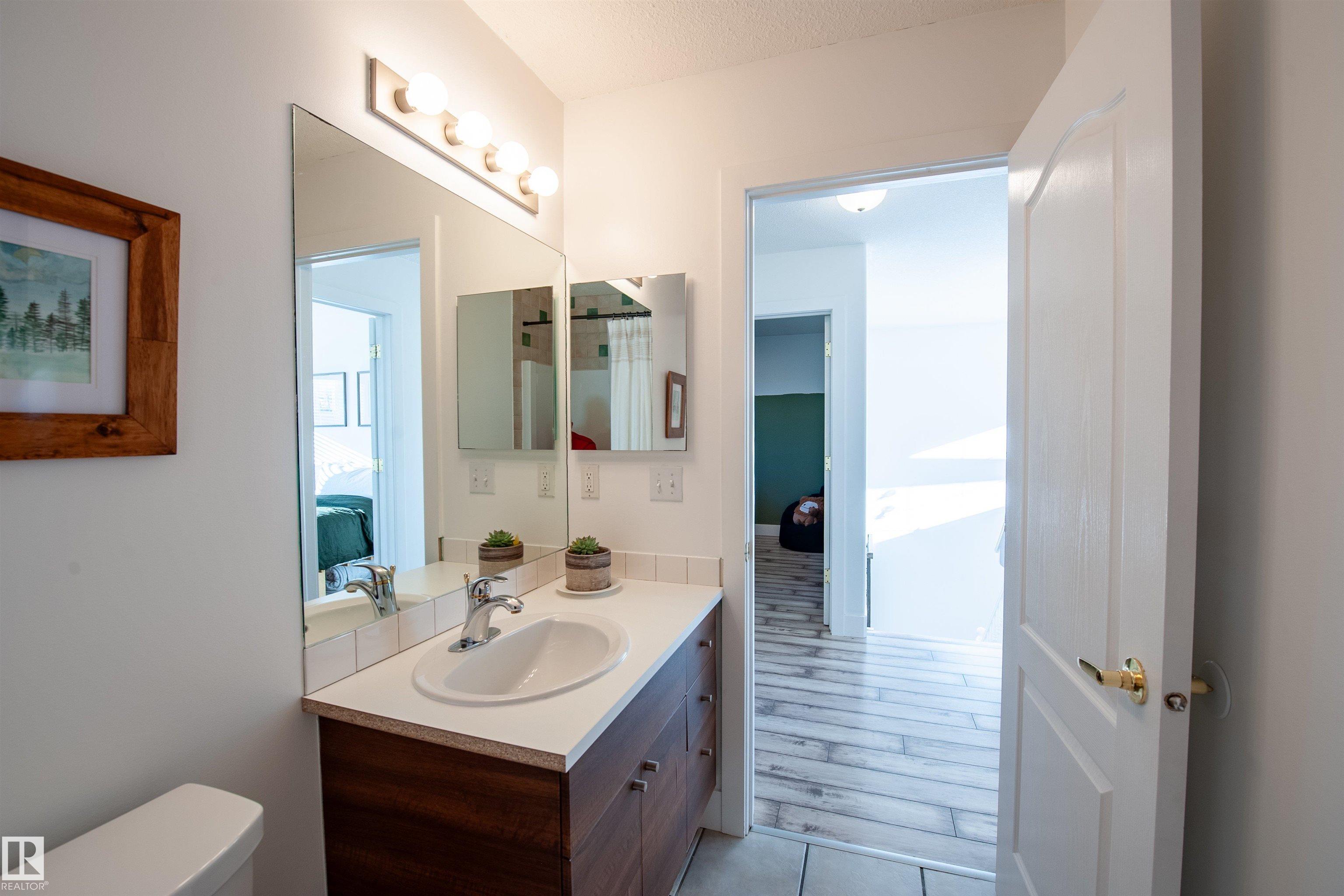 Live the Good Life in Clarkdale Meadows! Nestled in one of Sherwood Park's most family-friendly neighbourhoods, this beautiful & fully updated home sits on a nice-sized lot, just 5-min walk to Davidson Creek School, close to parks, shopping, restaurants, and hospital. Step inside to a bright entrance with hardwood stairs, high-end laminate flooring, and a stylish 2-piece bath with a large linen closet. The main floor features an inviting living room with a cozy gas fireplace and a fully renovated kitchen showcasing a quartz waterfall counters, top-of-the-line appliances, a walk-in pantry, and tons of storage. Upstairs offers three spacious bedrooms, including a king-sized primary suite with a spa-like ensuite featuring a soaker tub, separate shower, and large walk-in closet with drawers and organizers. The finished basement adds a full bathroom, a family room & additional storage. Enjoy central A/C, a newer hot water tank & shingles a double-garage & a beautiful yard. Visit REALTOR© website for more info.