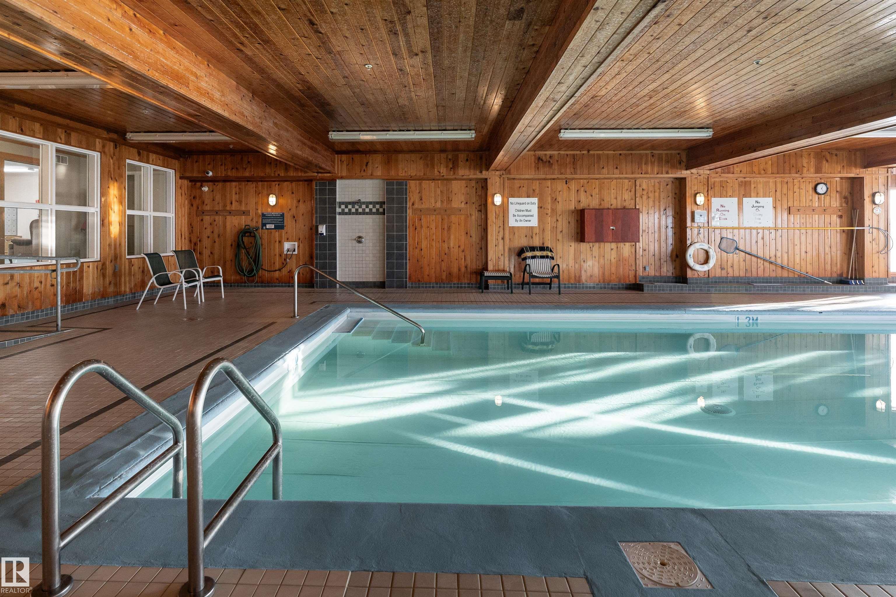 Enjoy a carefree lifestyle at Sherwood Park's premiere 55+ adult community - the Sierras of Sherwood Park! This large, immaculate and highly sought after bright top floor/corner unit offers 1169 sq ft of living space including 2 bedrooms, 2 bathrooms, insuite laundry, granite counters and laminate flooring throughout, kitchen pantry, tile backsplashes, plenty of storage, fireplace, central a/c, NW facing balcony with gas bbq hook up and views for miles! One underground parking stall and storage room included. Condo fees cover power/water/heat and so much more! The amenities of this building are what sell this place - indoor pool & hot tub, exercise room, library, rentable social rooms, sewing/hobby room, billiards/shuffle board/darts, patio & BBQ area, car wash, guest suites. This building has a healthy reserve fund and is well managed which is evidenced by the condition of all common spaces. The Sierras are central to Sherwood Park shopping, public transportation, dining and walking paths. Welcome home!!