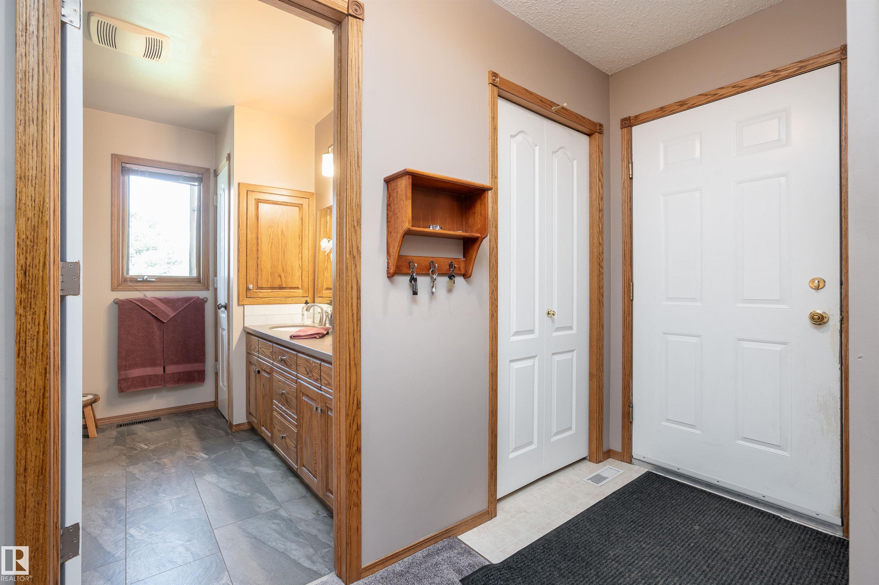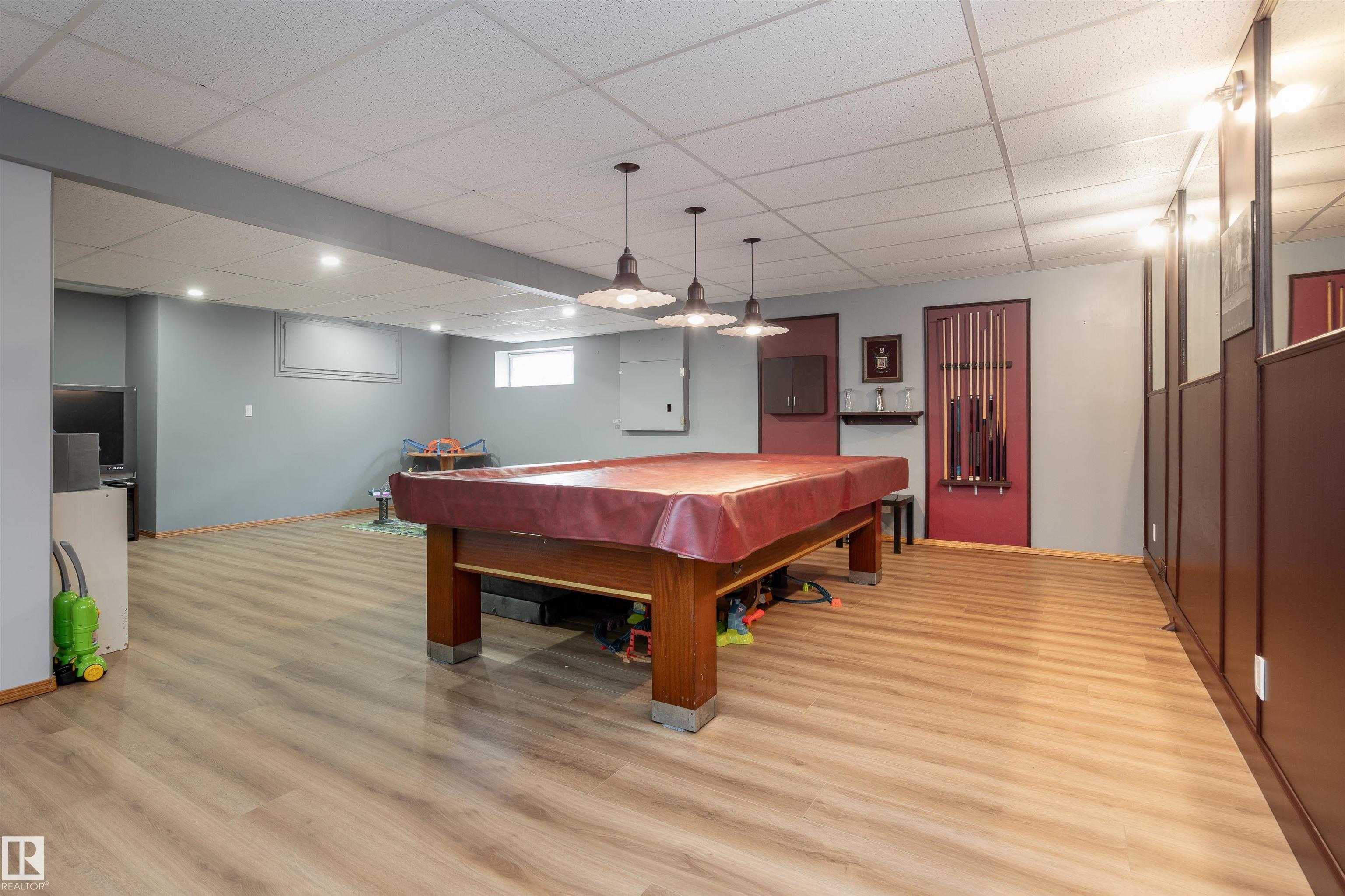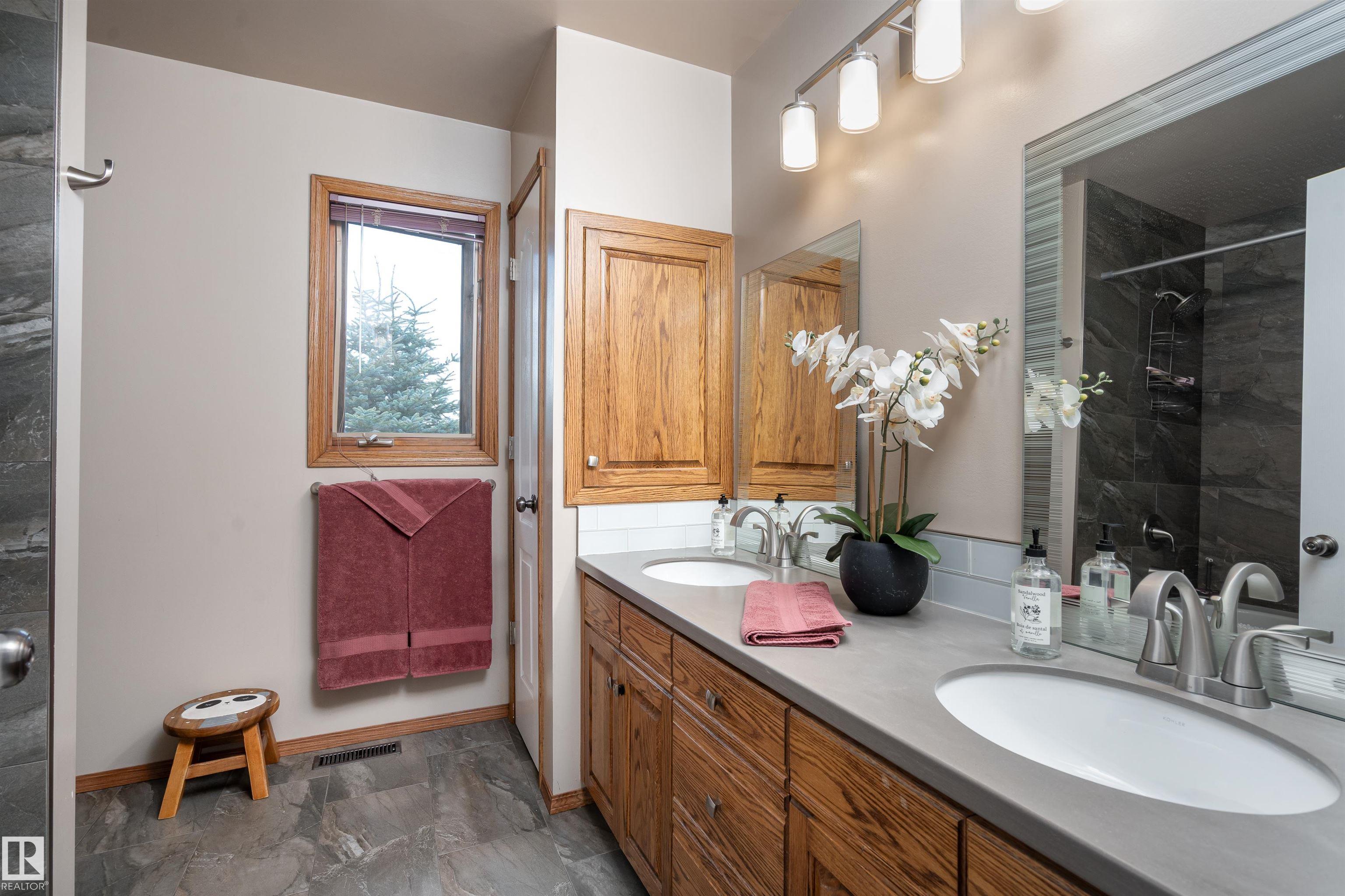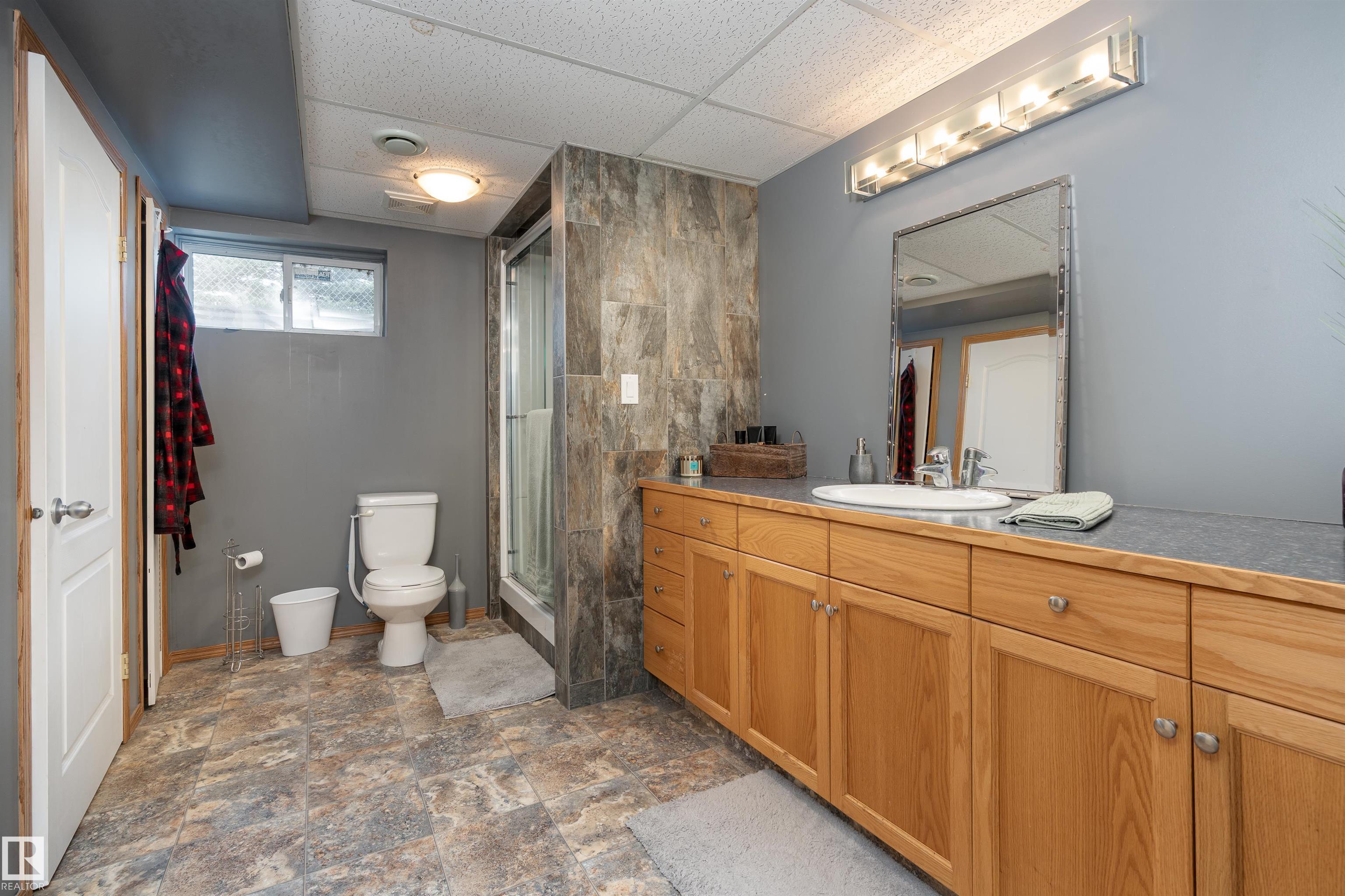 Welcome to Glenview Acres in Sturgeon County, just 5 minutes from Edmonton, where your private 15-acre retreat awaits. This 2,189 sq. ft. bungalow is thoughtfully designed for both relaxation and entertaining. The inviting country-style kitchen is built for gatherings, opening onto a spacious deck and sparkling heated pool with automatic cover. A warm, sunlit living room with a fireplace offers the perfect place to unwind. The primary suite is a true escape with a walk-in closet and 4-piece ensuite, complemented by two additional bedrooms, a 5-piece bath, and convenient main floor laundry. The fully finished basement features brand-new flooring, a sprawling rec room with fireplace--ideal for a games area, bar, or fitness space--along with a guest bedroom, 3-piece bath, and generous storage. A heated double attached garage with a half bath adds everyday comfort. Spend your summers poolside, hosting friends on the expansive deck, or simply savouring the tranquility of your secluded, endless yard.