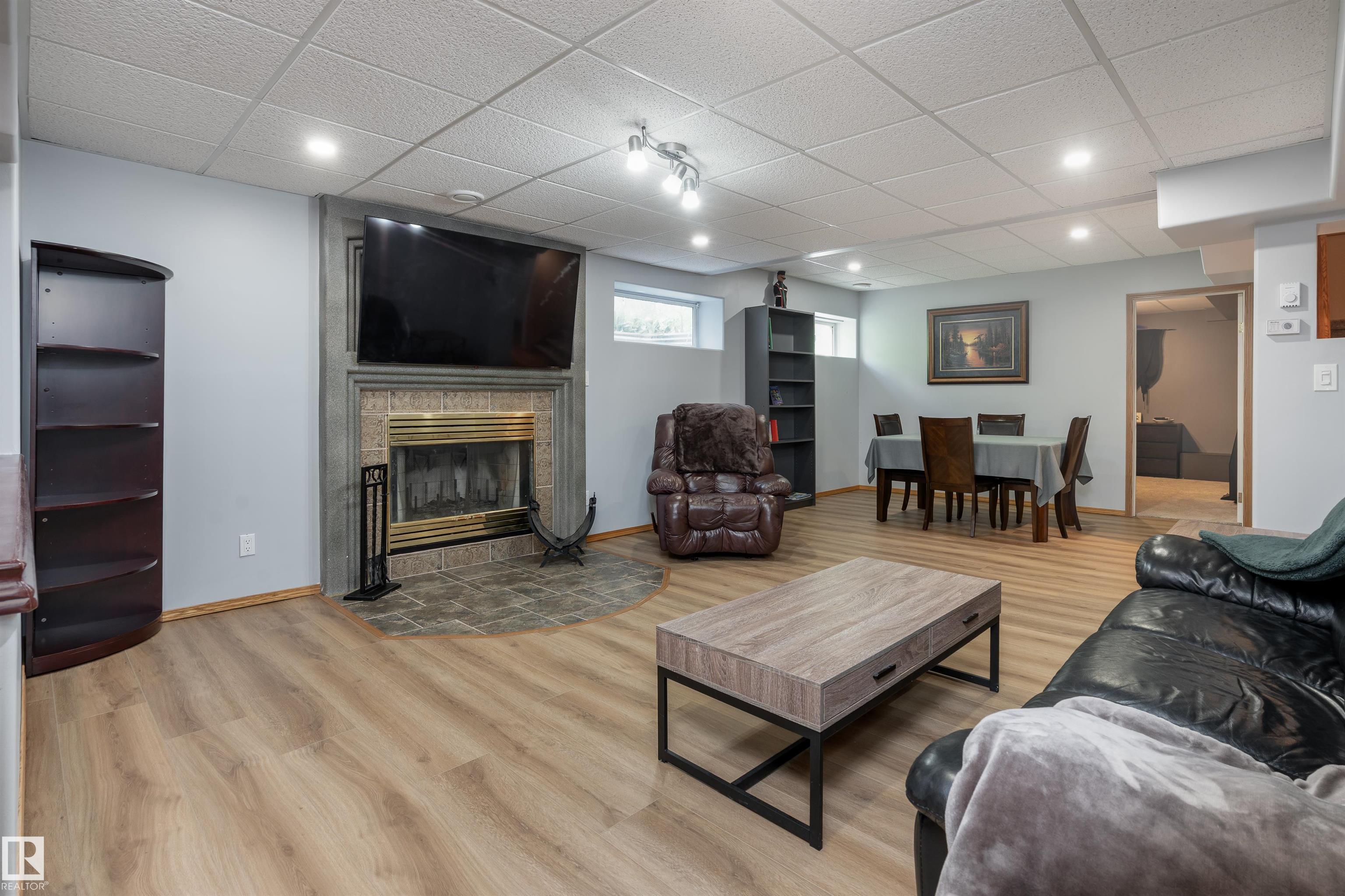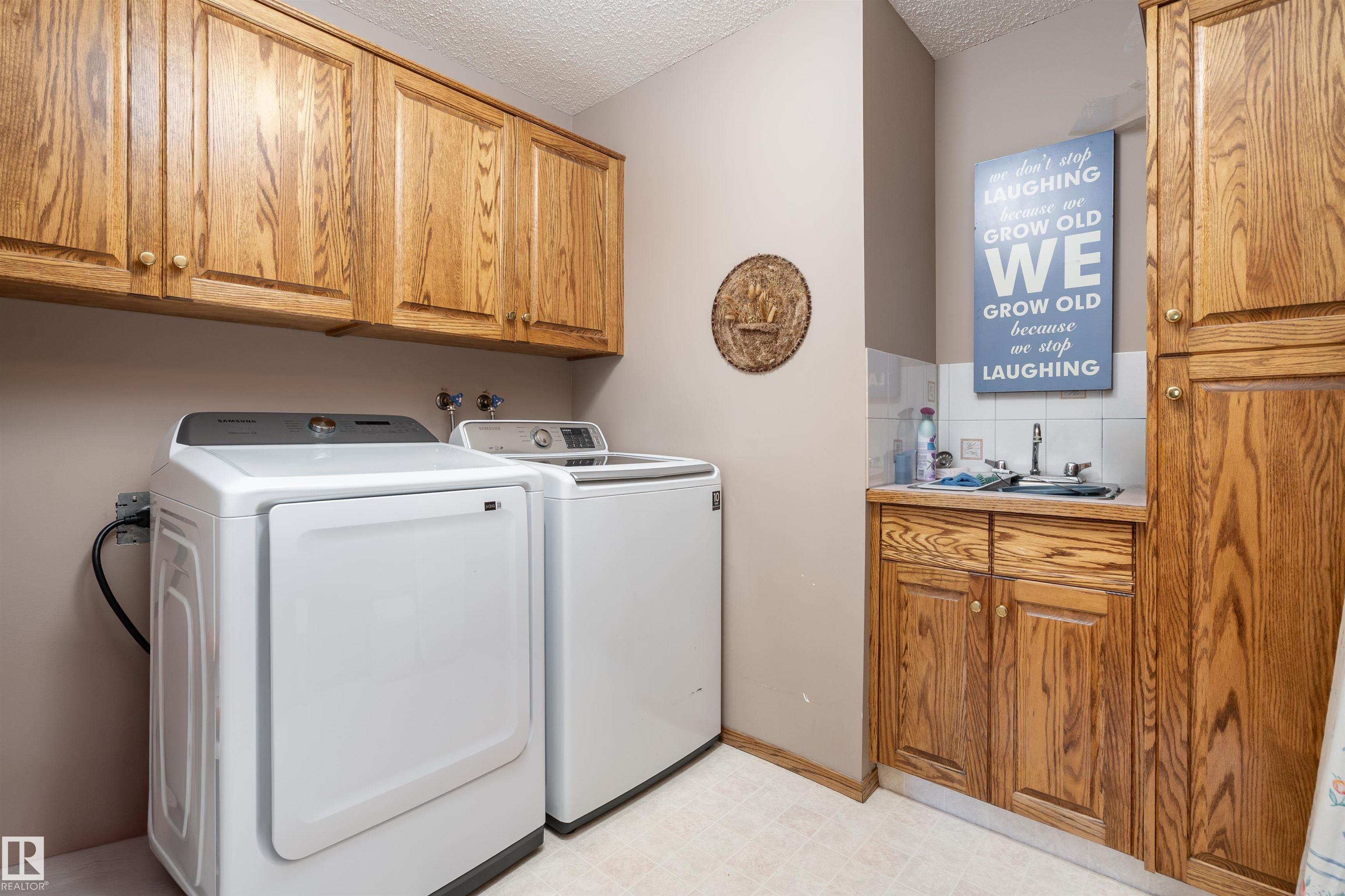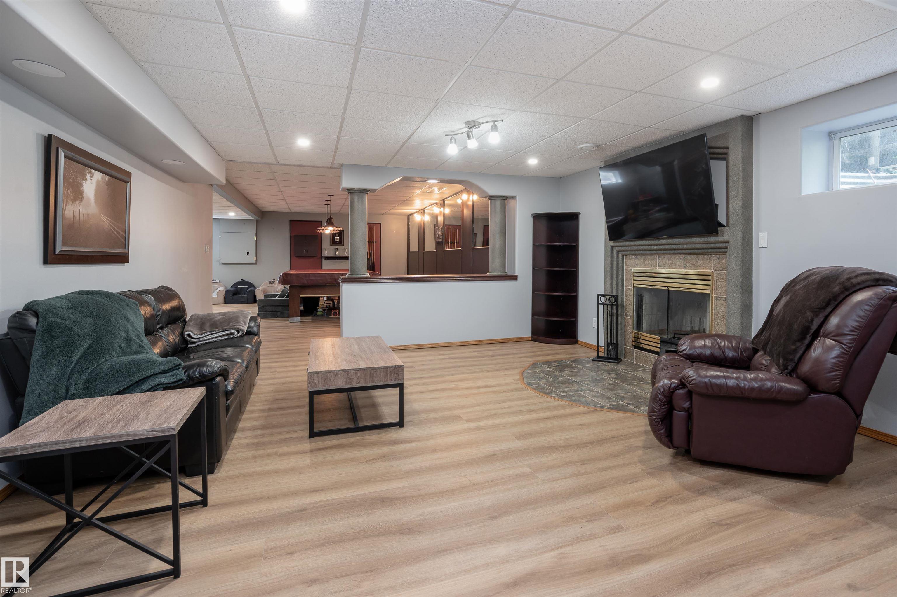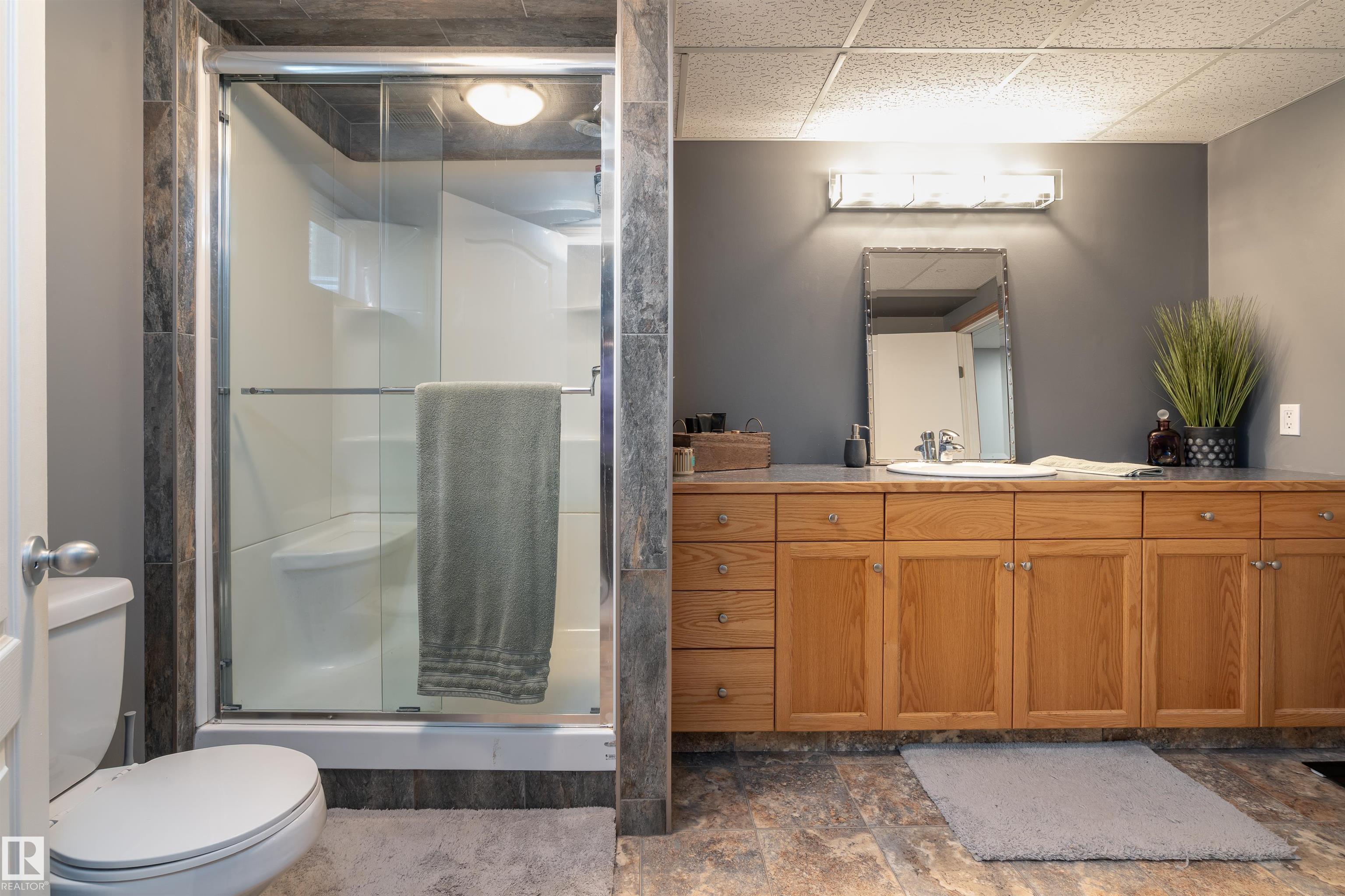 Welcome to Glenview Acres in Sturgeon County, just 5 minutes from Edmonton, where your private 15-acre retreat awaits. This 2,189 sq. ft. bungalow is thoughtfully designed for both relaxation and entertaining. The inviting country-style kitchen is built for gatherings, opening onto a spacious deck and sparkling heated pool with automatic cover. A warm, sunlit living room with a fireplace offers the perfect place to unwind. The primary suite is a true escape with a walk-in closet and 4-piece ensuite, complemented by two additional bedrooms, a 5-piece bath, and convenient main floor laundry. The fully finished basement features brand-new flooring, a sprawling rec room with fireplace--ideal for a games area, bar, or fitness space--along with a guest bedroom, 3-piece bath, and generous storage. A heated double attached garage with a half bath adds everyday comfort. Spend your summers poolside, hosting friends on the expansive deck, or simply savouring the tranquility of your secluded, endless yard.